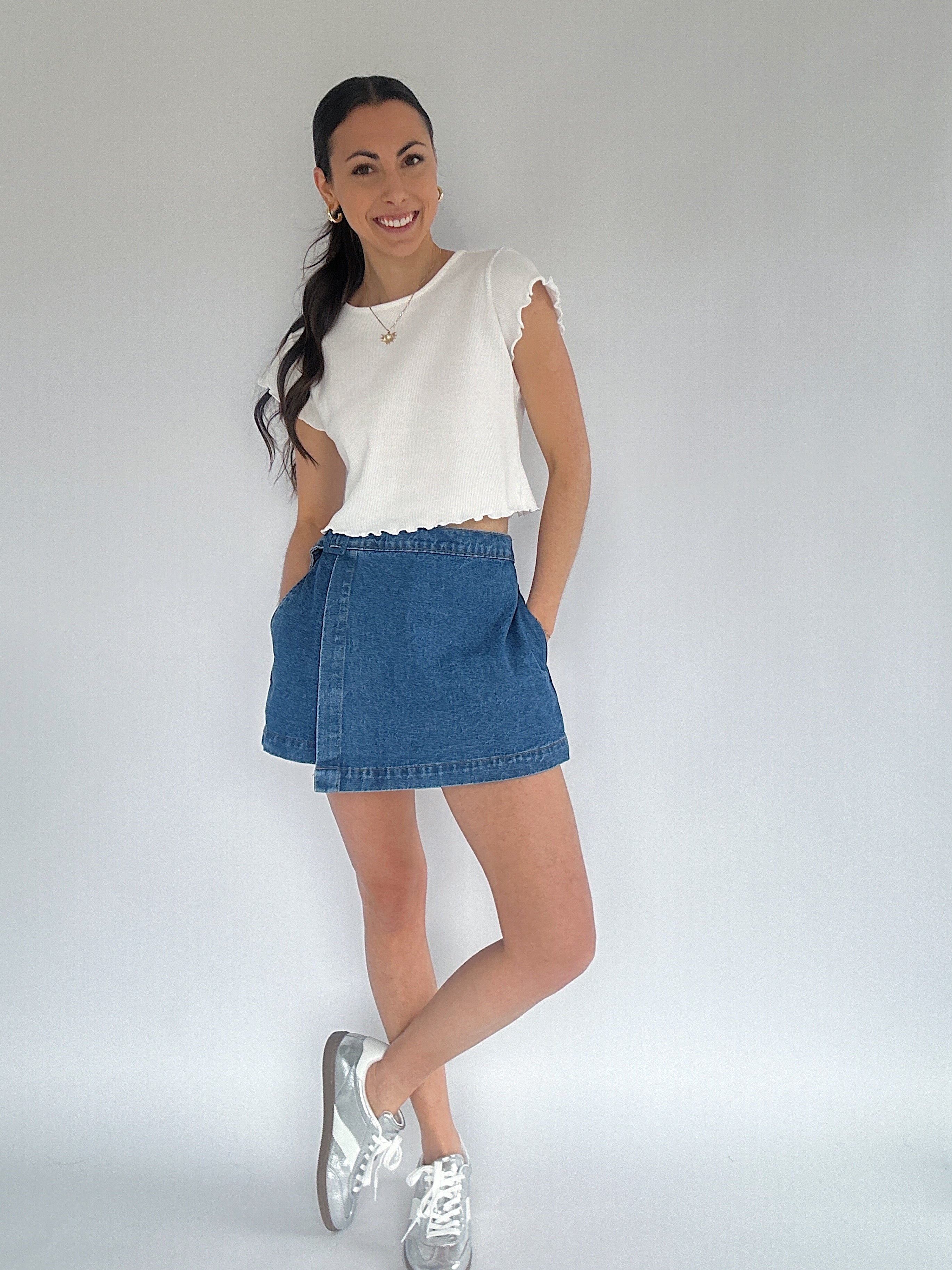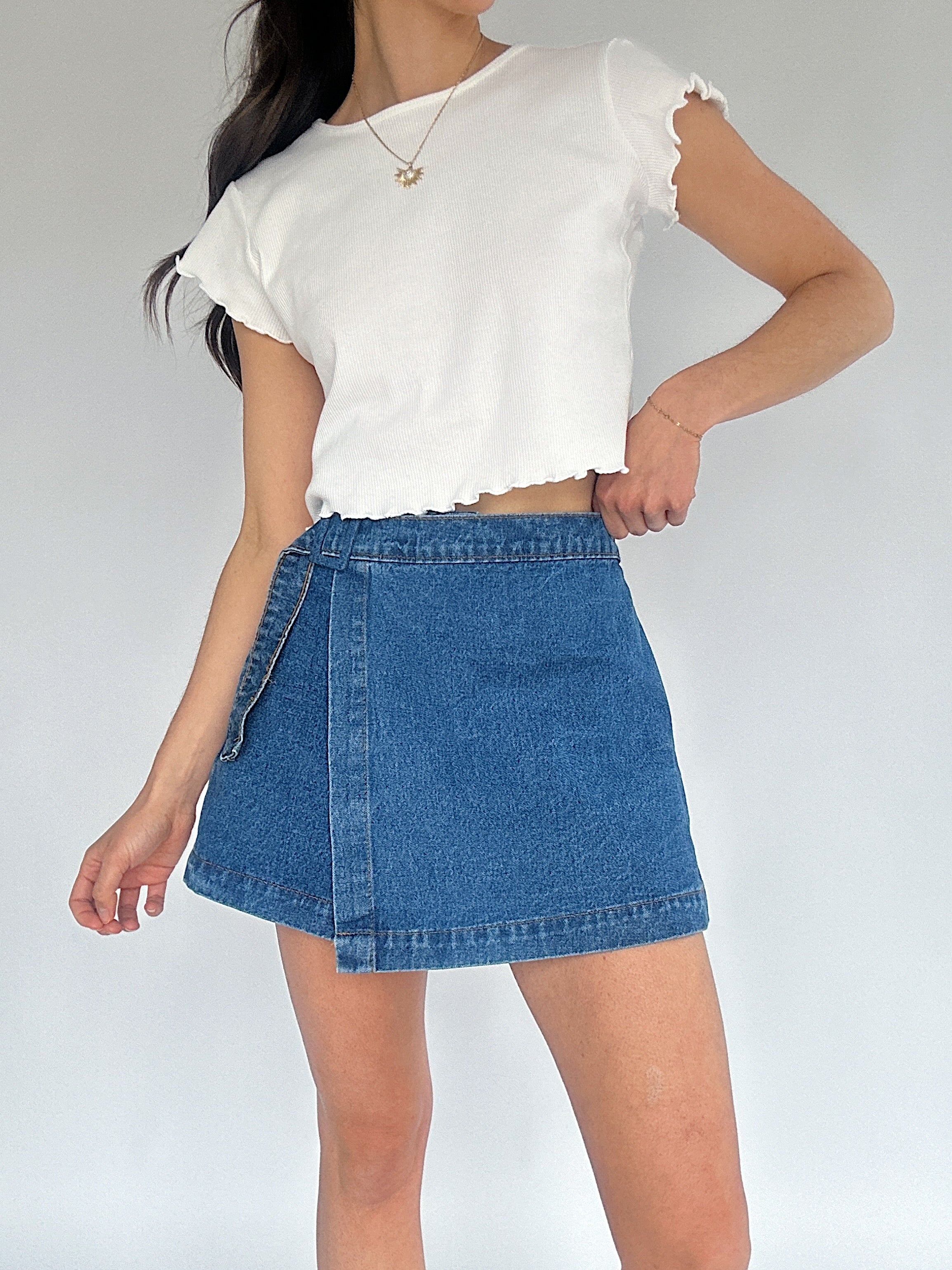 Whirlwind Denim Skort - Medium Wash