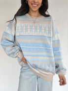 Bring the cozy ski-lodge vibes to your winter wardrobe with the Aspen Sweater. This soft blue knit, complete with a classic crew neckline, feels like the perfect layer for chilly days, snowy walks, or relaxed afternoons by the fire.