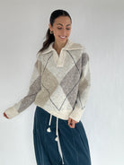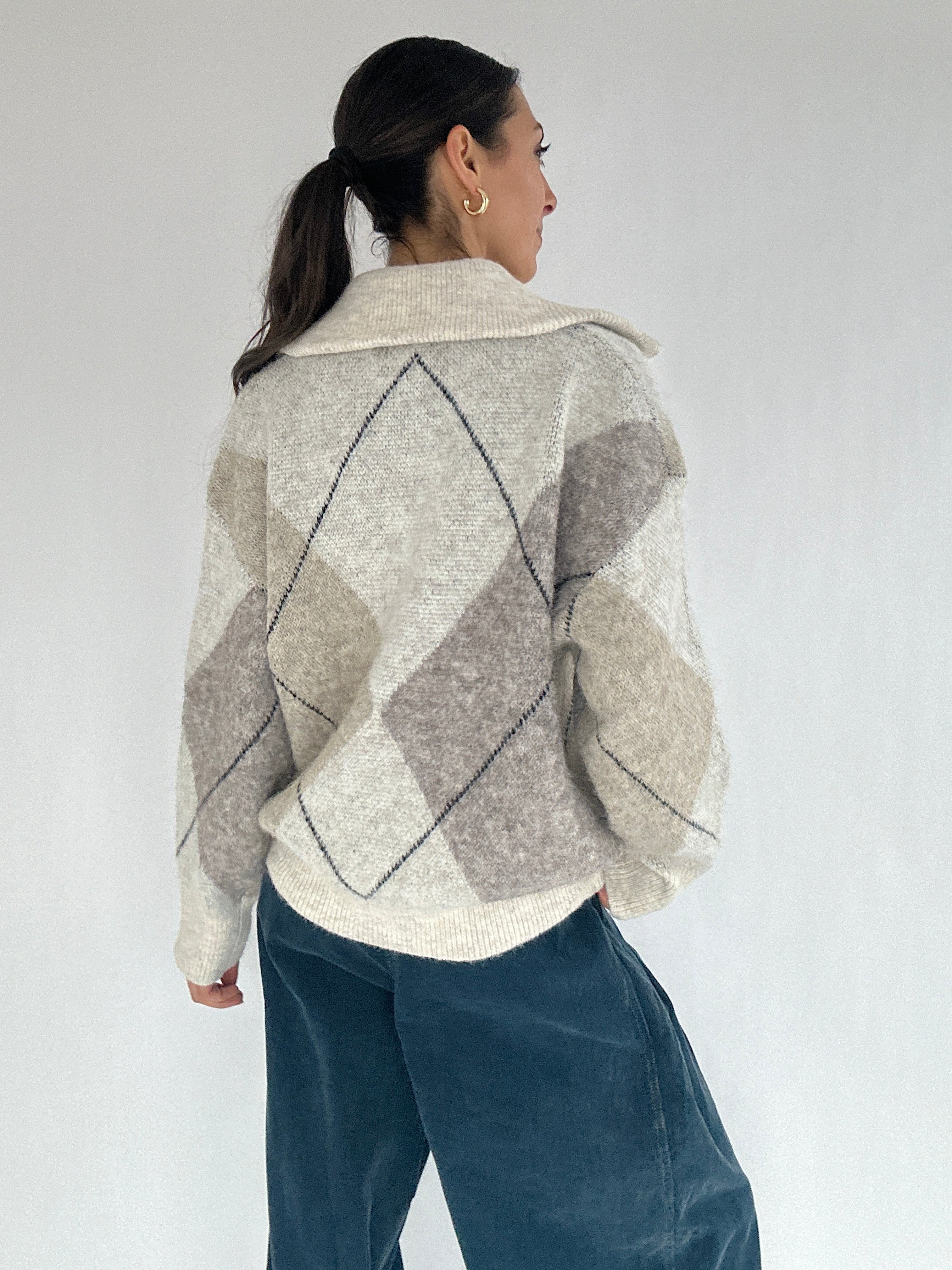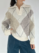 ✶ Oatmeal-colored argyle plaid knit