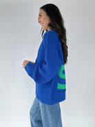 Hit the slopes in style (or just bring the ski vibes to your cozy days at home) with the SKI Knit Cardigan. The bold cobalt blue knit pops with bright green “SKI” lettering on the back, adding a fun, playful touch to your winter wardrobe. Soft, warm, and relaxed, it’s perfect for layering over tees or thermals on chilly days.