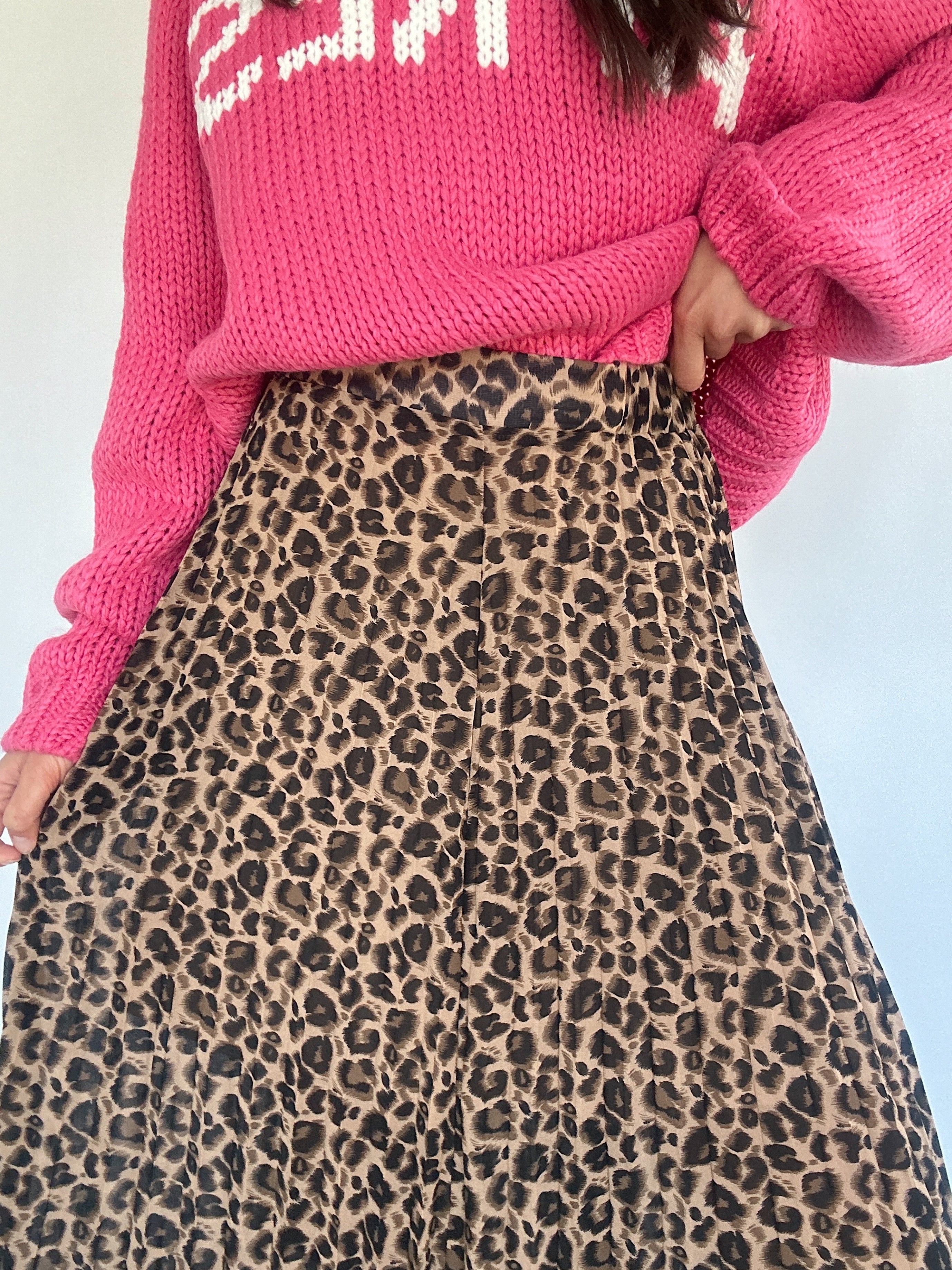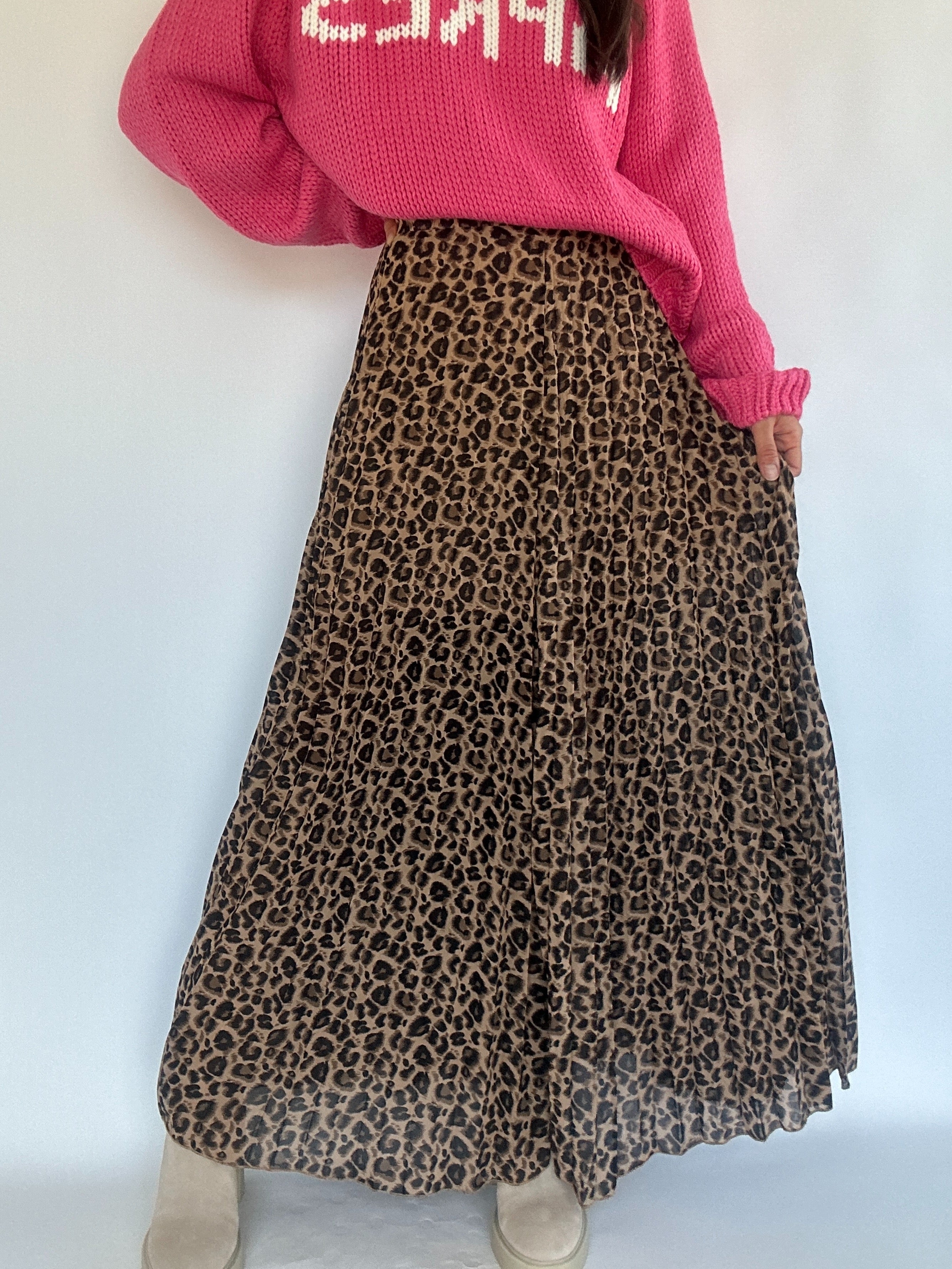 This leopard print maxi dress is an elevated neutral that is going to be a classic go-to for casual or dressier outfits! It has an elastic waistband and pleated flowy bottom. Pair with graphic tees or sweaters, sneakers or heels!