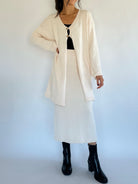 This cream knit midi skirt is a closet staple to pair with tees, sweaters or the matching Jamie Knit Cardigan for a perfect set! It has an elastic waistband and stretchy feel.