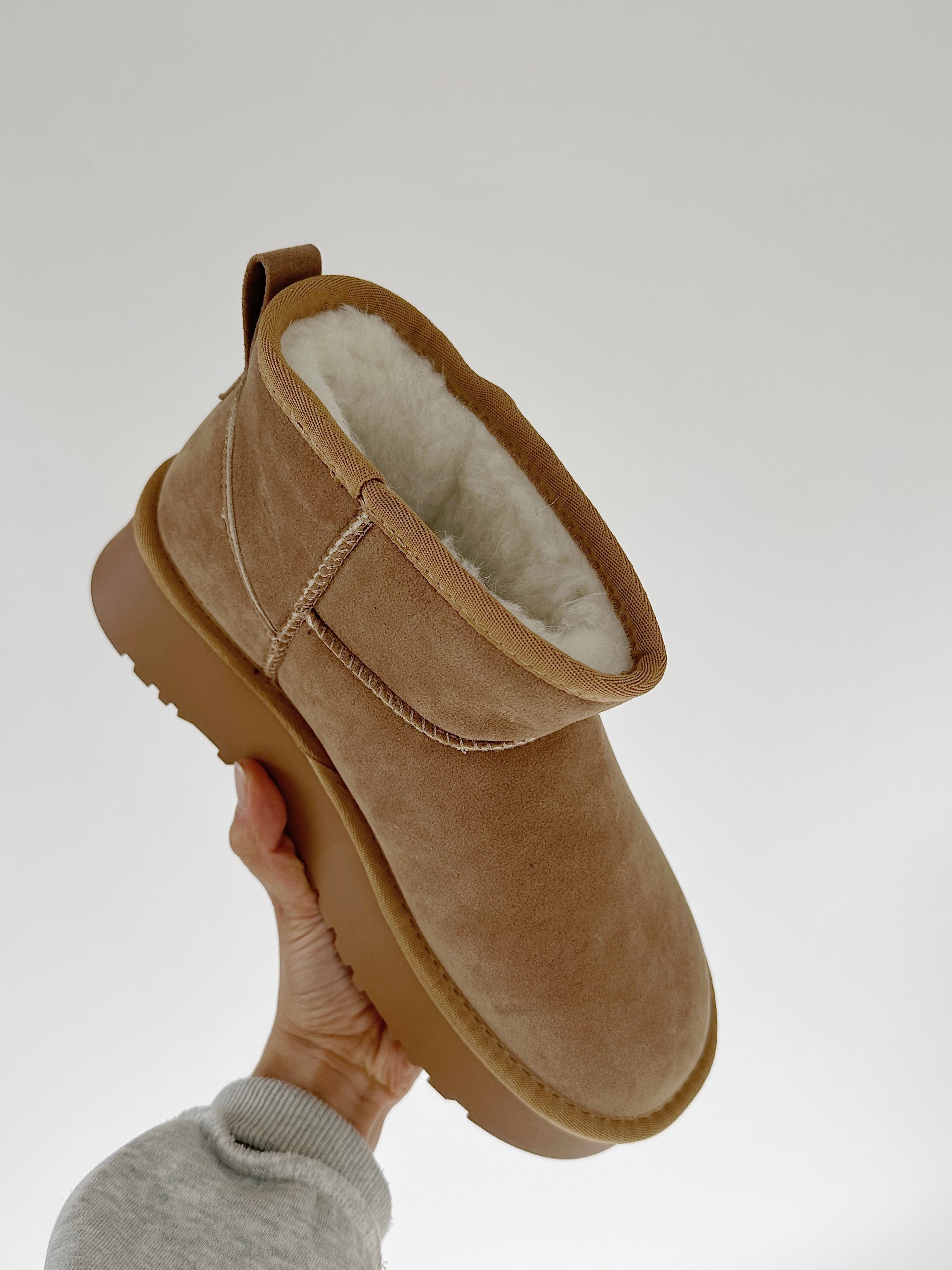 THE bootie you've been looking for this season! The fur-lined interior will keep your feet cozy and snug during the colder seasons. They have a faux rough suede leather exterior, pull-on style and platform lugg bottom.