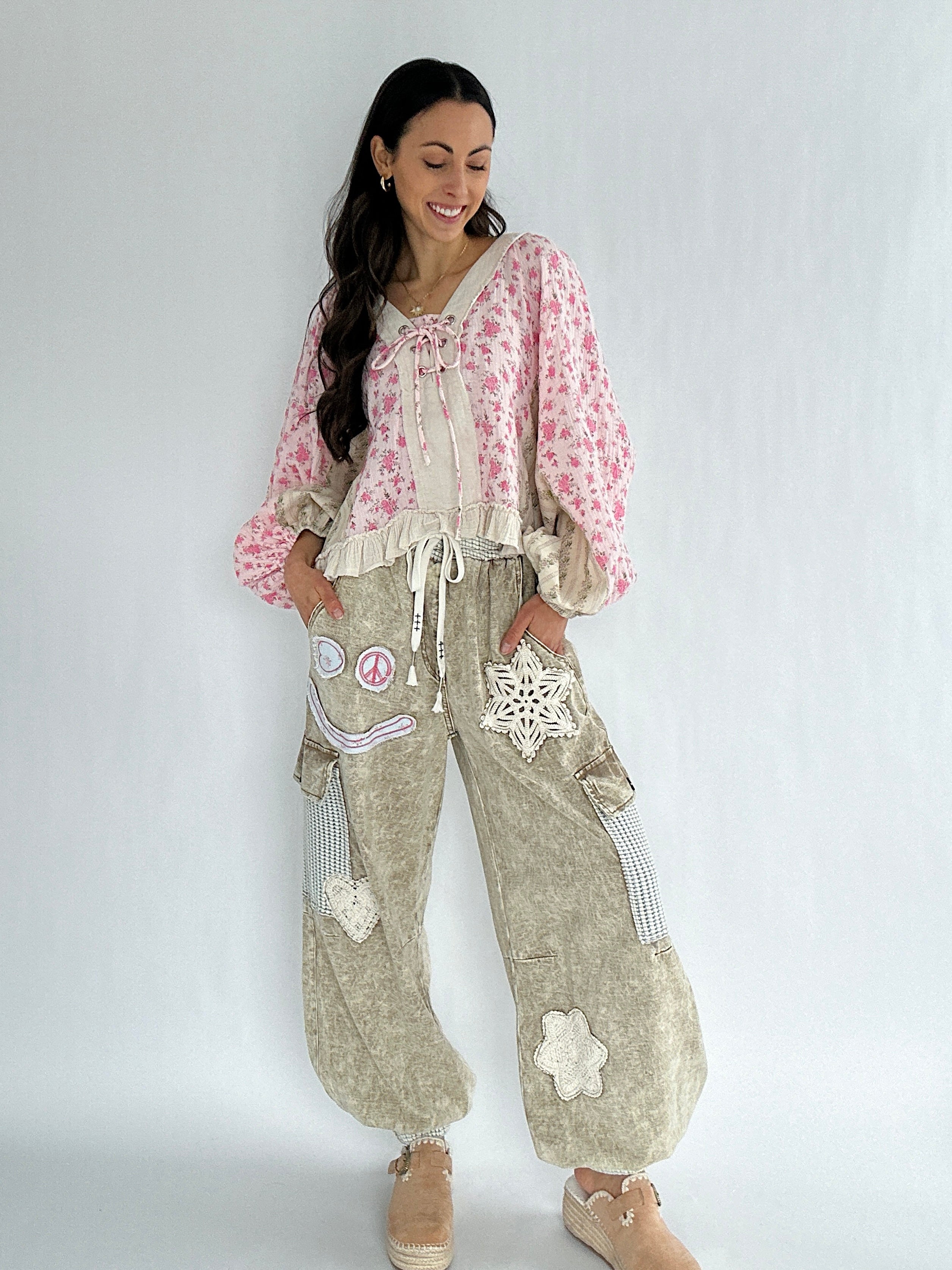 The Happy Place Jogger Pants bring a creative, laid-back vibe to your everyday style. Made from soft French terry cotton, these wide-leg joggers feature sweet crochet patch details that make each pair feel special! The relaxed fit and drawstring waistband keep them comfy, while the utility pockets and smiley face patch on the back add a fun, unexpected twist for a happy outfit. Easily pair with sweaters and boots or sweatshirts and sneakers - you'll definitely keep reaching for these!