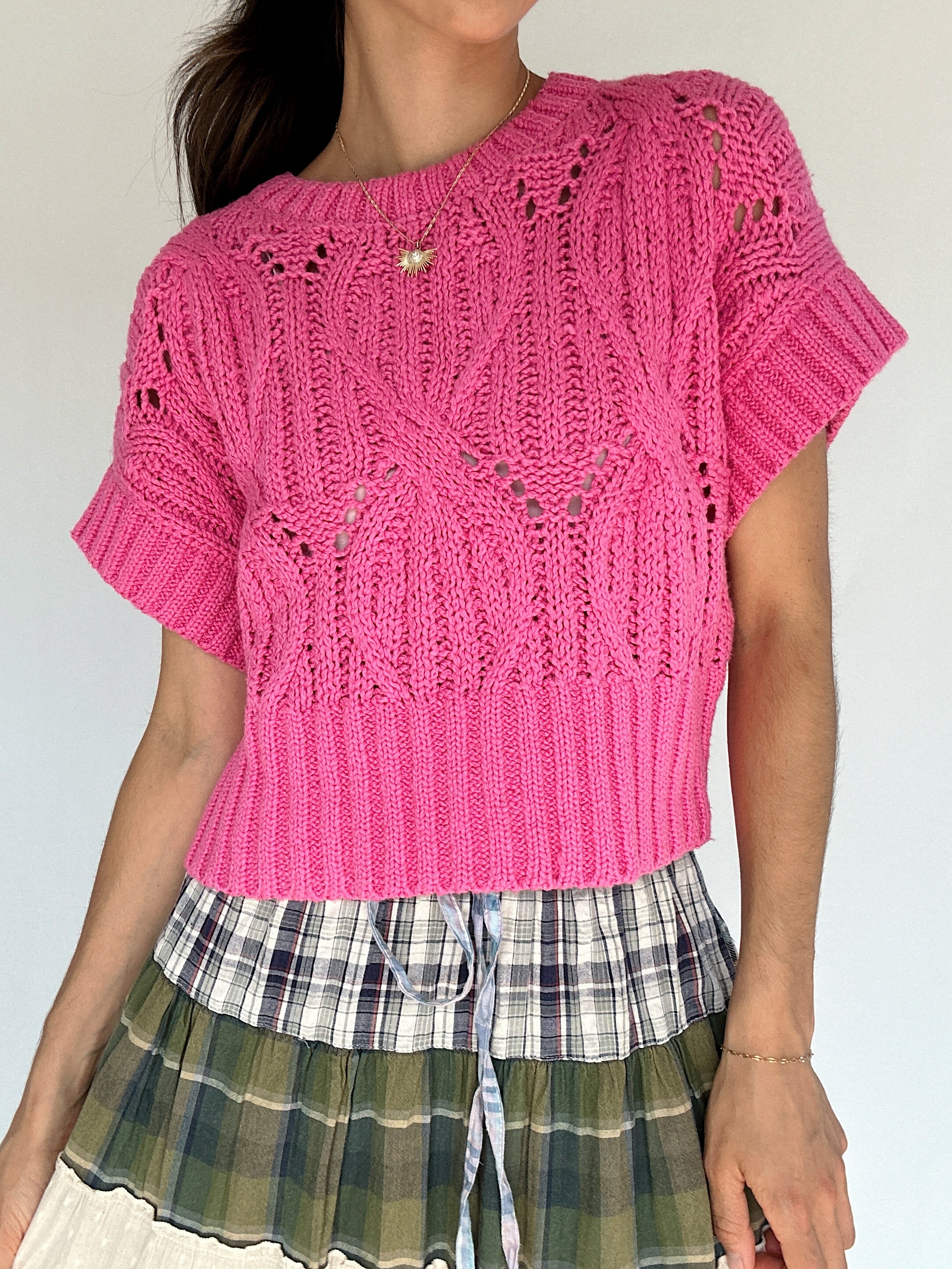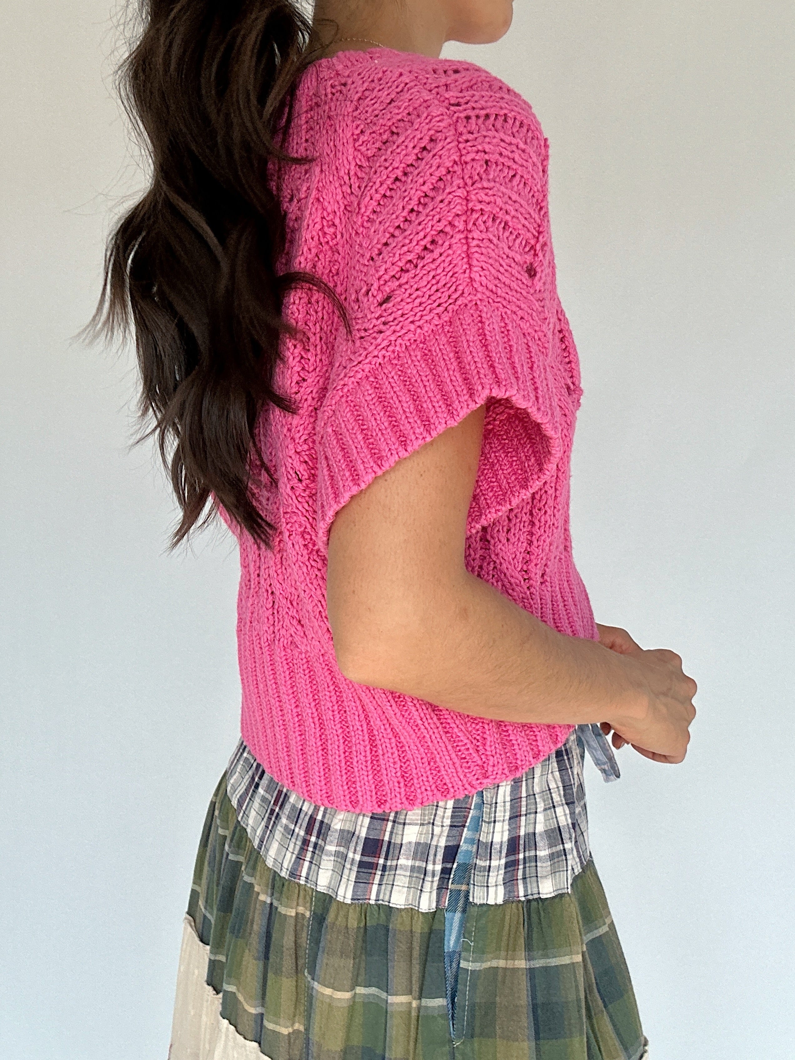 Cali Short Sleeve Sweater - Hot Pink