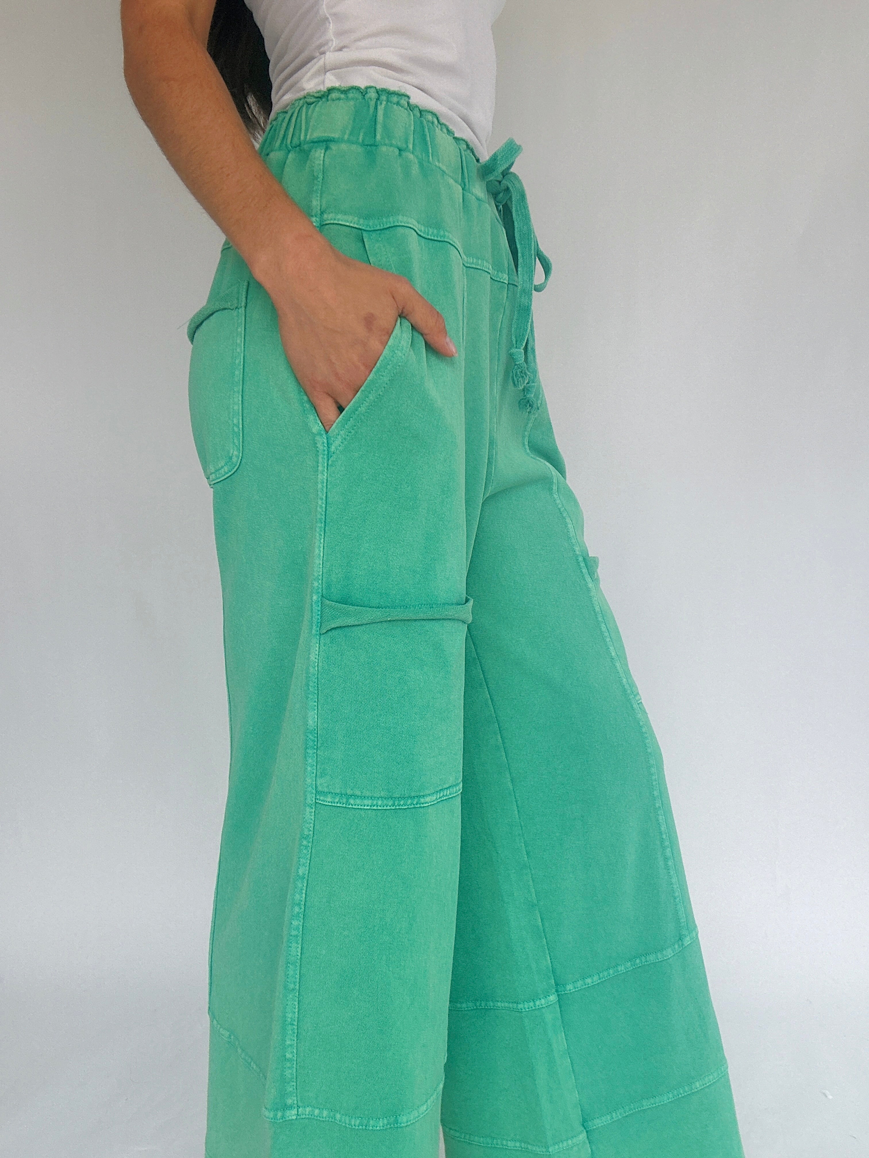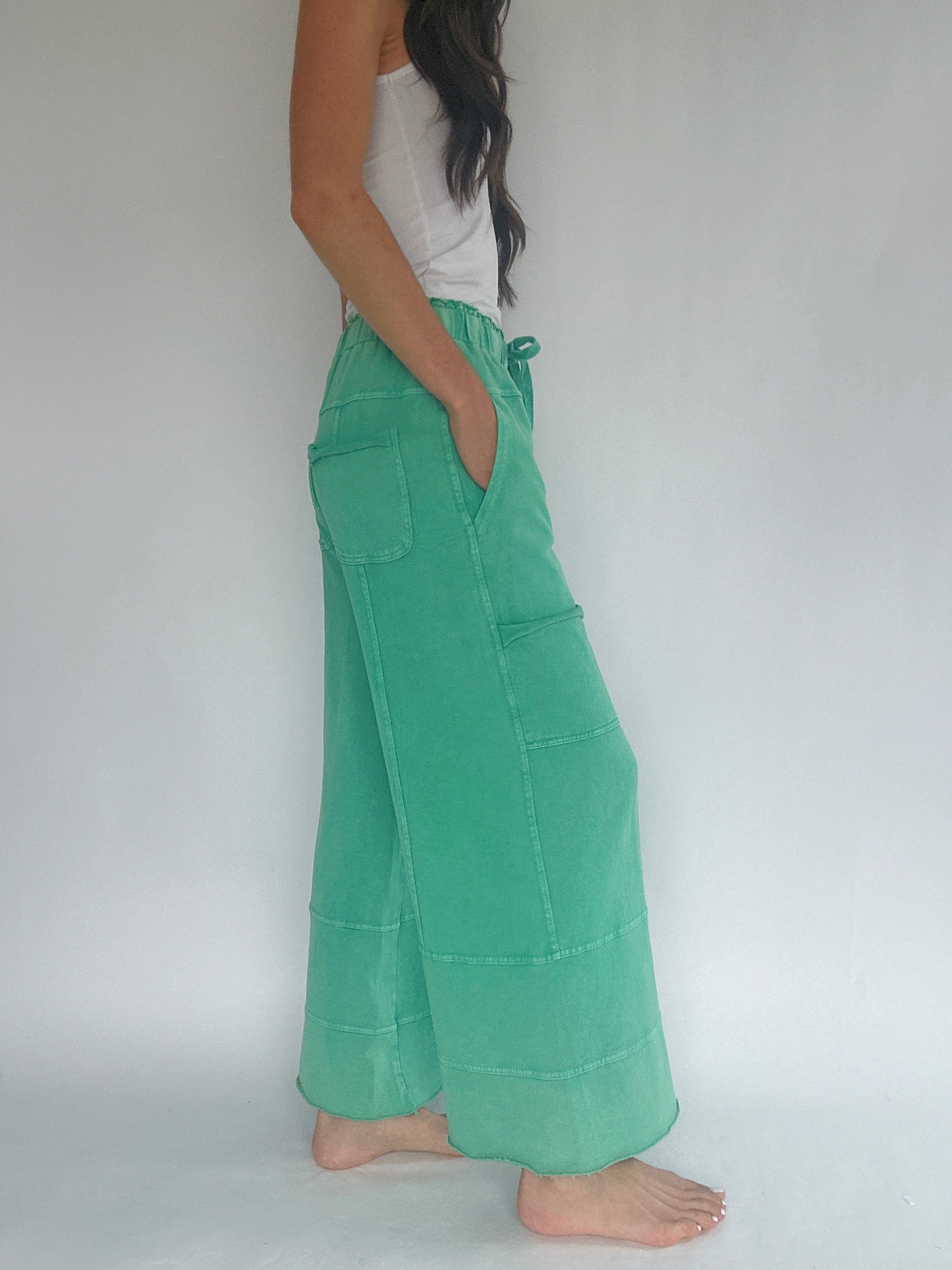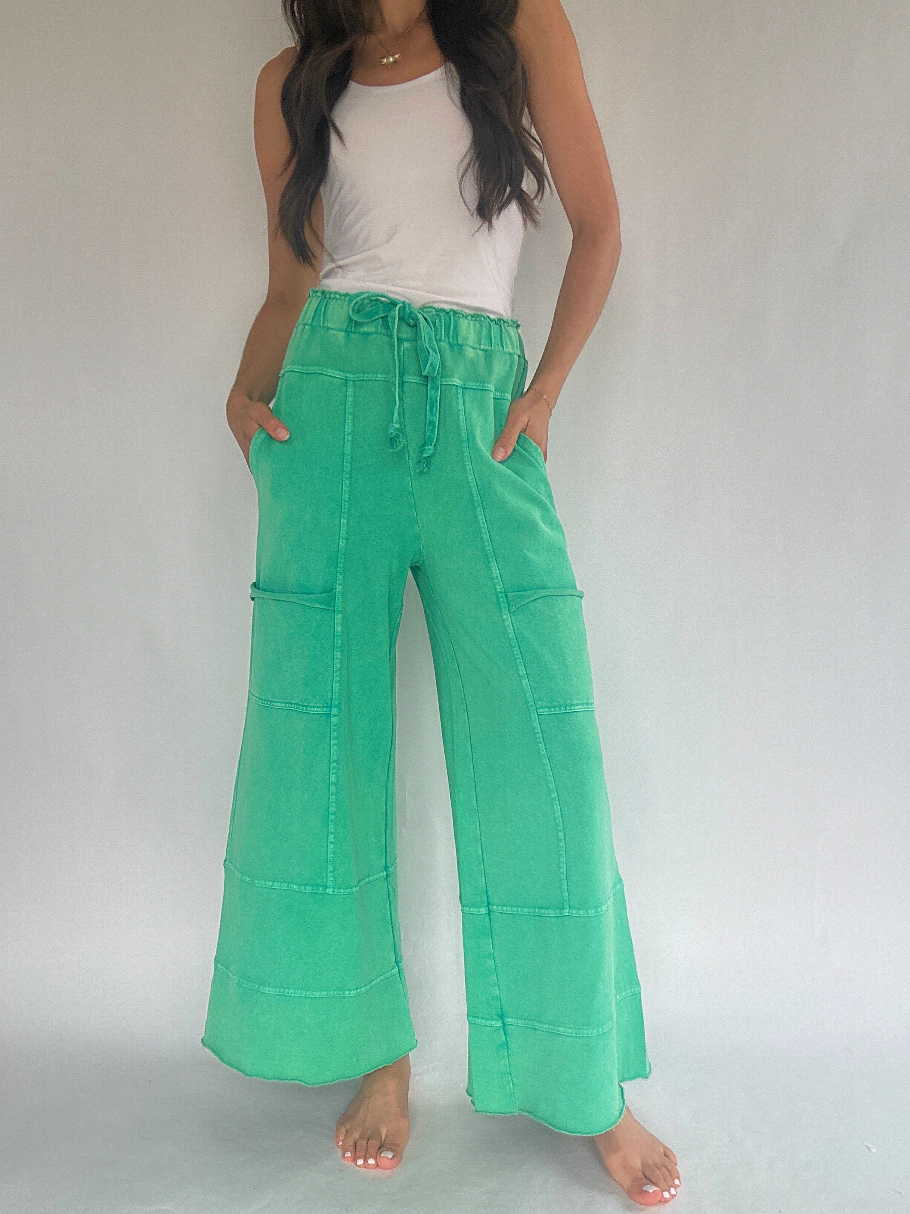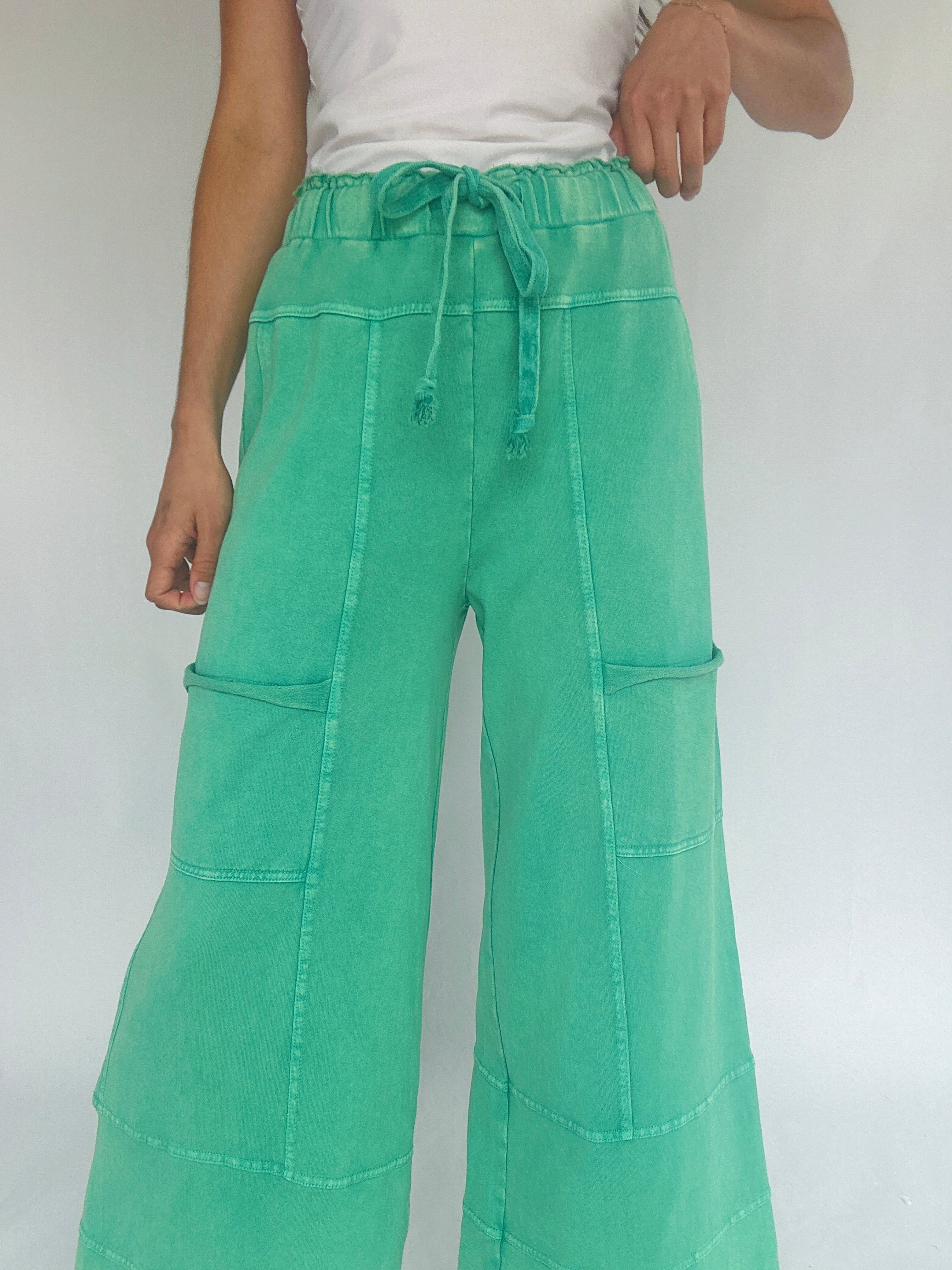 Miles Ahead Wide Leg Pants - Faded Teal