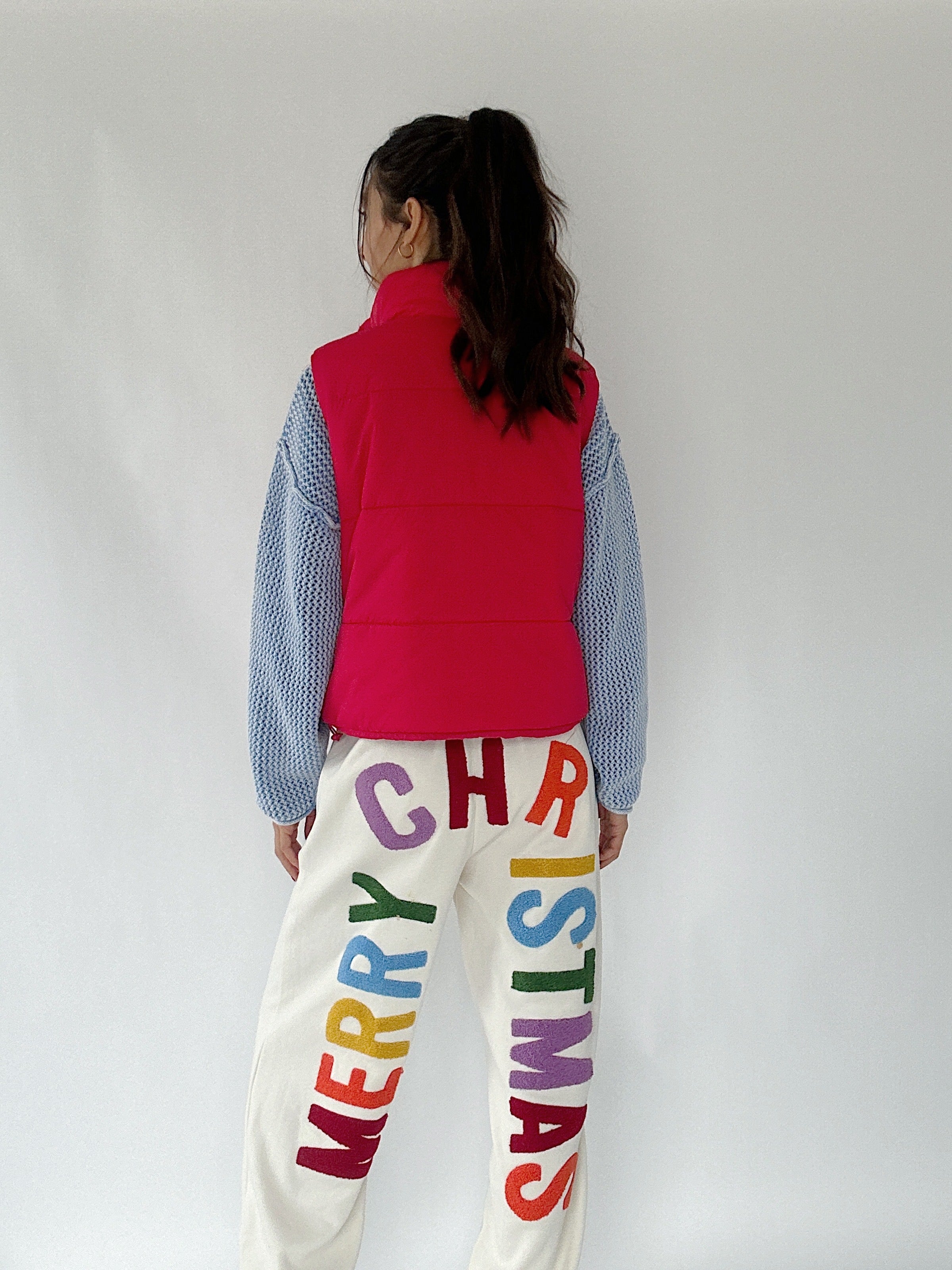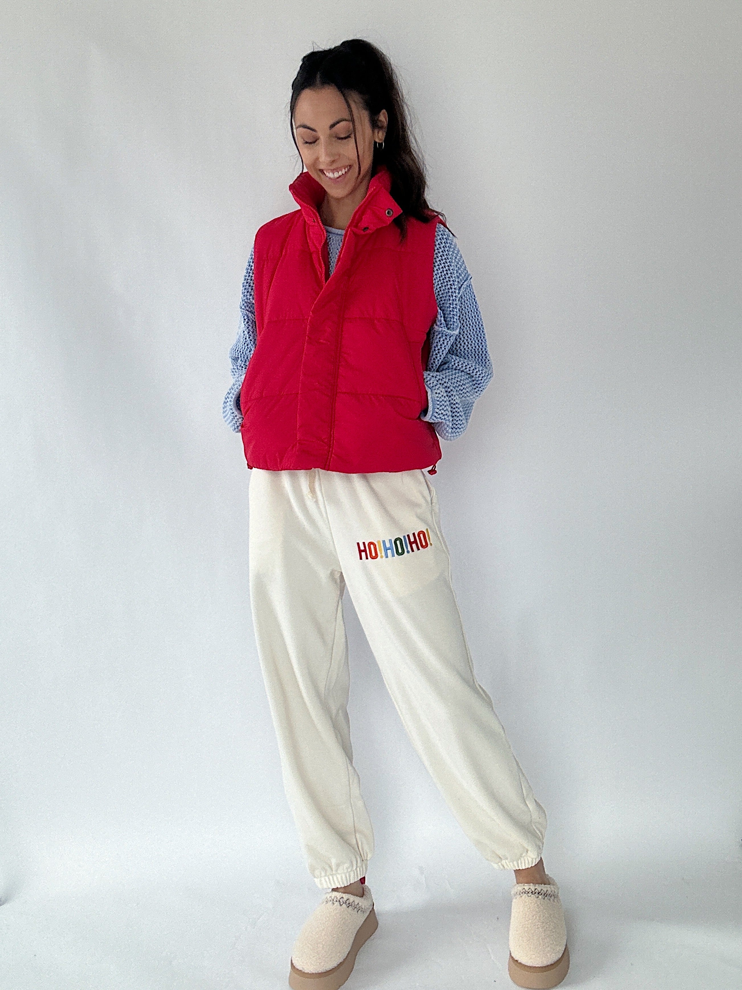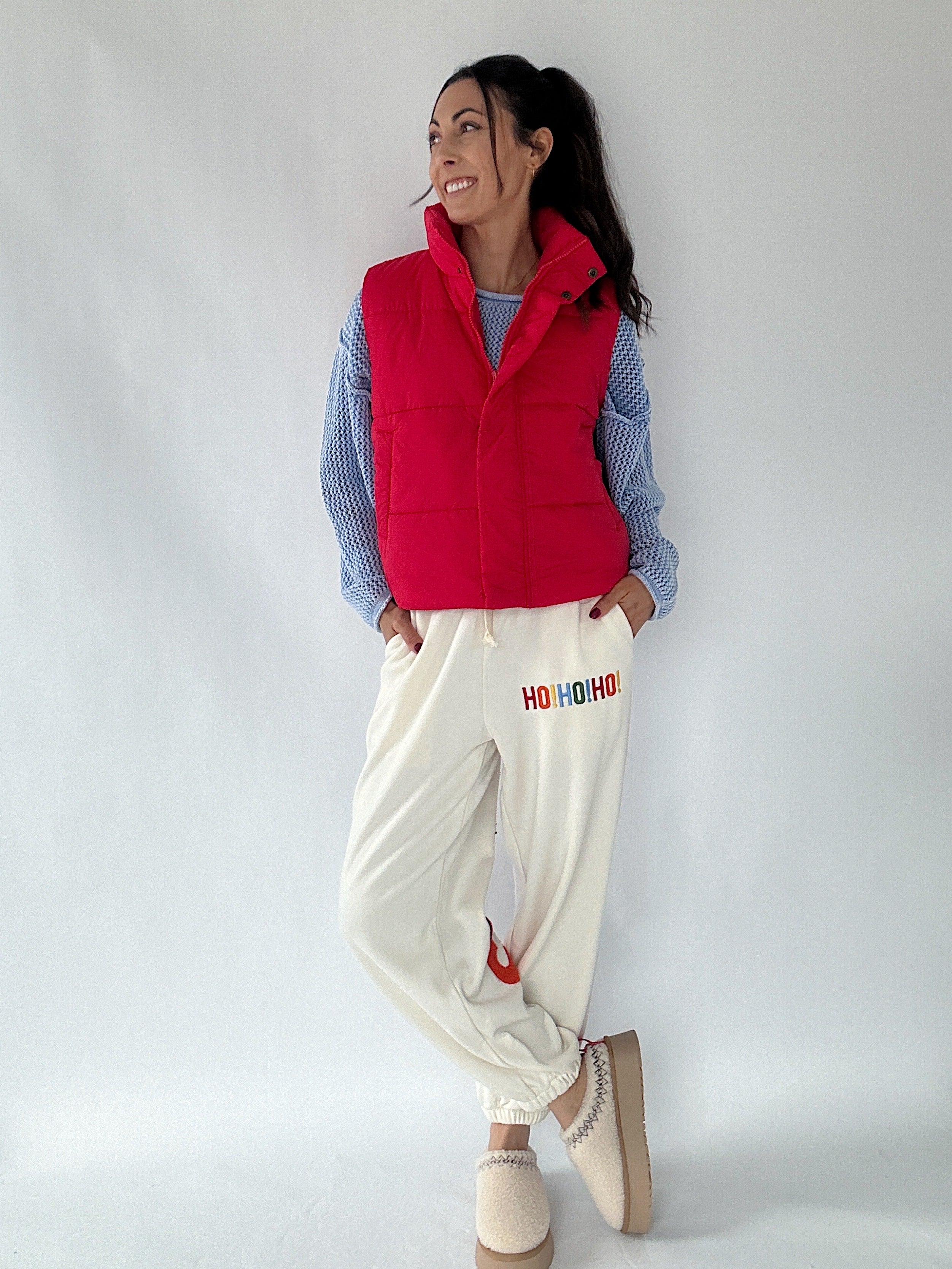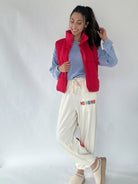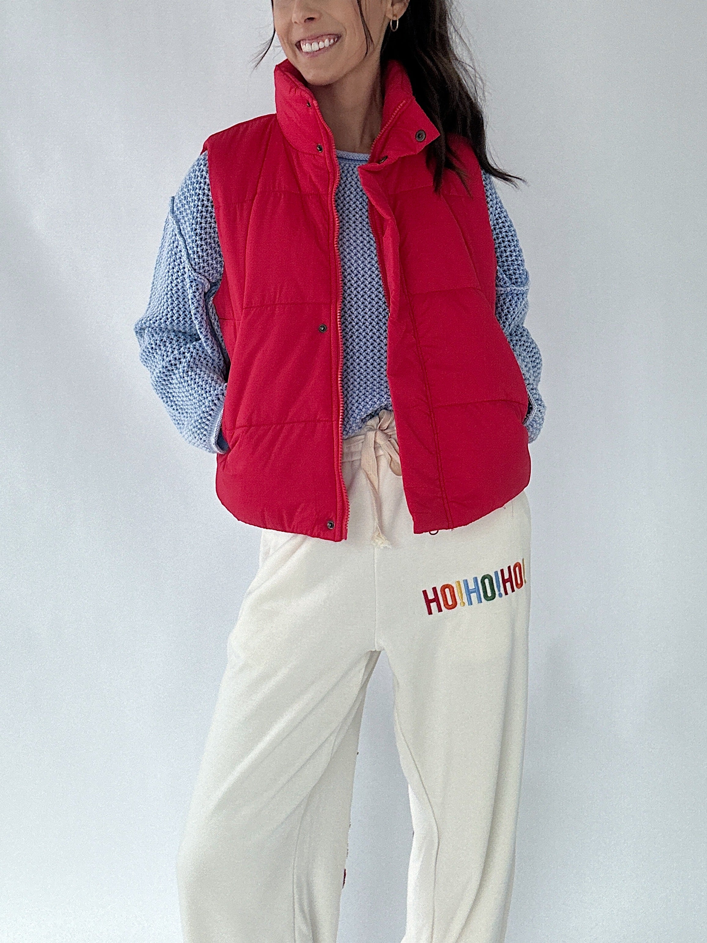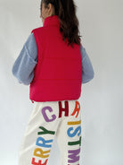 Cute, bold, and so much fun for layering, the Cheery Red Puffer Vest instantly adds a pop of color to your cold-weather looks. Designed with a zip and snap-front closure, side pockets, and an adjustable hem, it’s as practical as it is playful. Perfect for coffee runs, game days, or layering over your favorite graphic sweatshirt or sweater all season long.