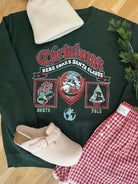 Vintage inspired "Christmas. Here Comes Santa Claus" graphic on 50/50 Preshrunk Cotton/Polyester thrifted sweatshirt with distressing. Each piece is one of a kind, and colors/distressing may vary from shirt to shirt.