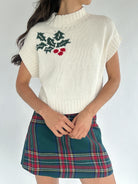 Bring on the holiday spirit with the Holly Short Sleeve Sweater. This festive knit is designed with a ribbed mock neckline, cap sleeves, and a cropped silhouette that makes it easy to pair with everything from high-rise denim to skirts. The intarsia holly motif with bright red berries adds the perfect seasonal touch!