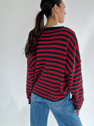 This soft cardigan is light weight and easy for everyday wear but also SO cute for the holidays! It has a red and green horizontal striped pattern, full button front and is the perfect layering piece. Or wear it alone with some jeans or wide leg pants!