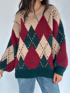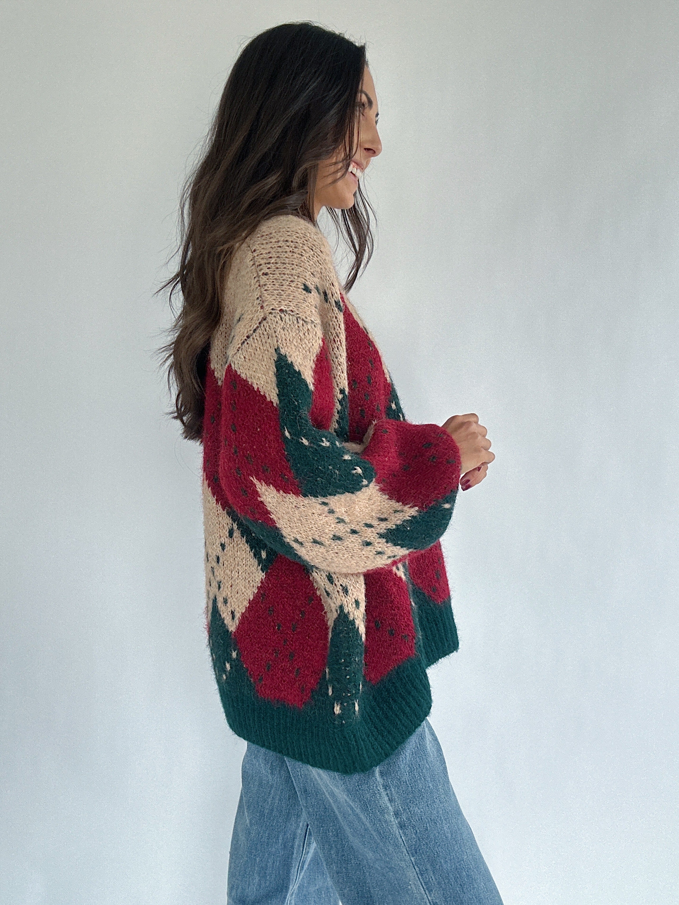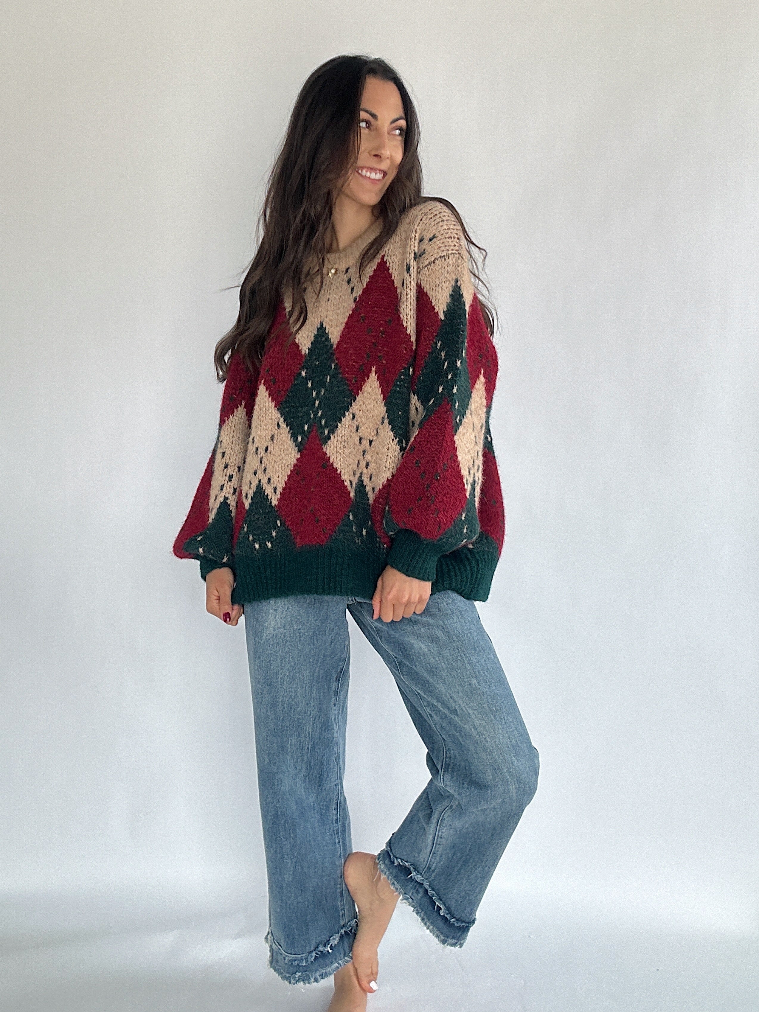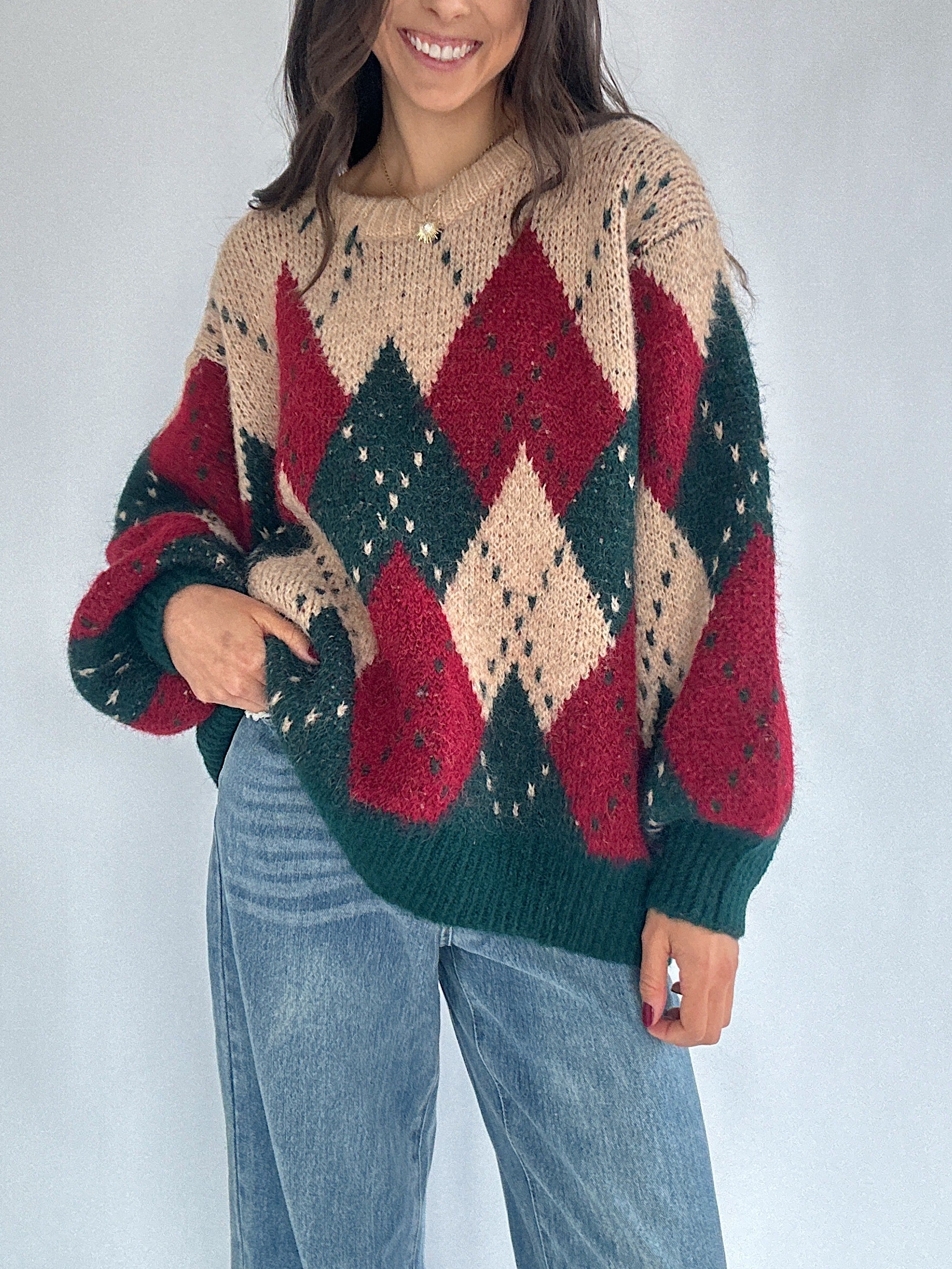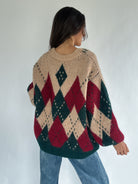 A little festive, a lot of cozy. The Time Of Year Sweater brings all the nostalgic winter charm! With its red and green argyle pattern on a warm camel base, this chunky knit feels like that one go-to sweater you always reach for when the weather turns. Whether you're headed to a holiday market, grabbing hot cocoa, or just vibing through December, this one sets the mood.