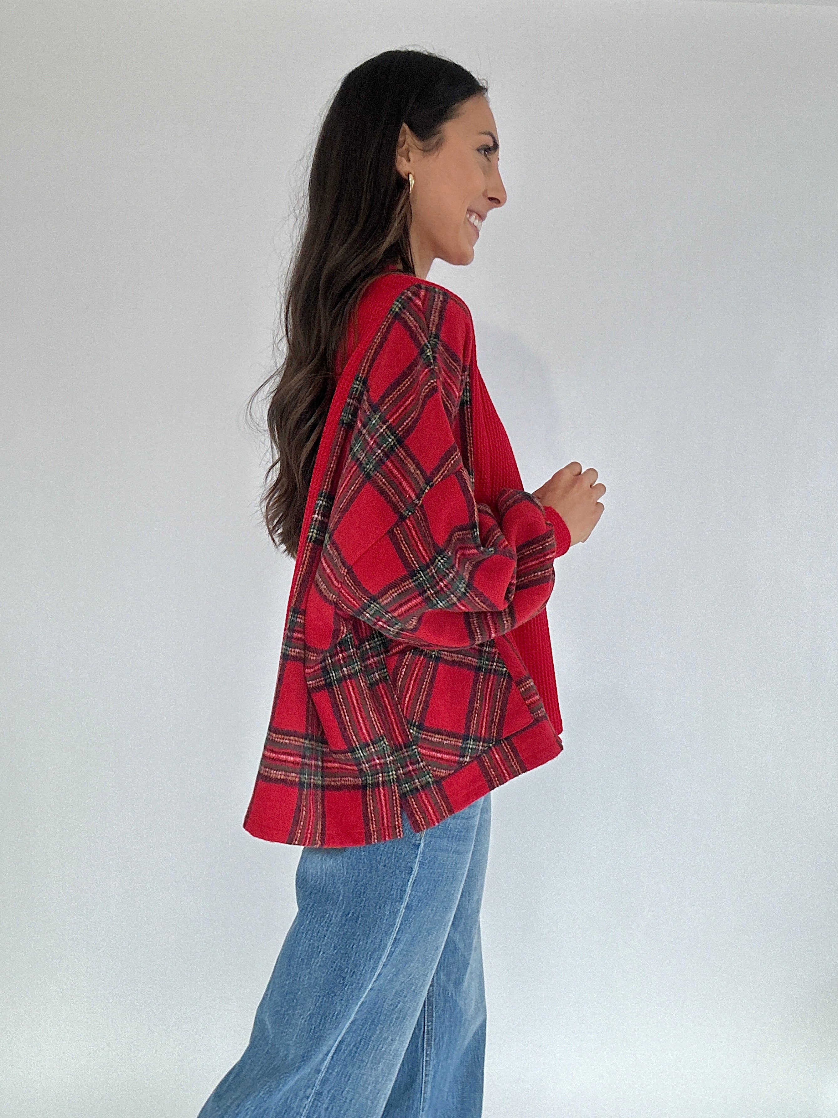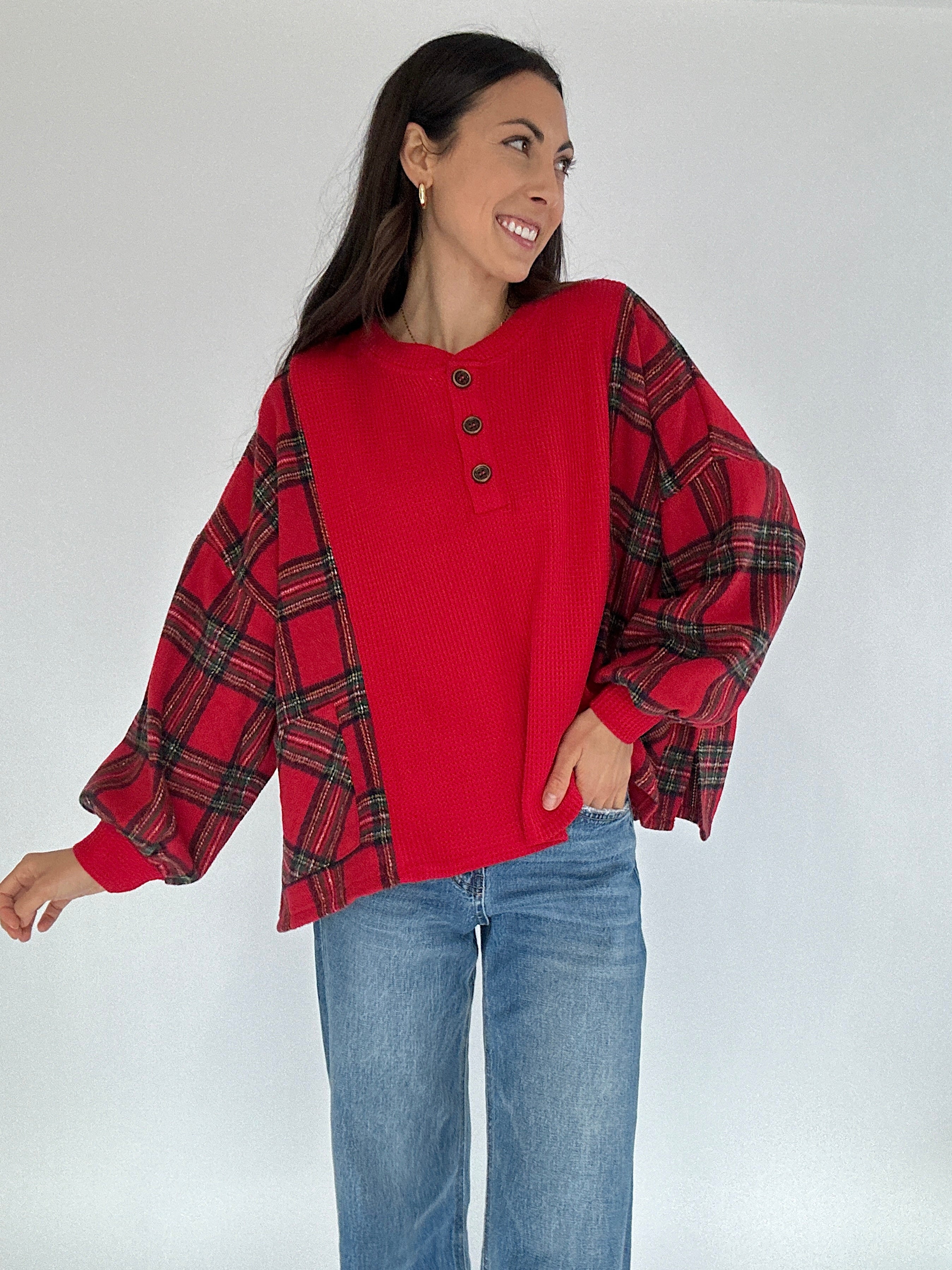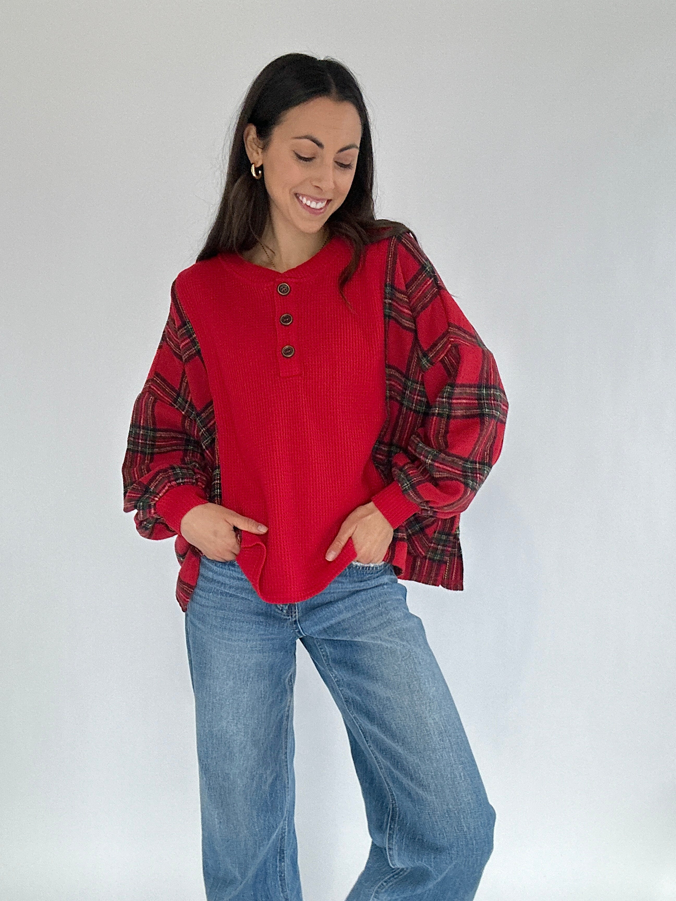 The Redwood Plaid Henley Top brings all the cozy, classic vibes of the holiday season. Picture tree farm afternoons, relaxed morning coffee runs, or strolling through a decorated downtown—the soft red waffle knit, plaid fleece side panels, and easygoing silhouette make it the top you’ll reach for on every festive day. The henley neckline adds a lived-in, effortless touch, while the relaxed fit keeps it comfortable for all-day wear.