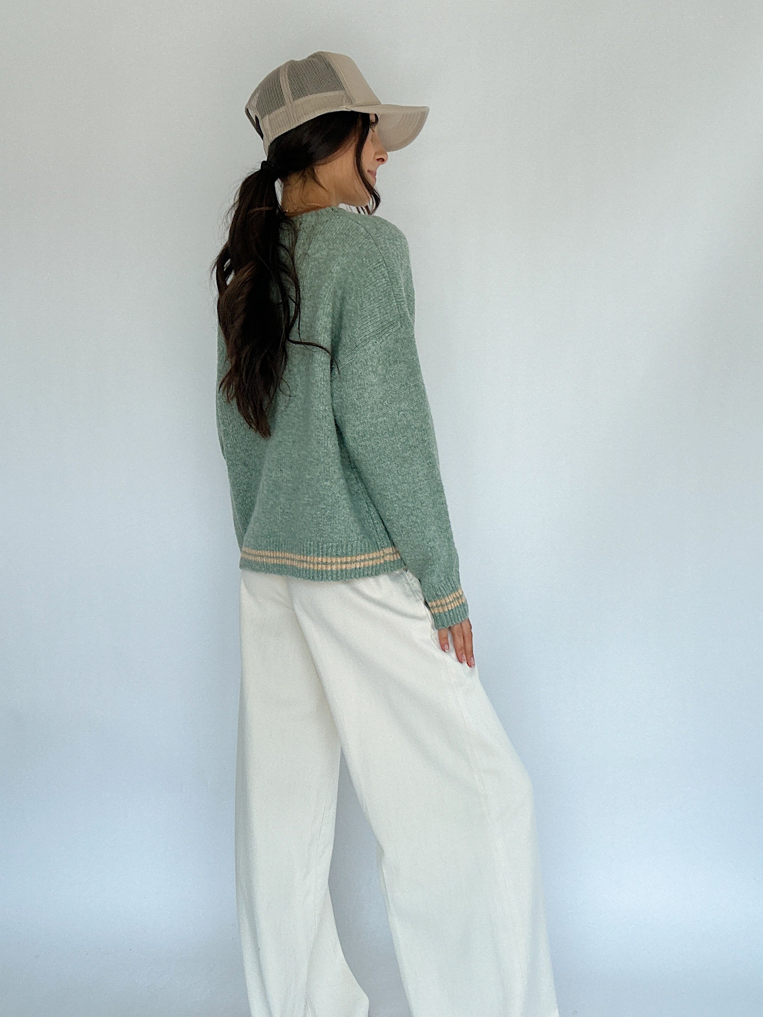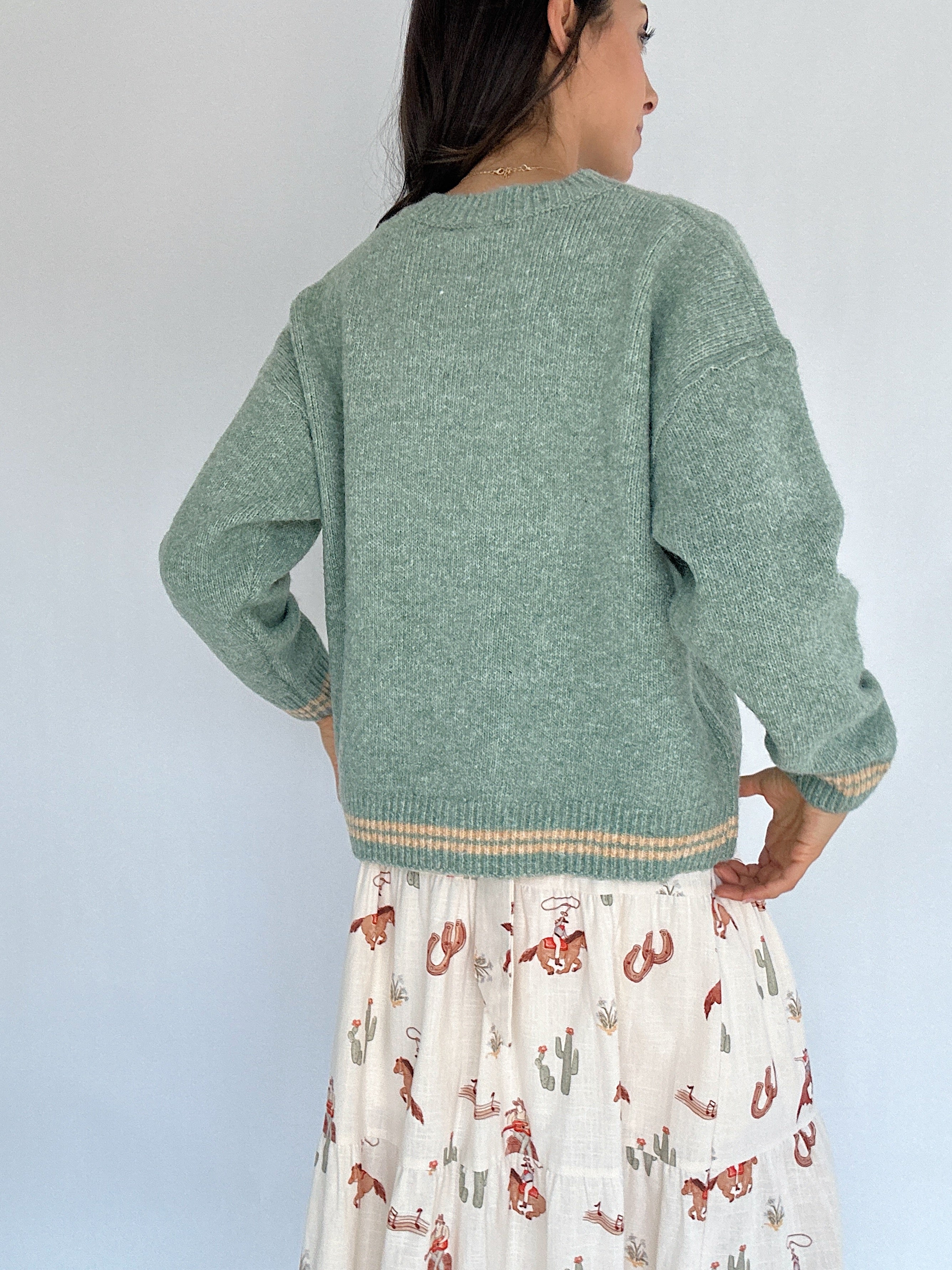 The See You Cowboy sweater brings a subtle western vibe in the coziest way. The soft basil green knit and embroidered lettering give it that playful-but-put-together feel—like something you’d throw on for a slow Saturday, a casual coffee run, or a cozy fall night with friends. It’s cute, comfy, and easy to style with just about anything.