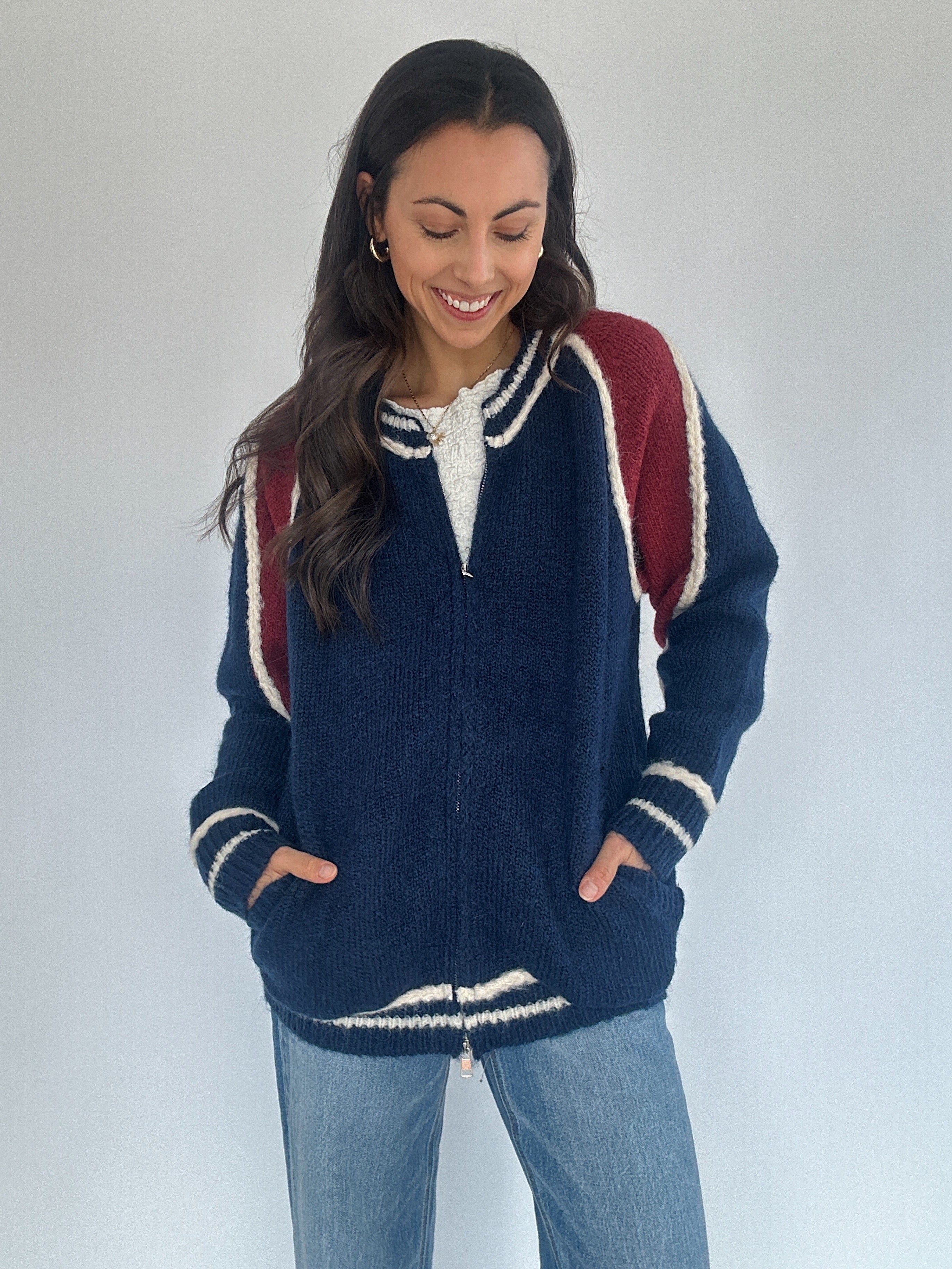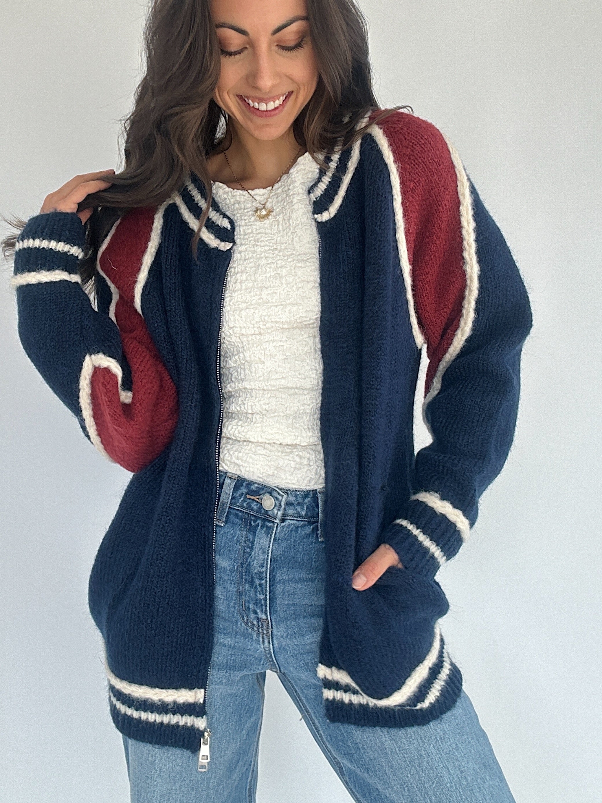 Varsity Zip Up Cardigan