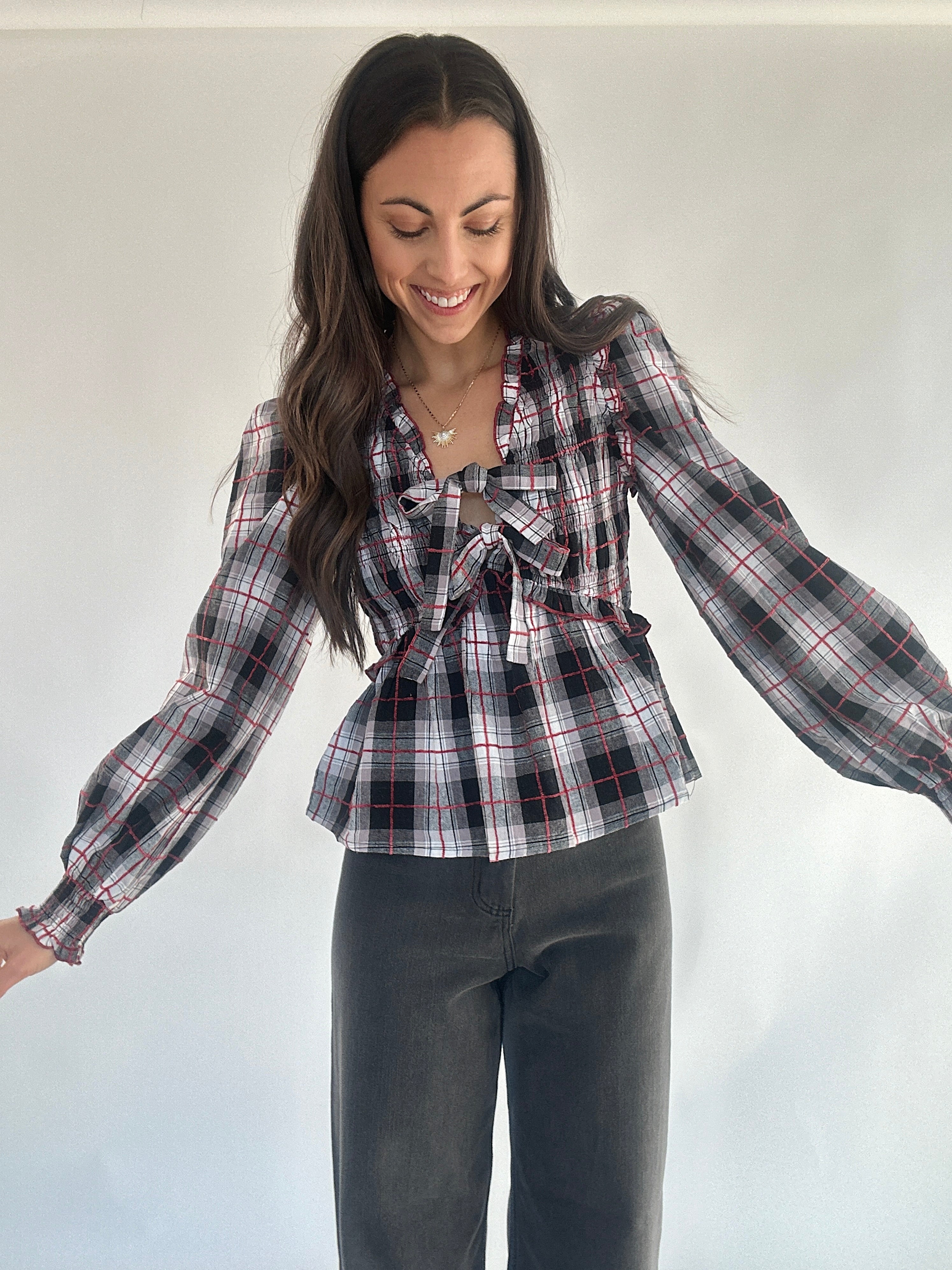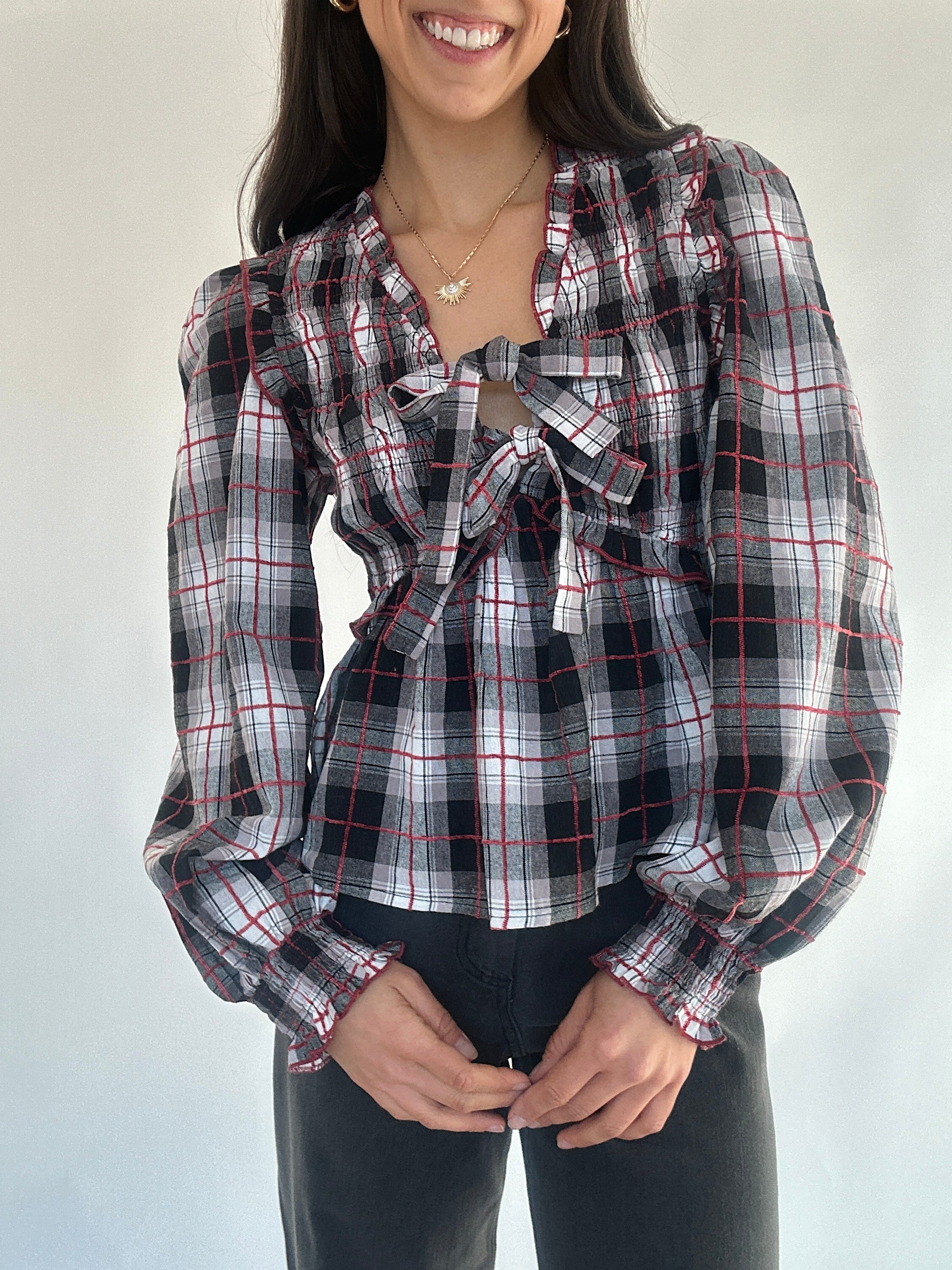 Lorelai Plaid Bow Top