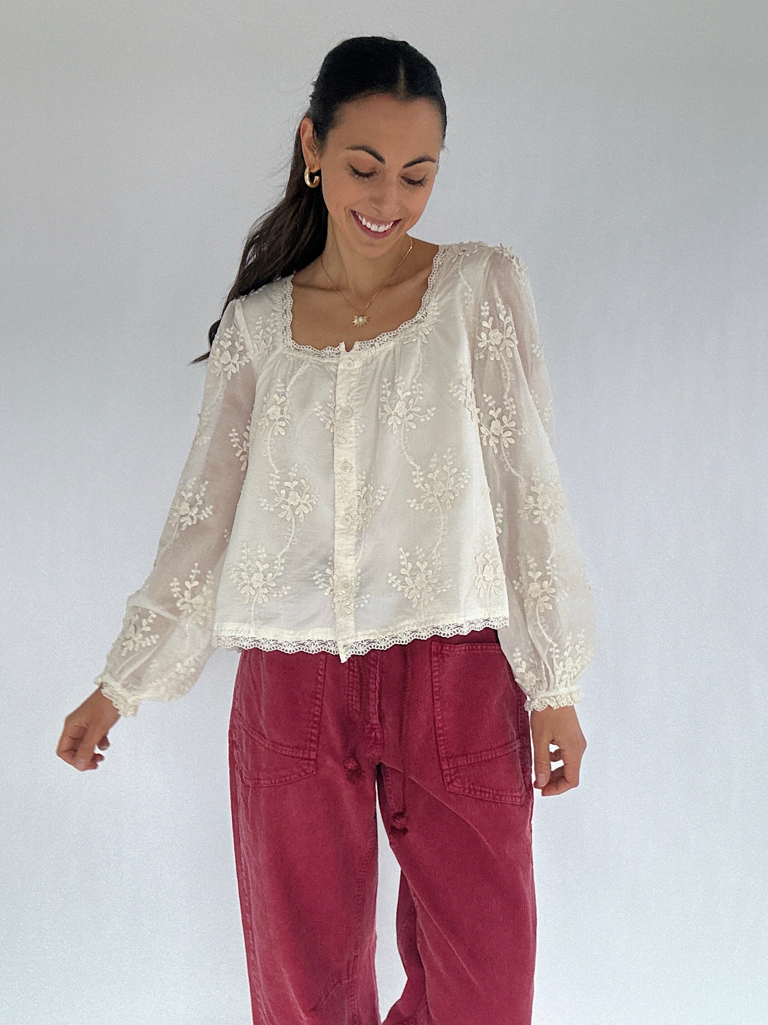 Sallee Embroidered Long Sleeve Top