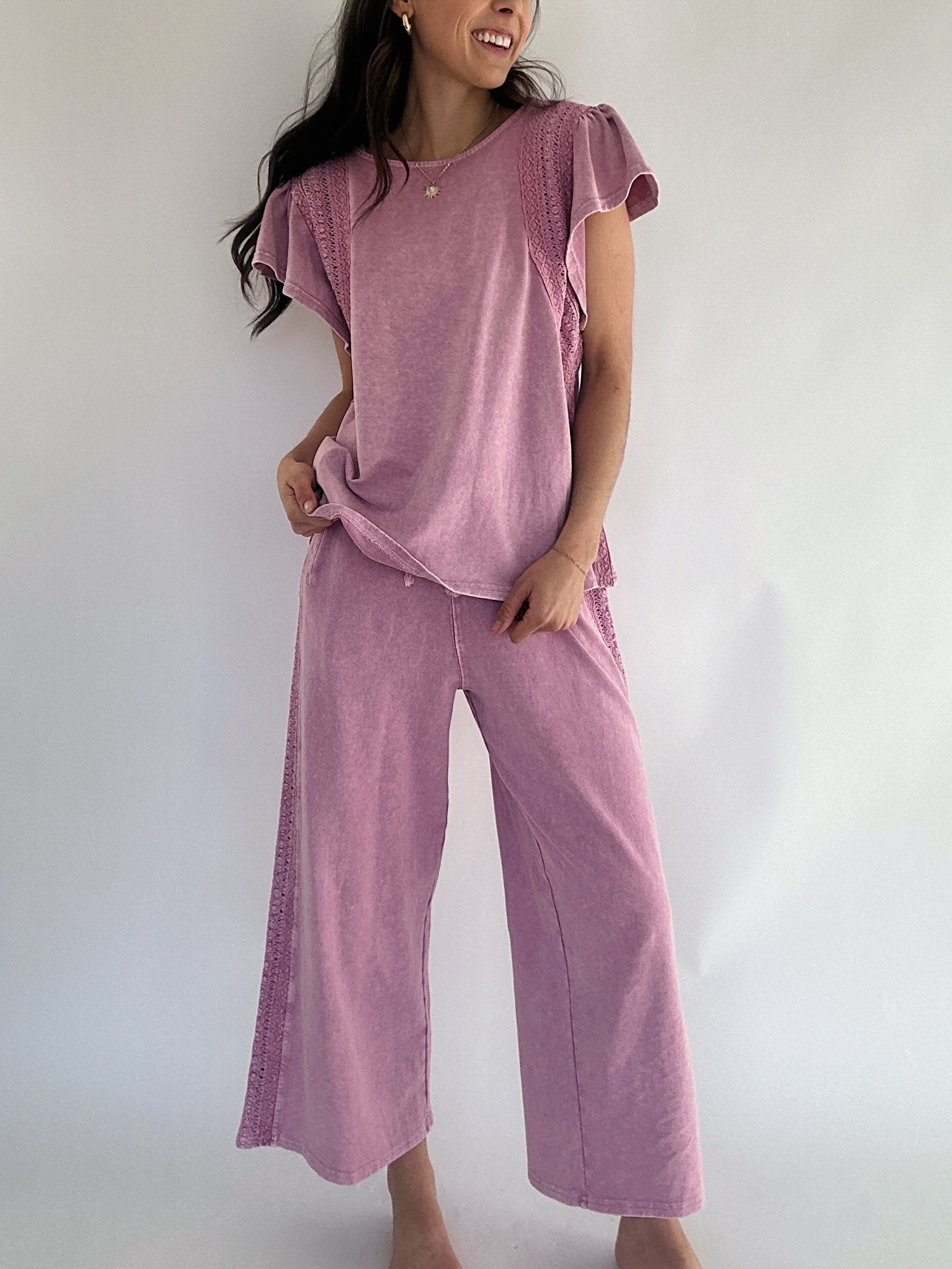 Back Road Wide Leg Pants - Berry