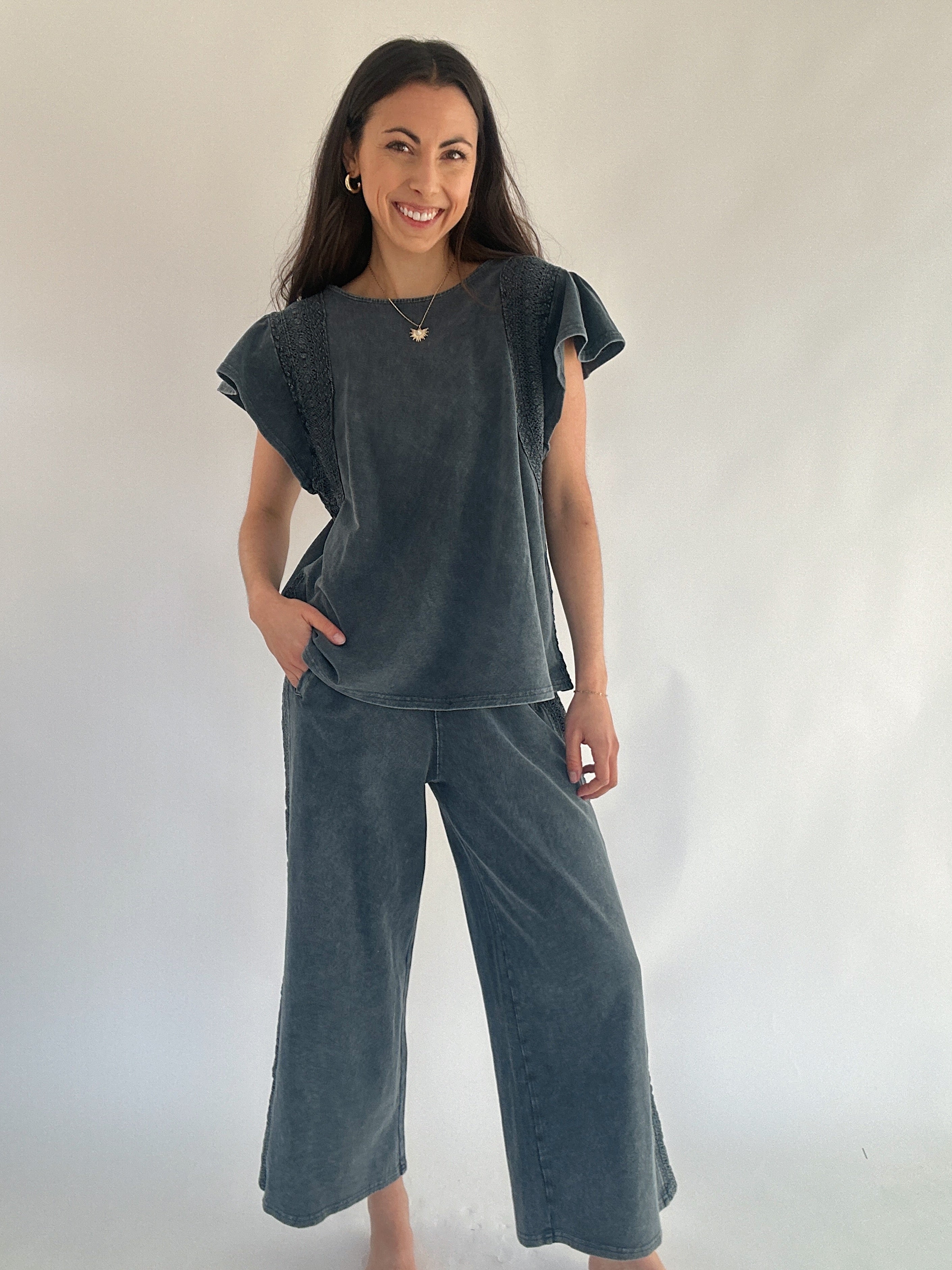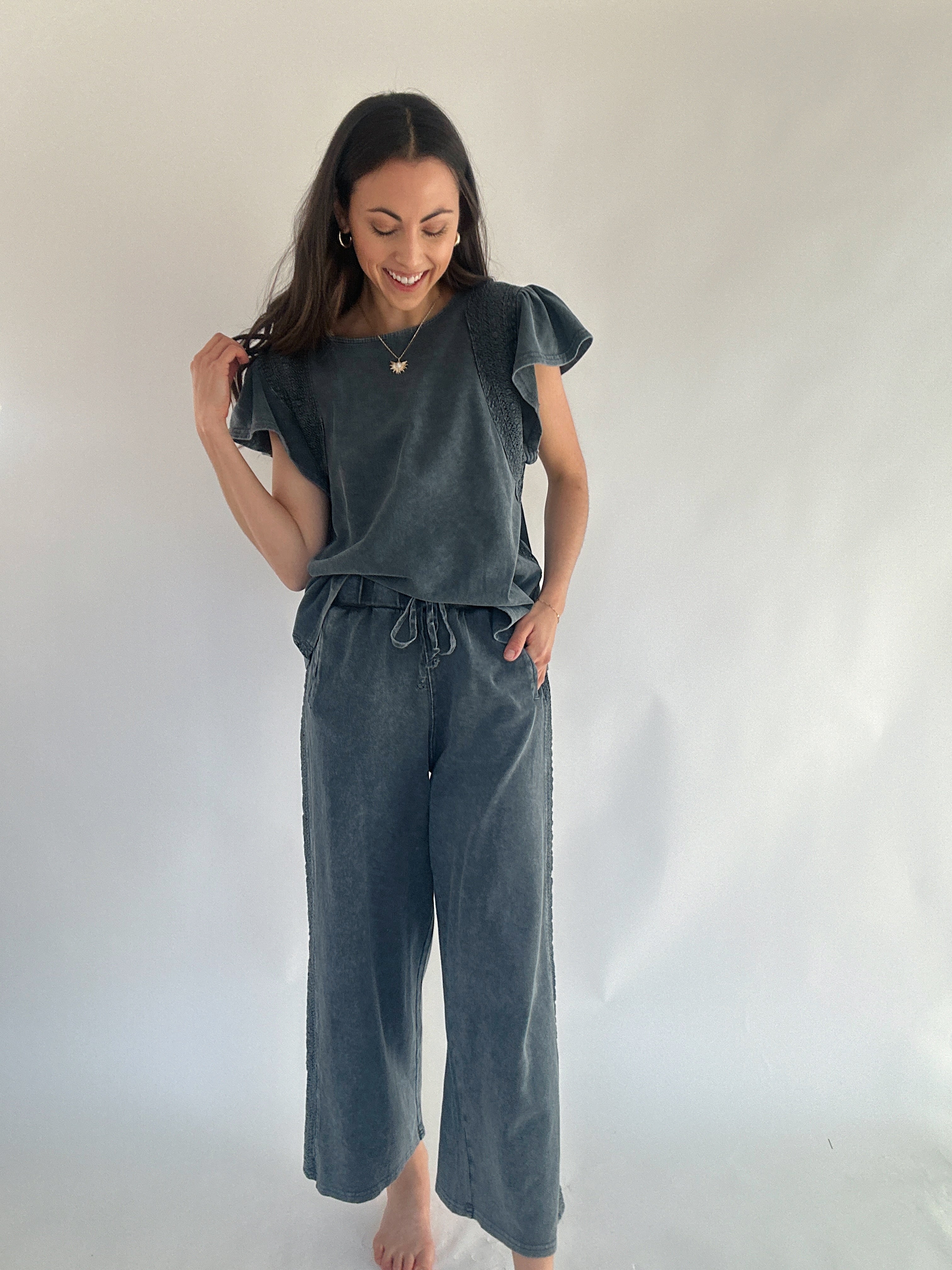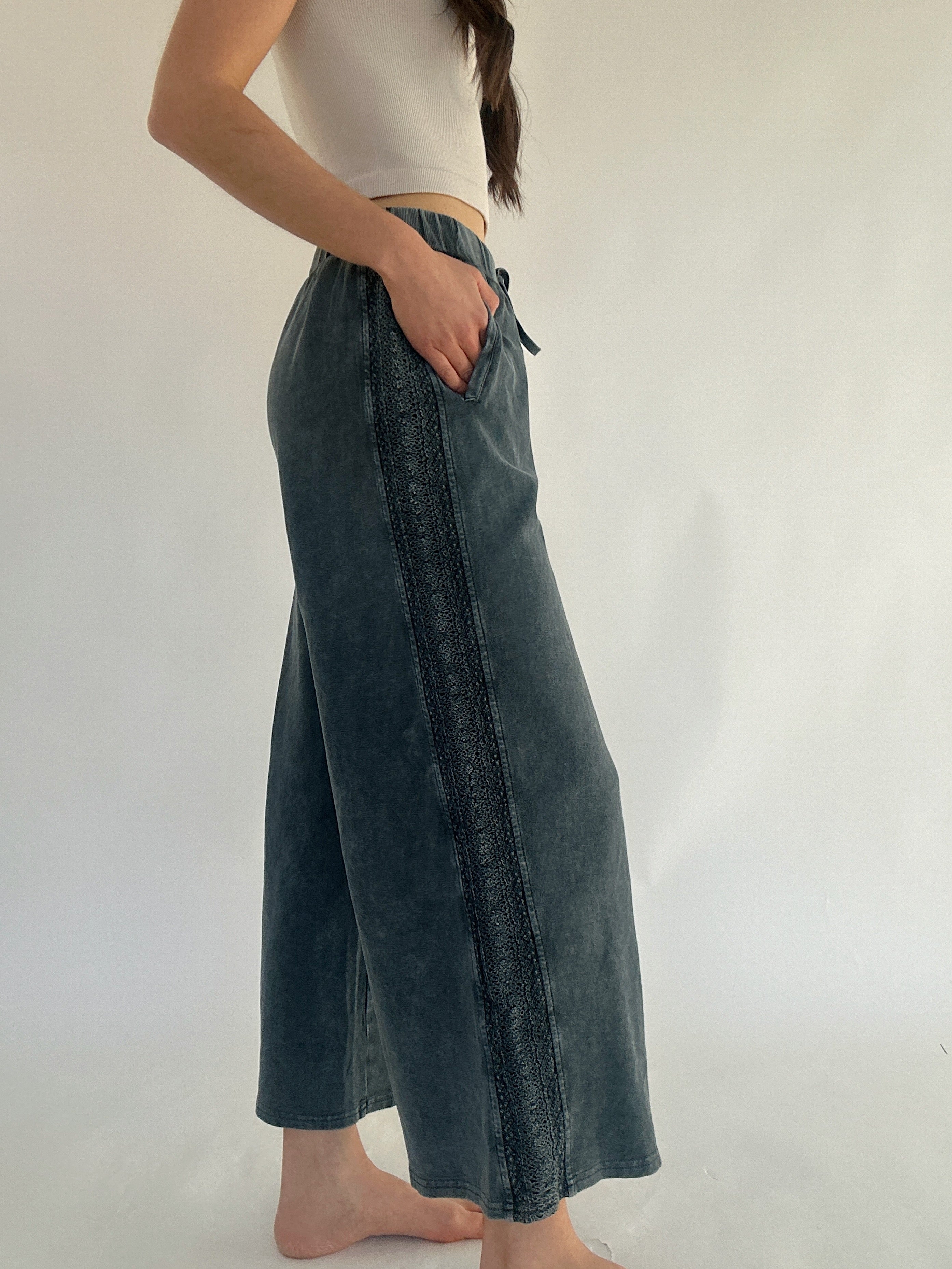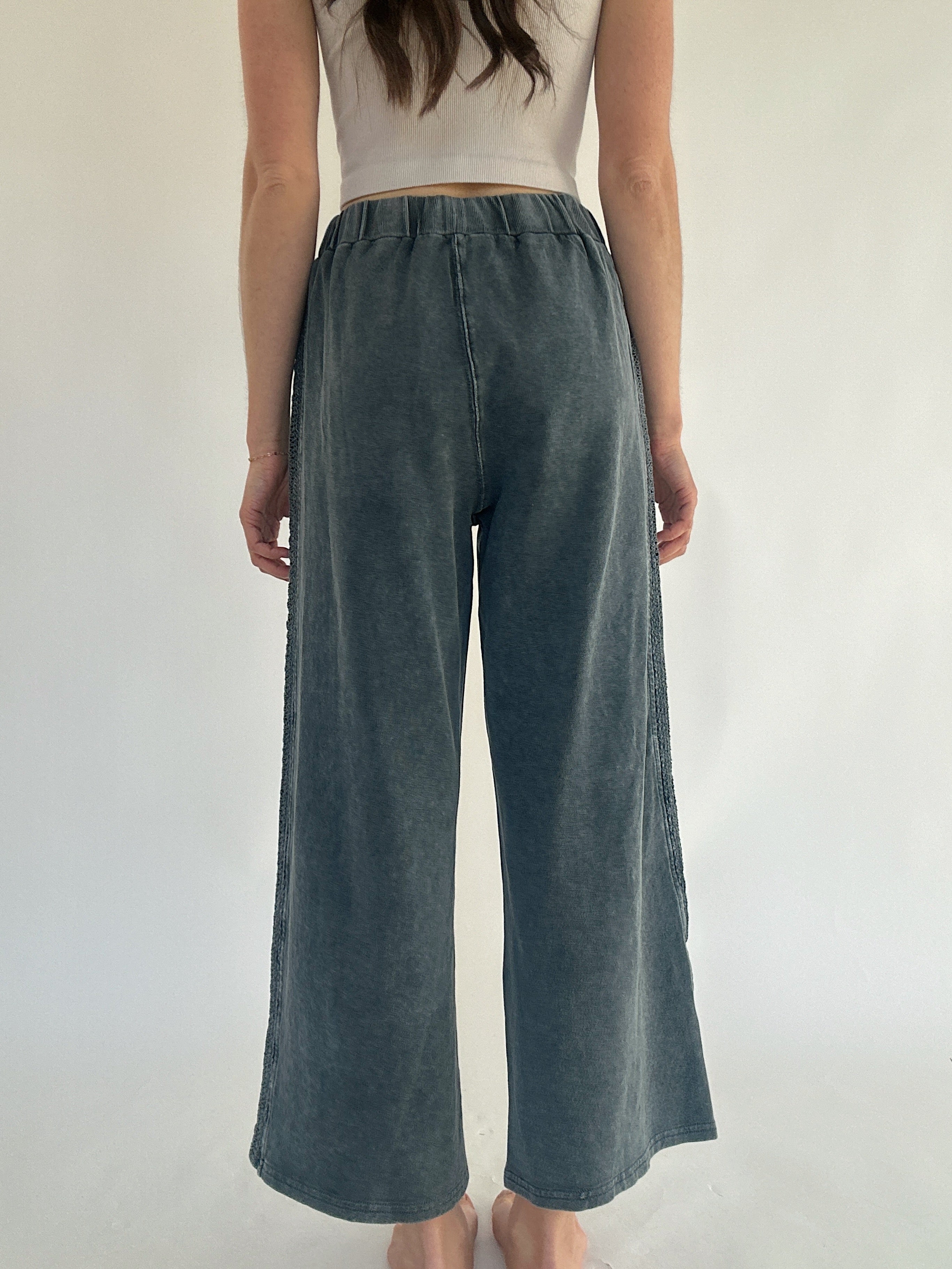 Jennie Ribbed Wide Leg Pants - Faded Teal