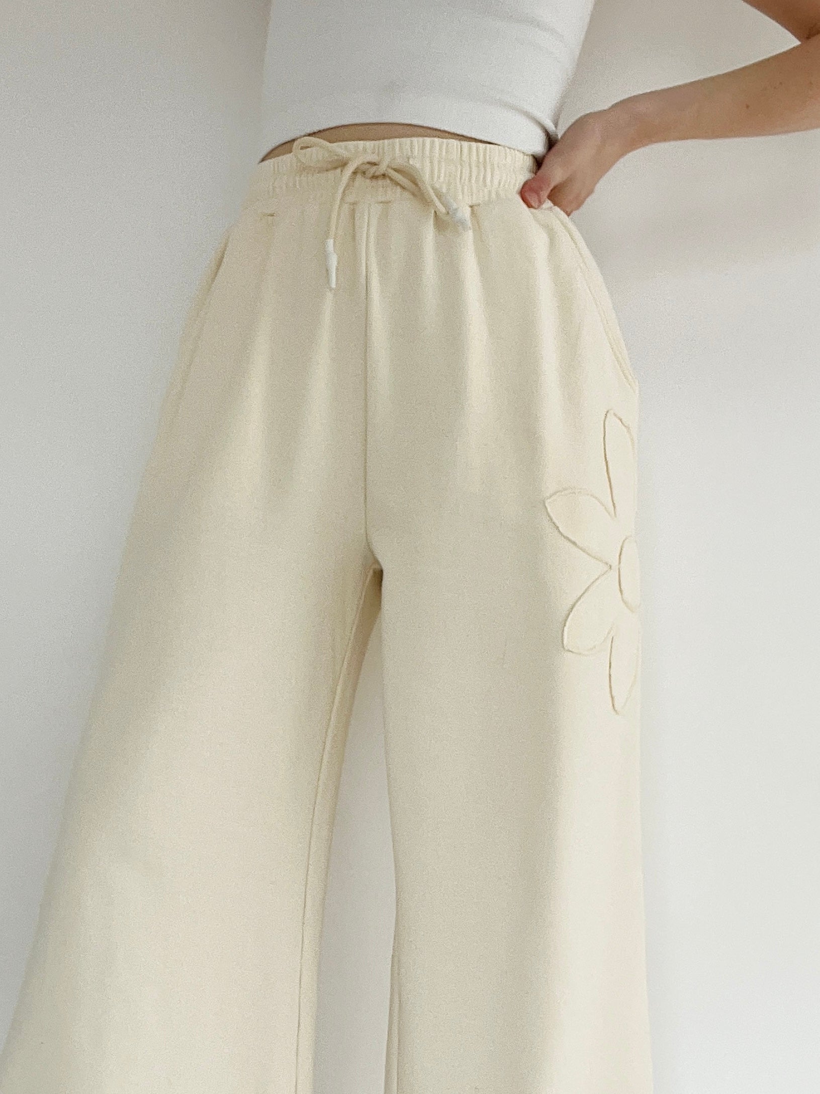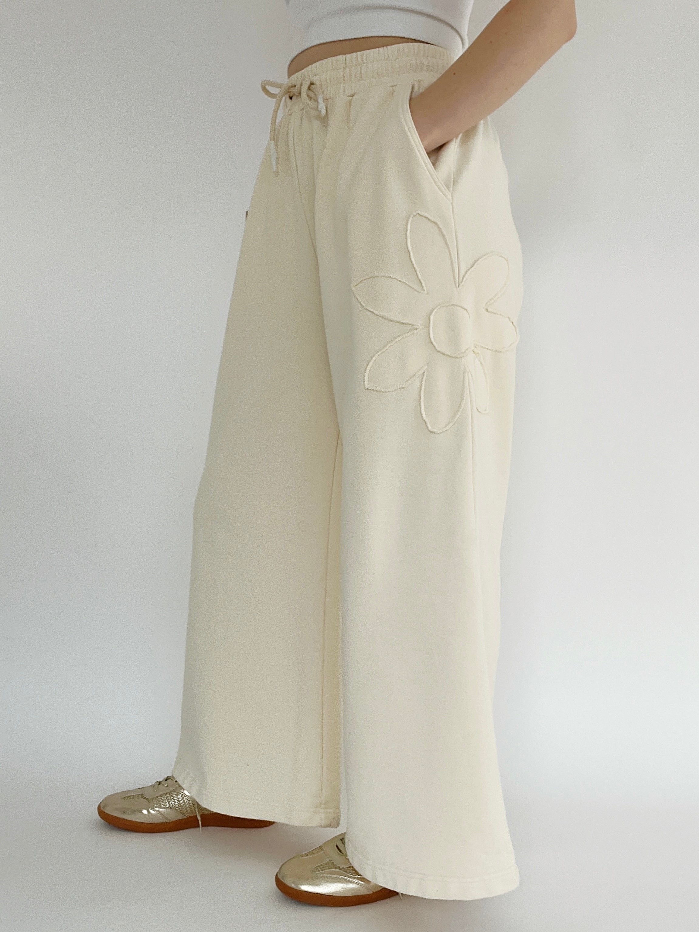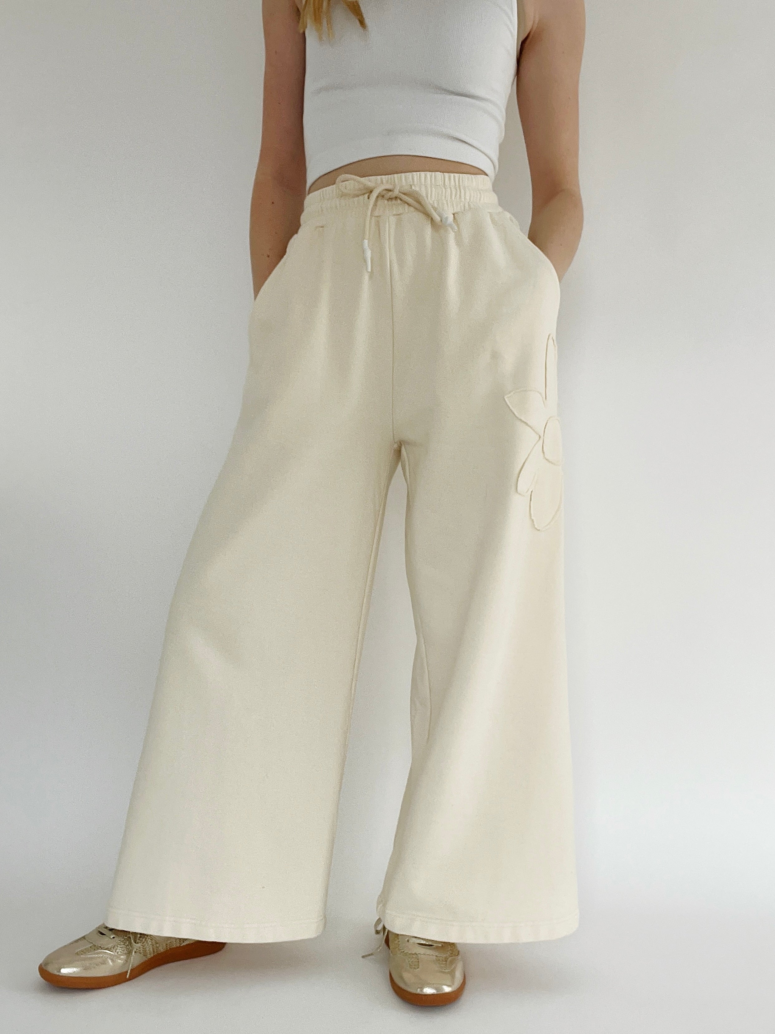 Blossom Flower Patch Wide Leg Pants - Beige