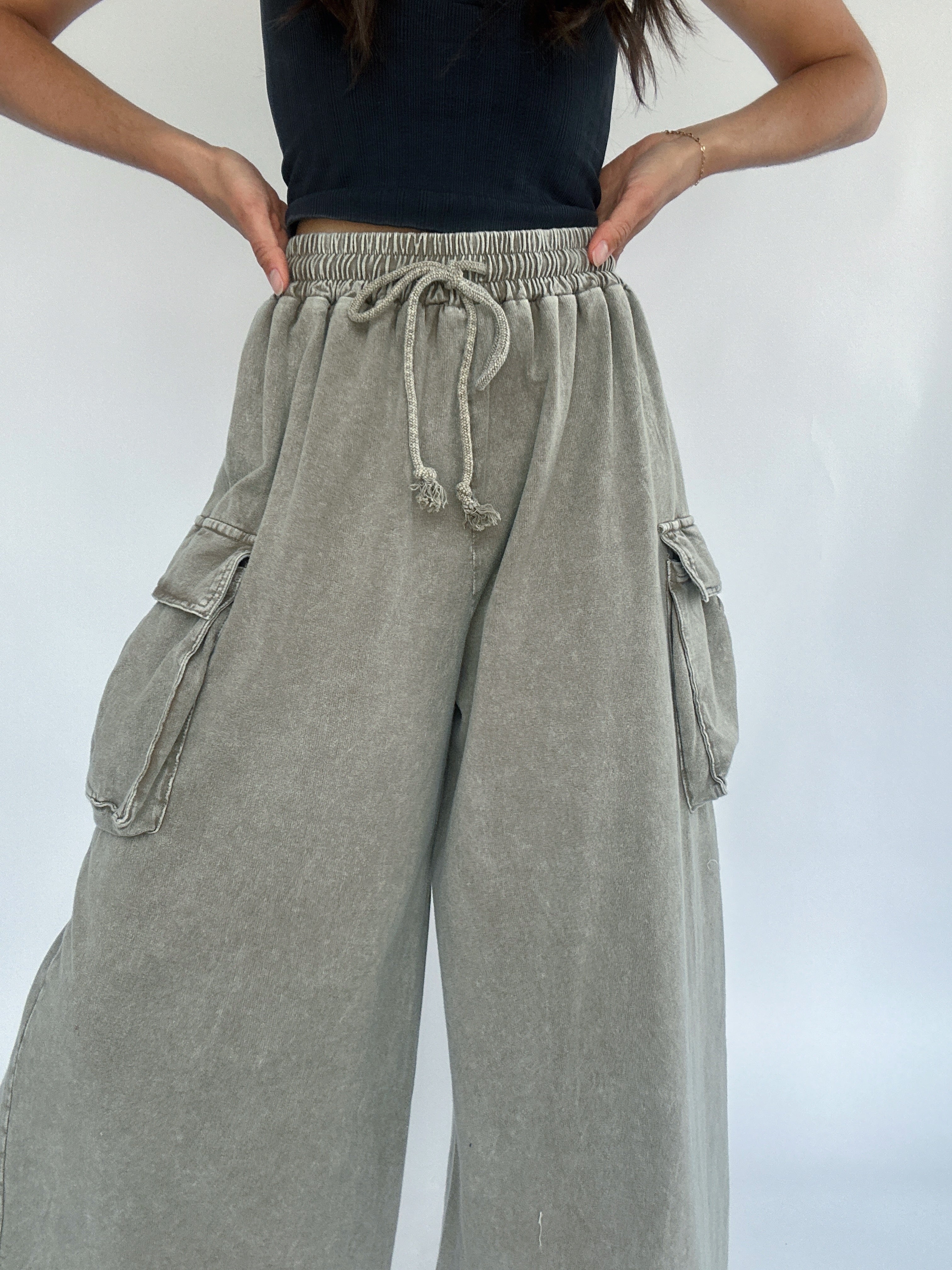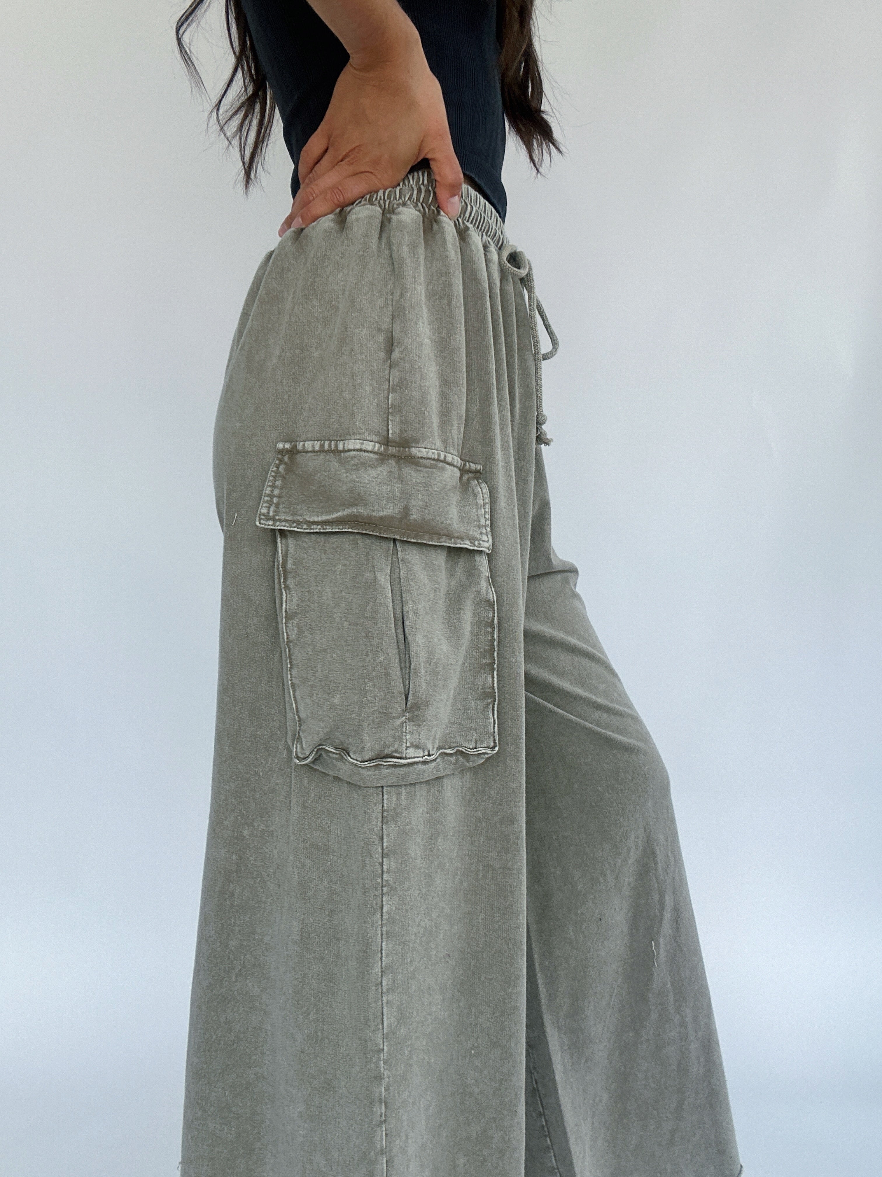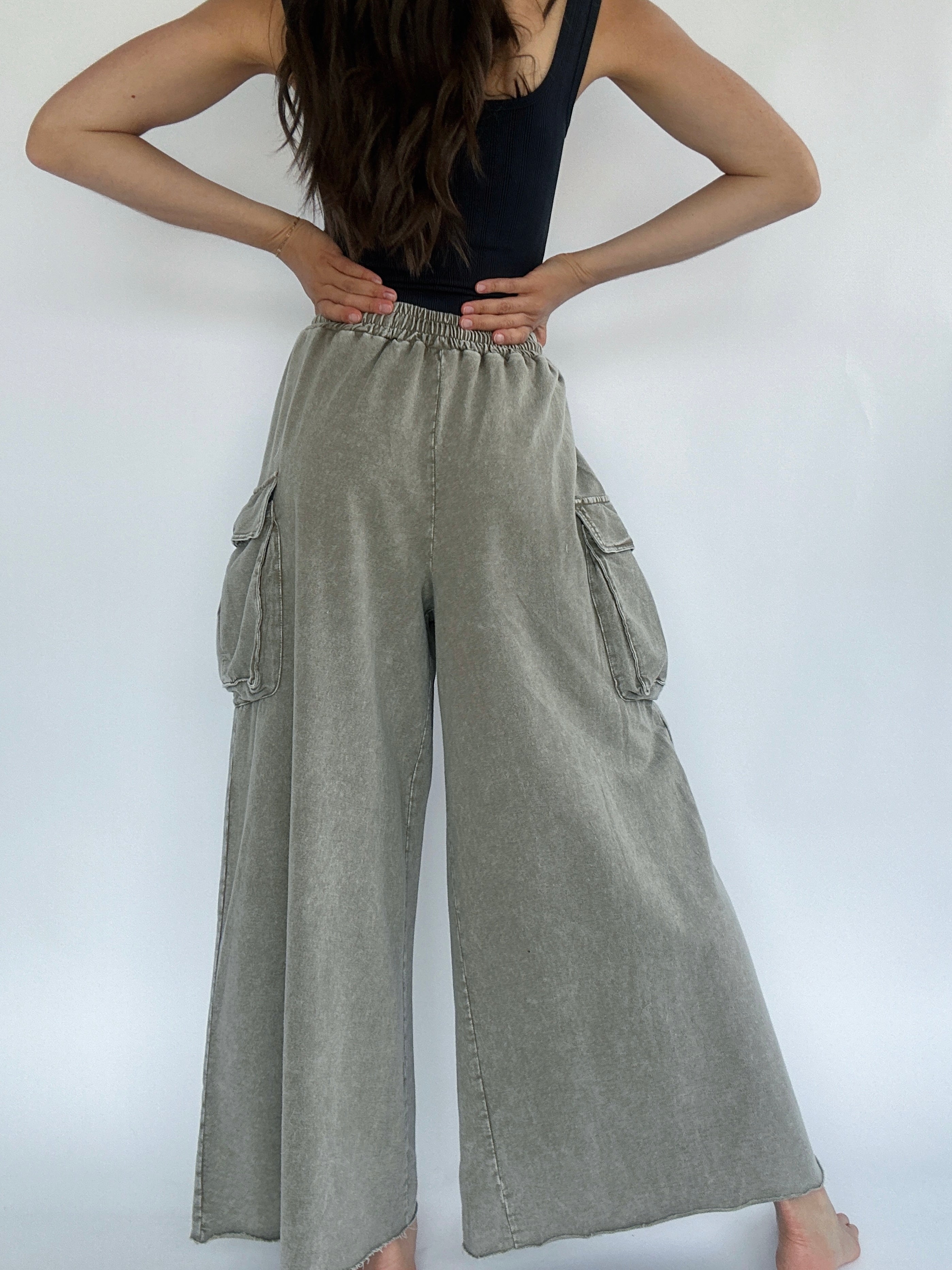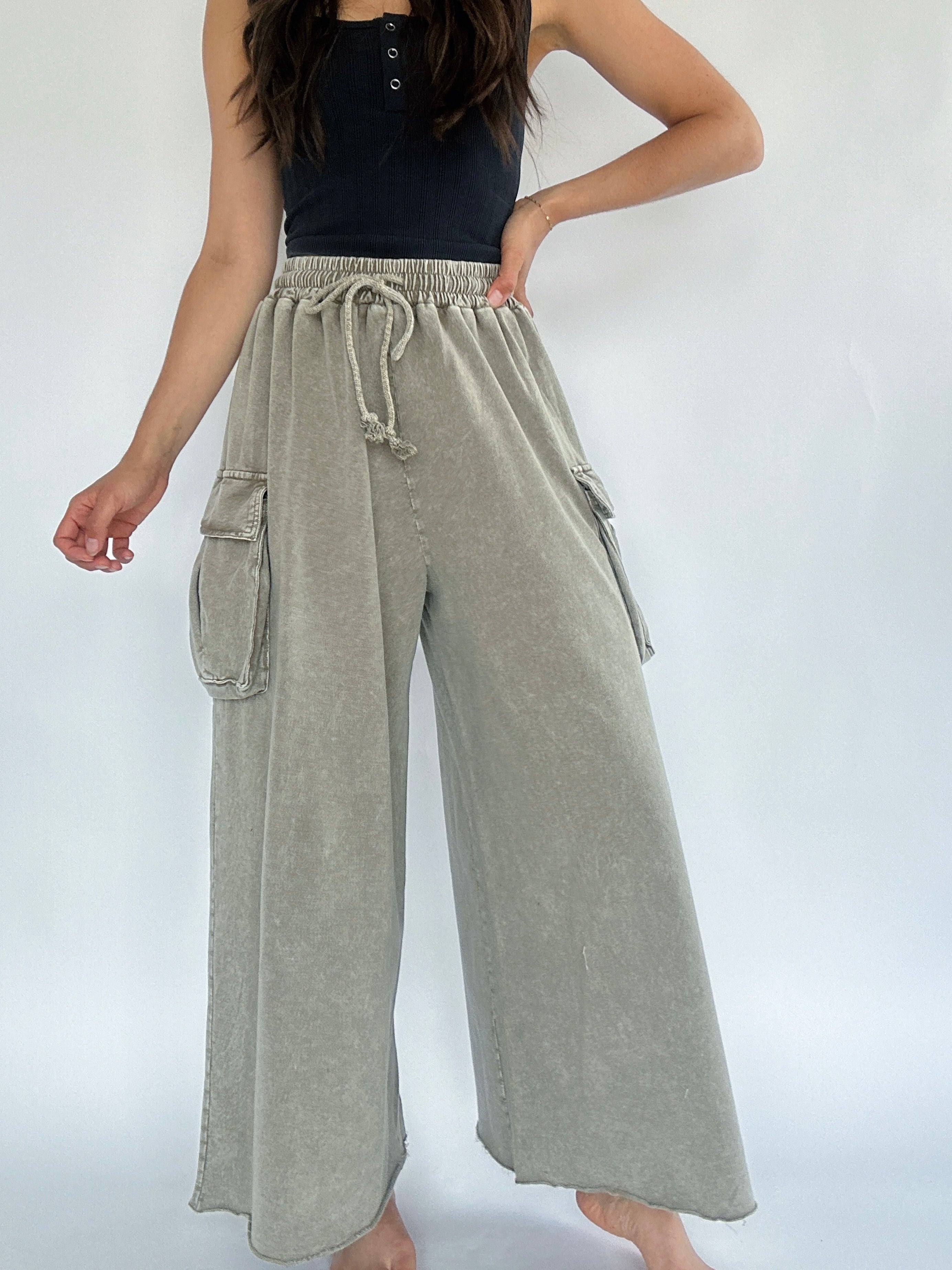 Keep Driving Wide Leg Pants - Olive Grey