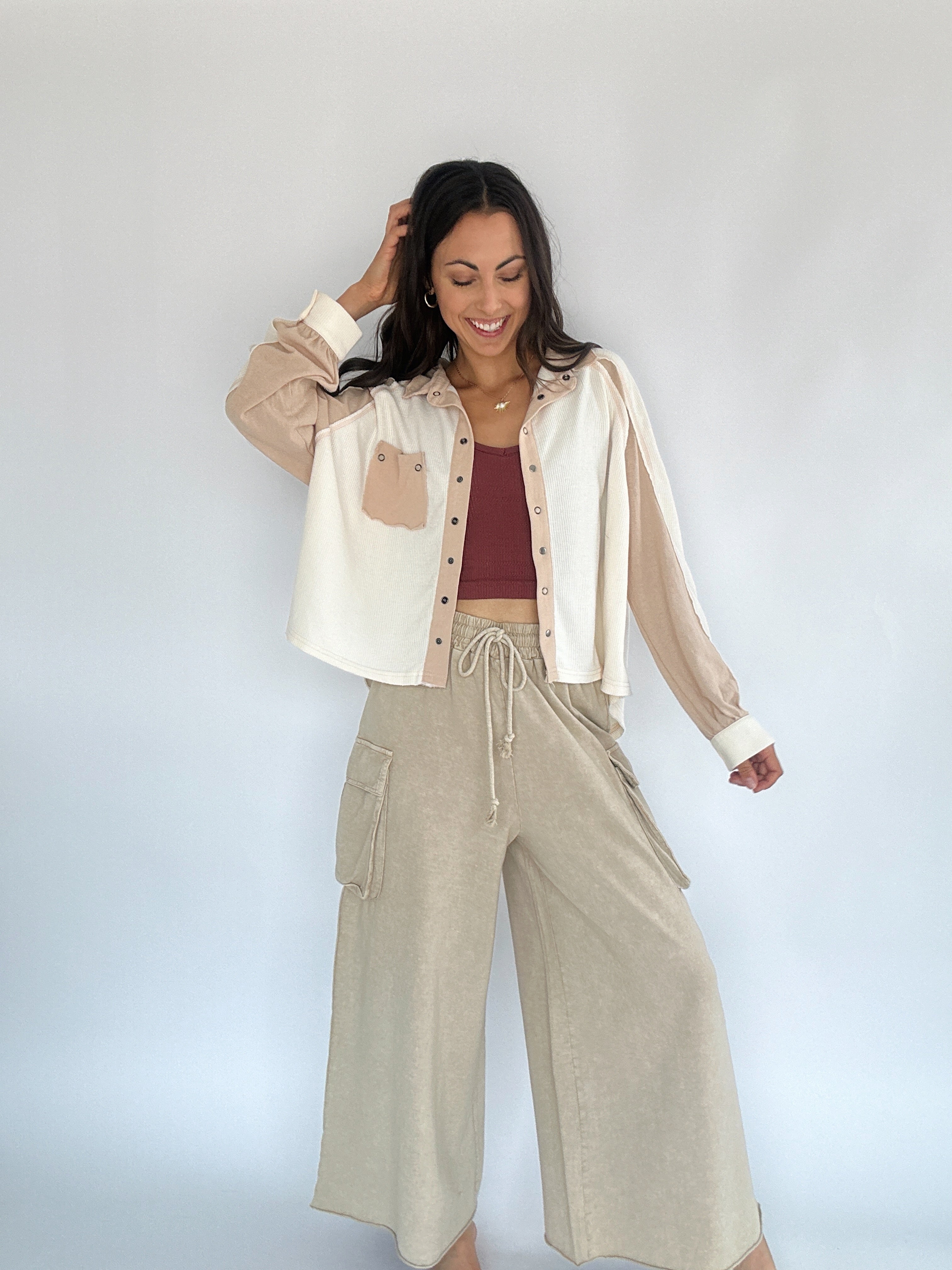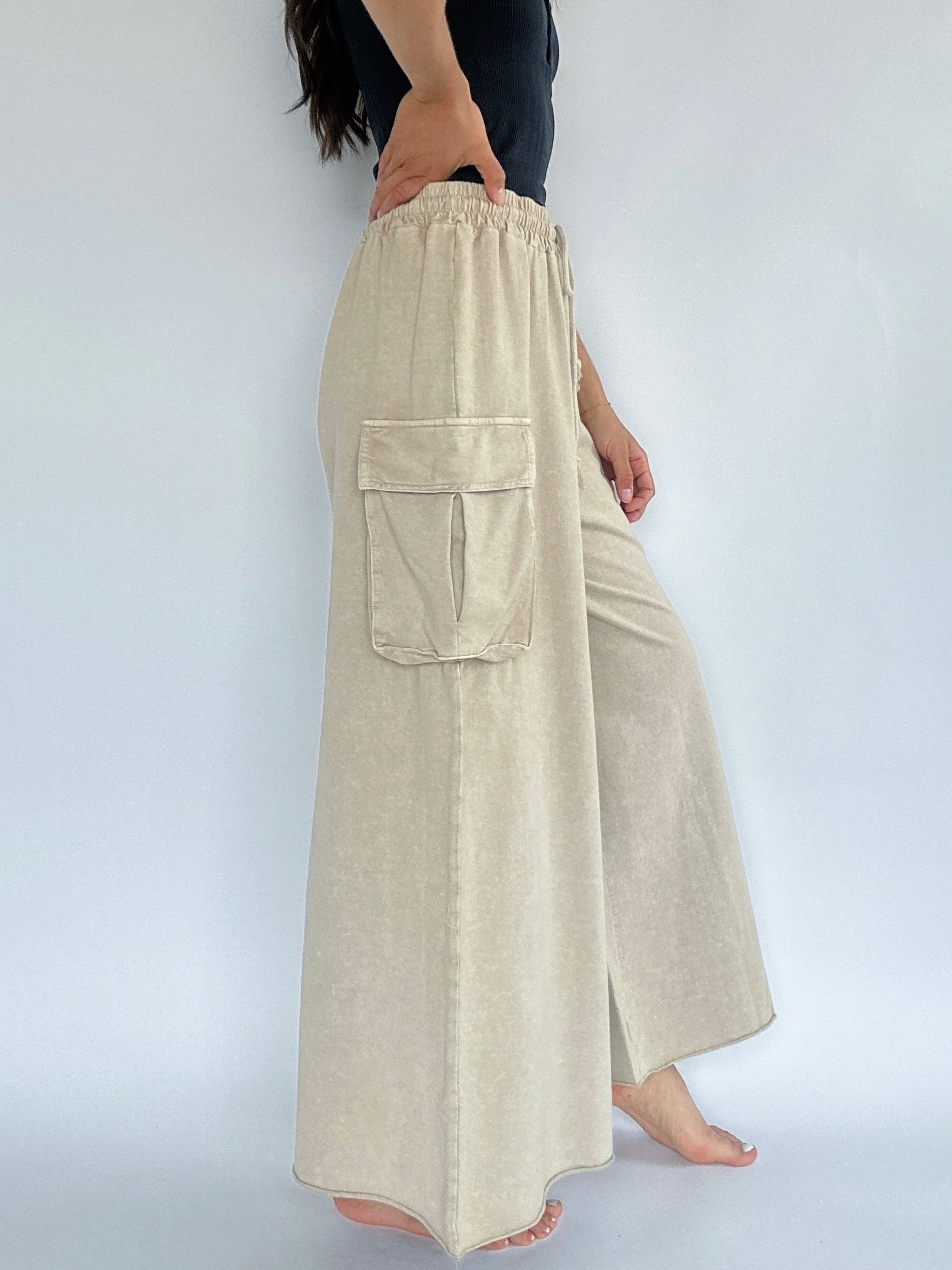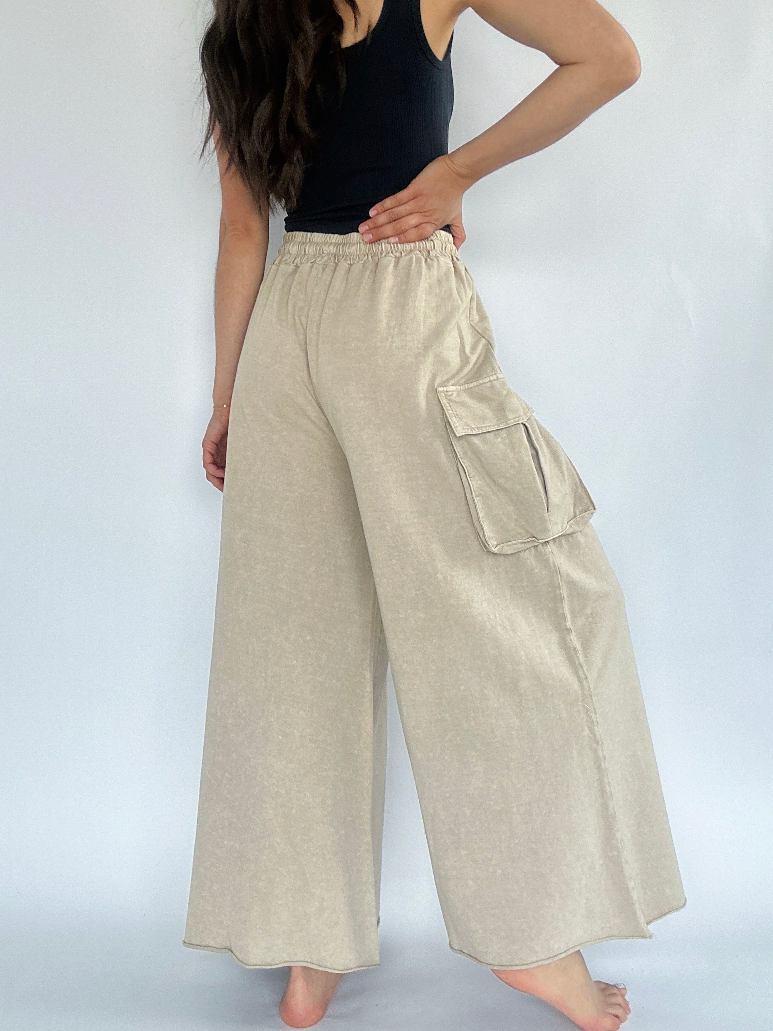 Back Seat Driver Wide Leg Pants - Light Stone