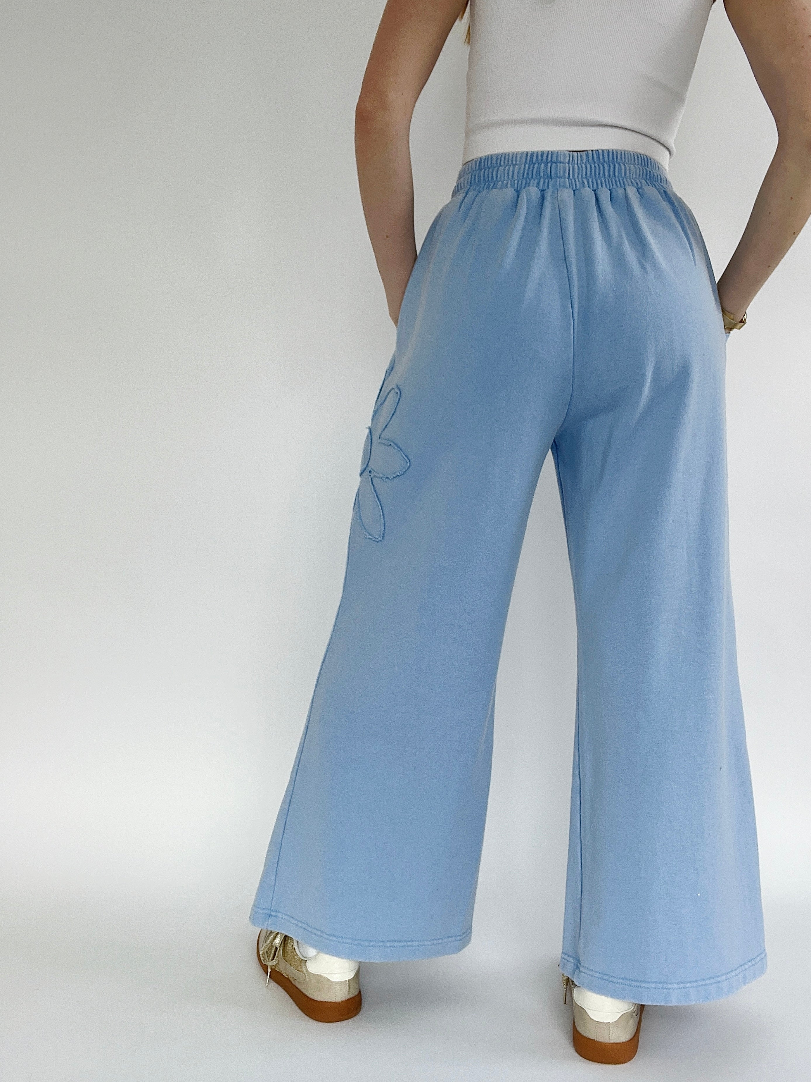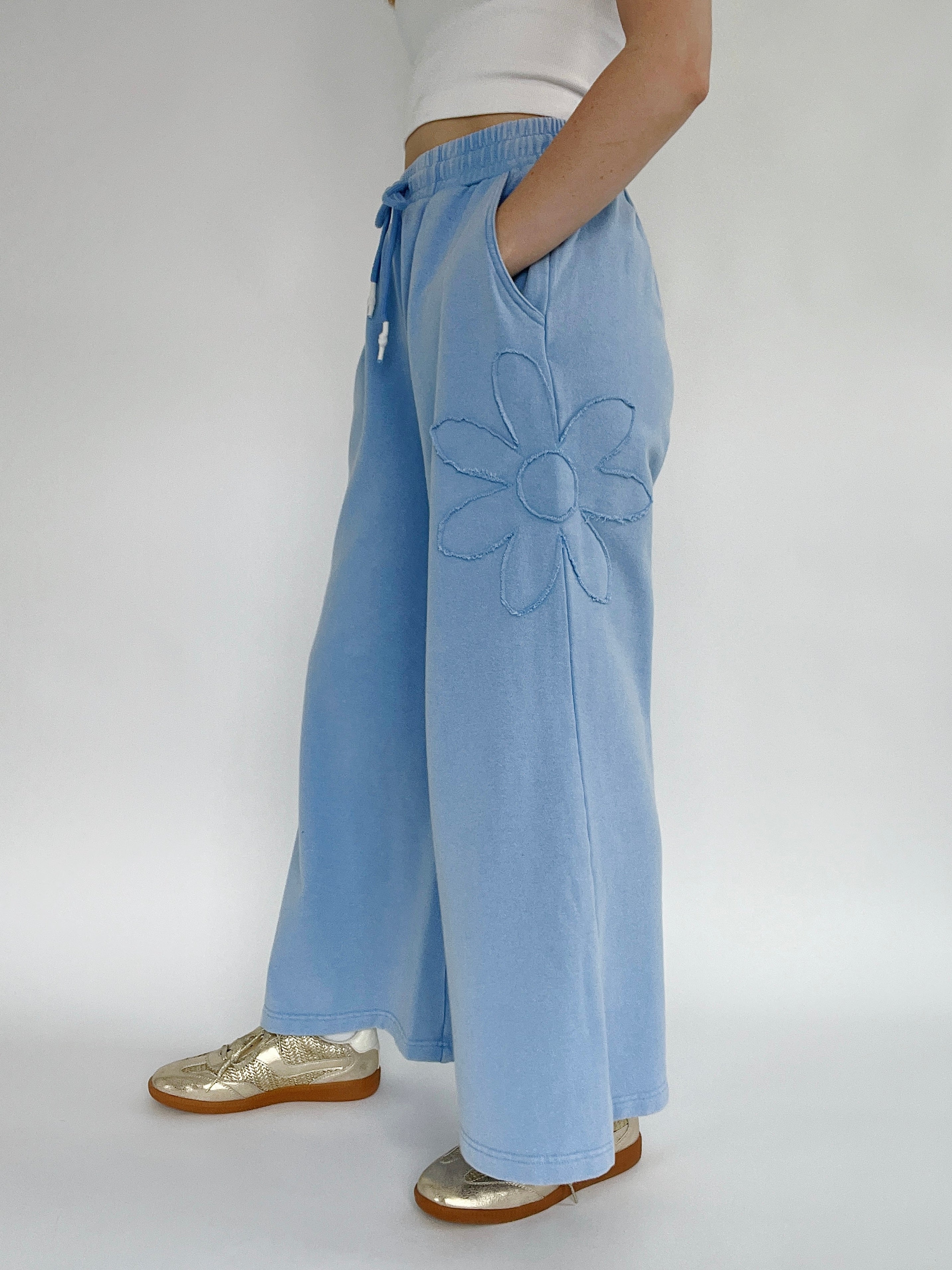 Blossom Flower Patch Wide Leg Pants - Peri Blue