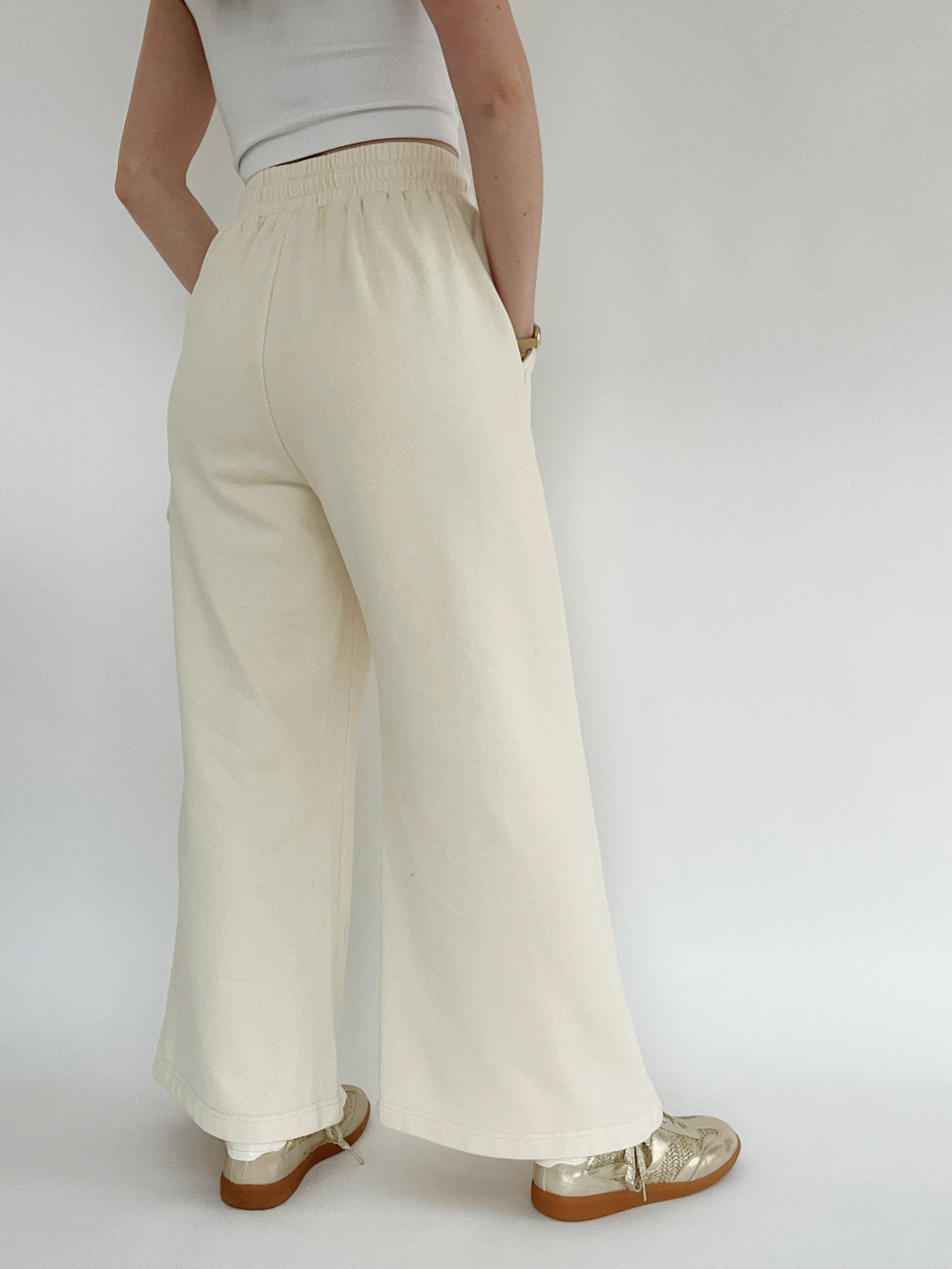 These washed sweatpants have a cute little flower patch on the side that matches the one on the Blossom Flower Patch Pullover, making a fun lounge set! The pants have an elastic waistband with drawstring and side pockets.