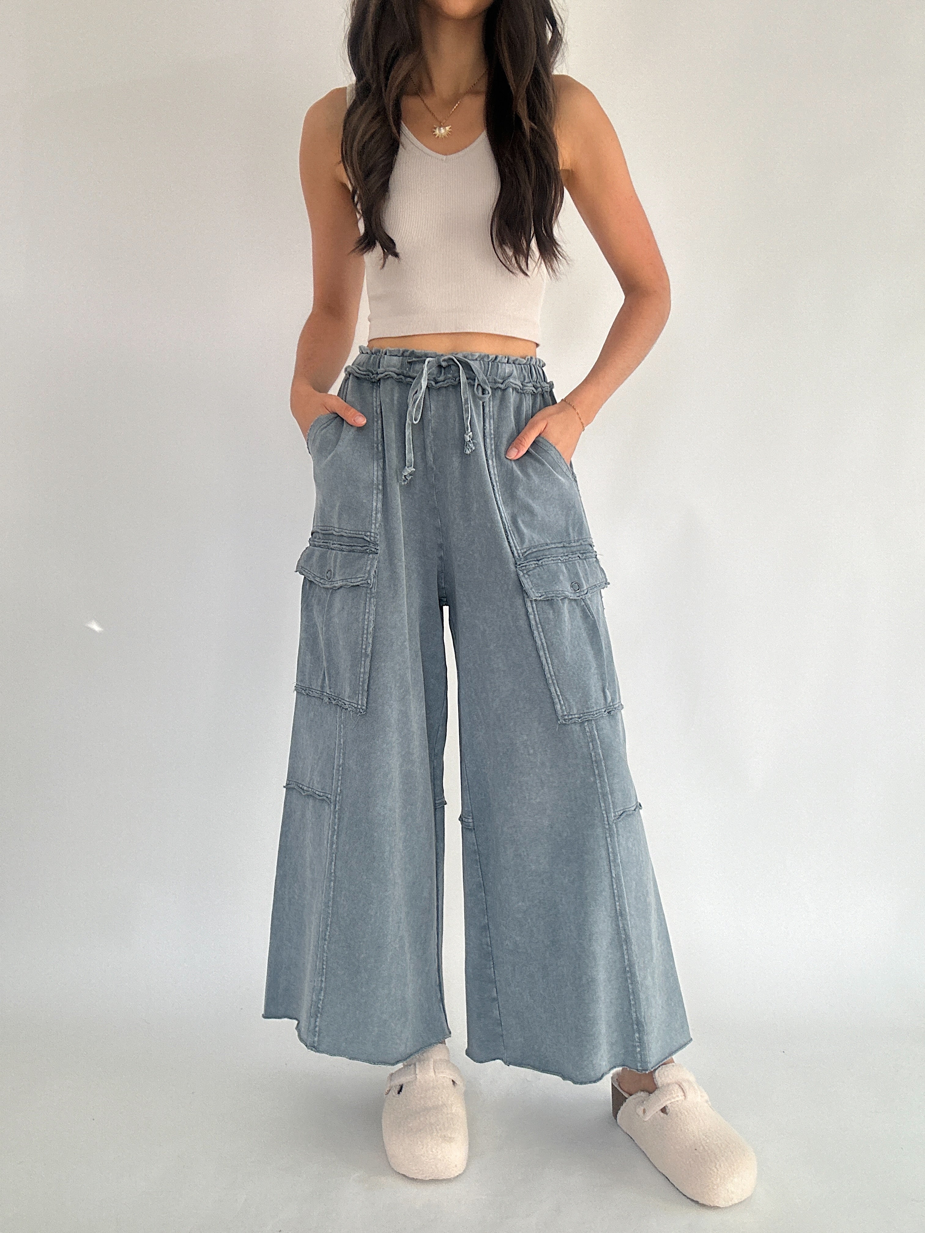 Say hello to your new go-to pants. The Middle Of The Road Wide Leg Pants are made for days when comfort is key—but you still want to look put together. The soft, mineral-washed terry knit feels broken-in from the start, while the wide leg silhouette keeps things breezy and laid-back.