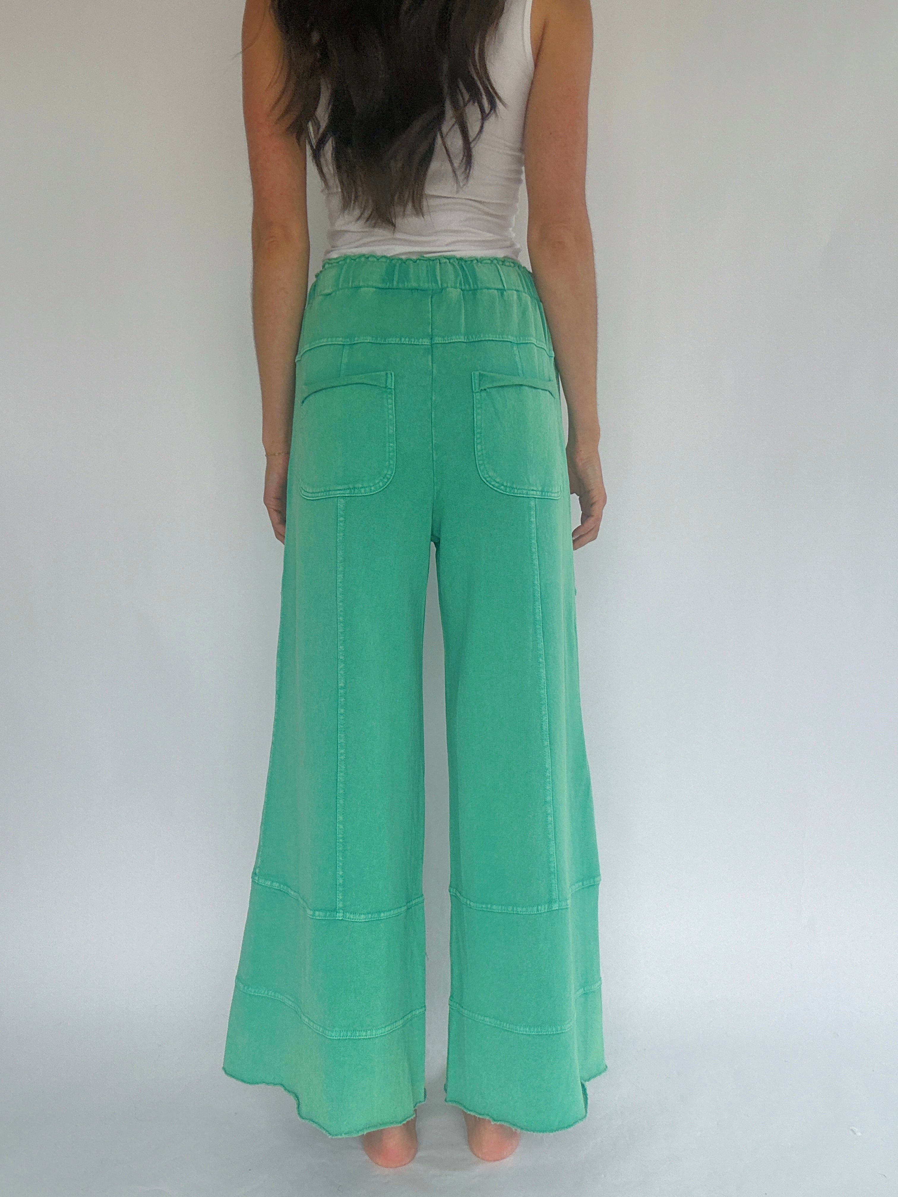 Whether you're catching a flight, running errands, or just hanging out at home, the Traveller Wide Leg Pants are up for anything! The bright evergreen color of this best selling style brings a fun pop of color to your everyday wardrobe!