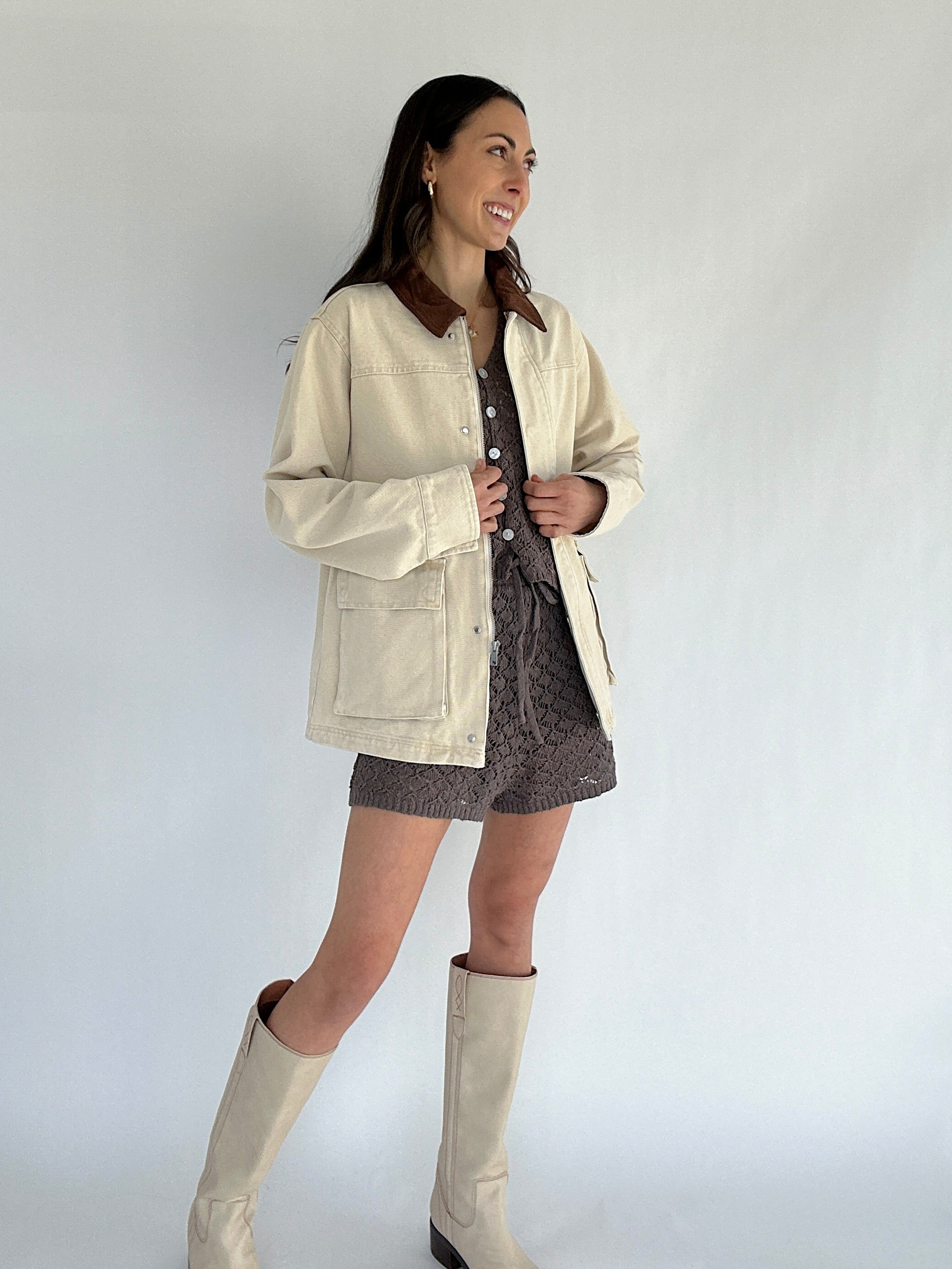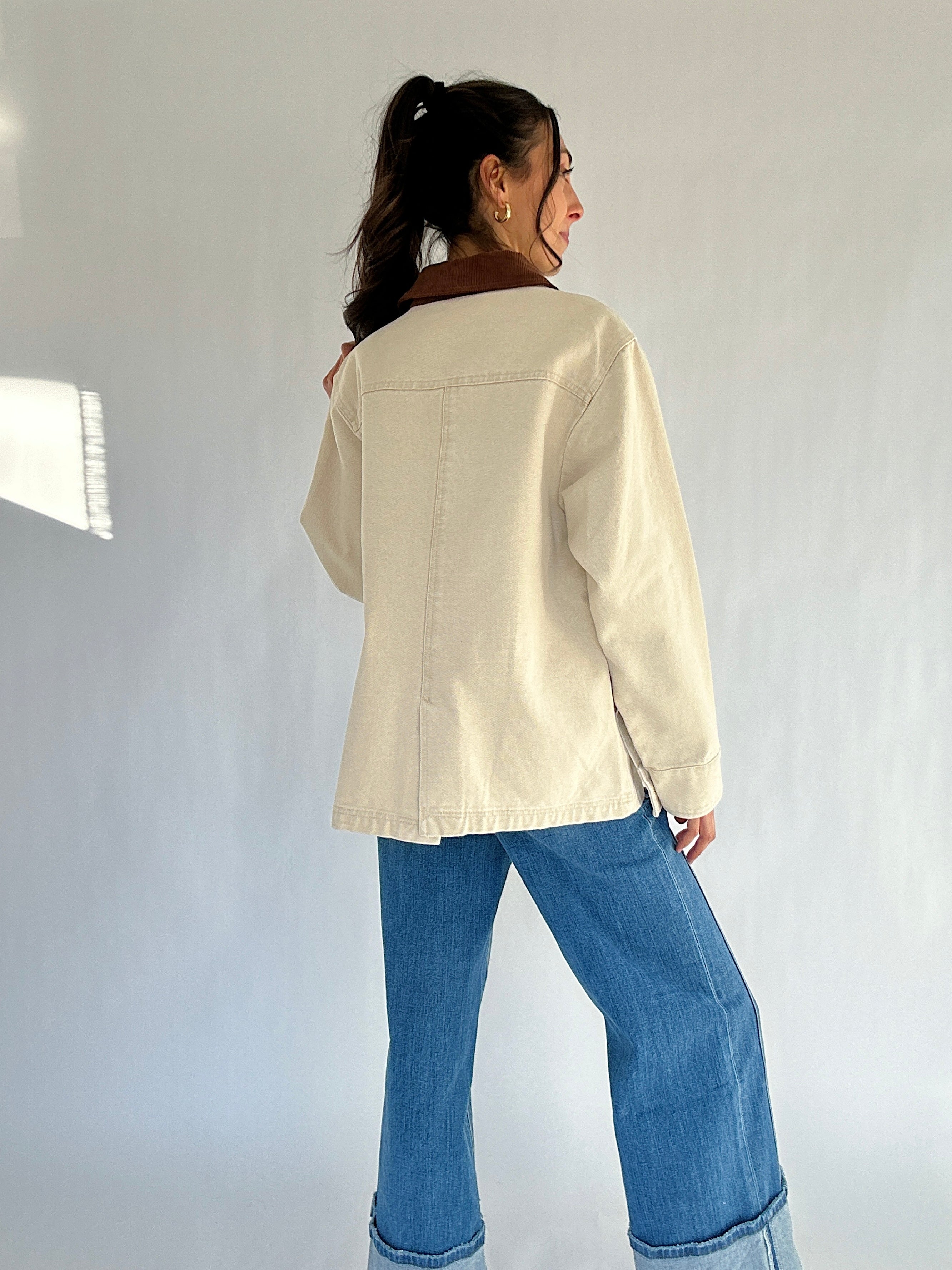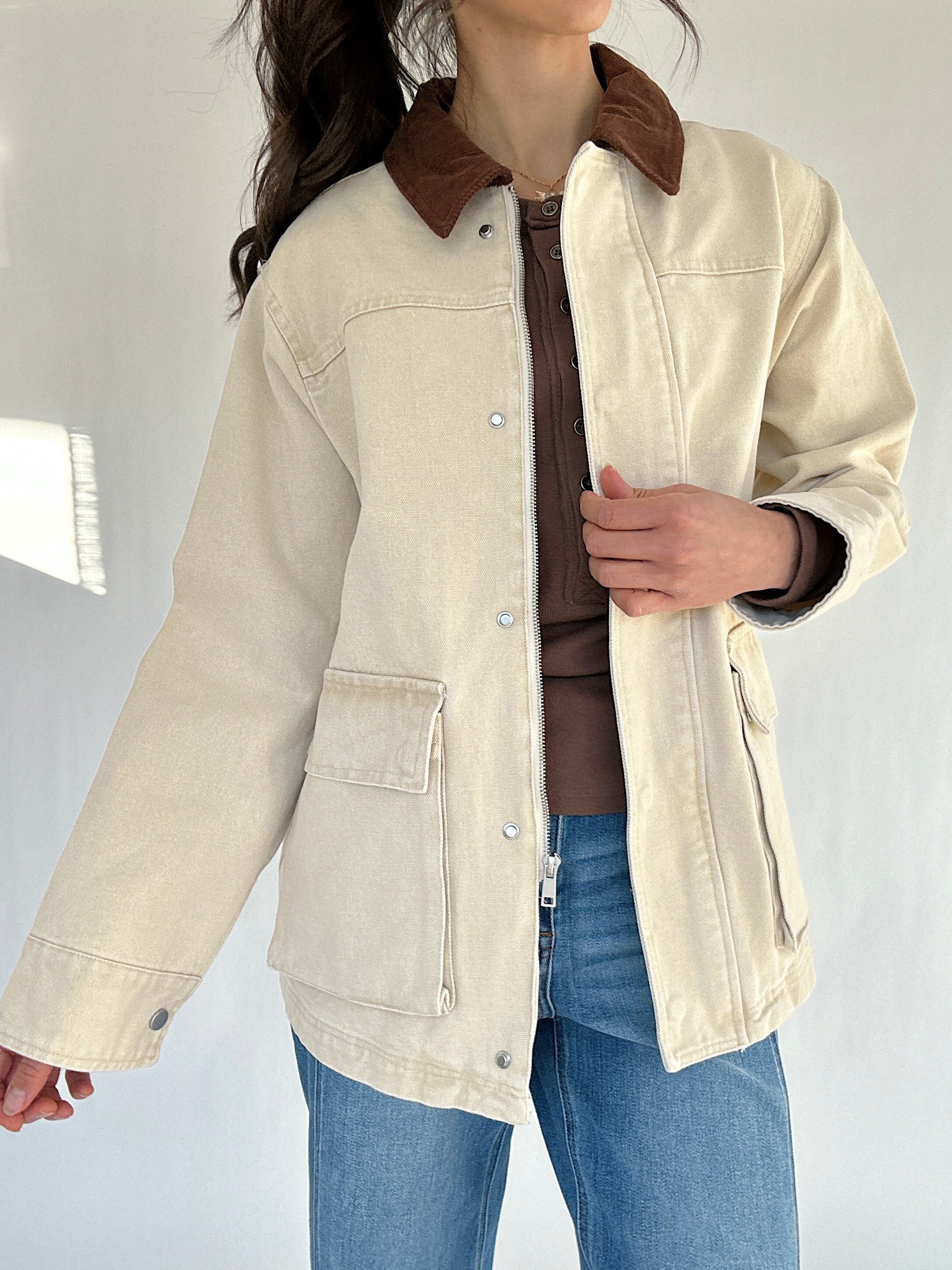 Whether you’re layering up for everyday errands, heading out for a casual dinner, or throwing it on for a cool morning walk, the Aaron Barn Jacket is that easy outer layer you’ll keep by the door. Designed in a vintage-washed cotton with a lived-in feel, it has a relaxed fit that works just as well over sweaters as it does over tees. The corduroy collar adds a classic touch, giving it that effortless, borrowed-from-the-boys vibe everyone loves right now.