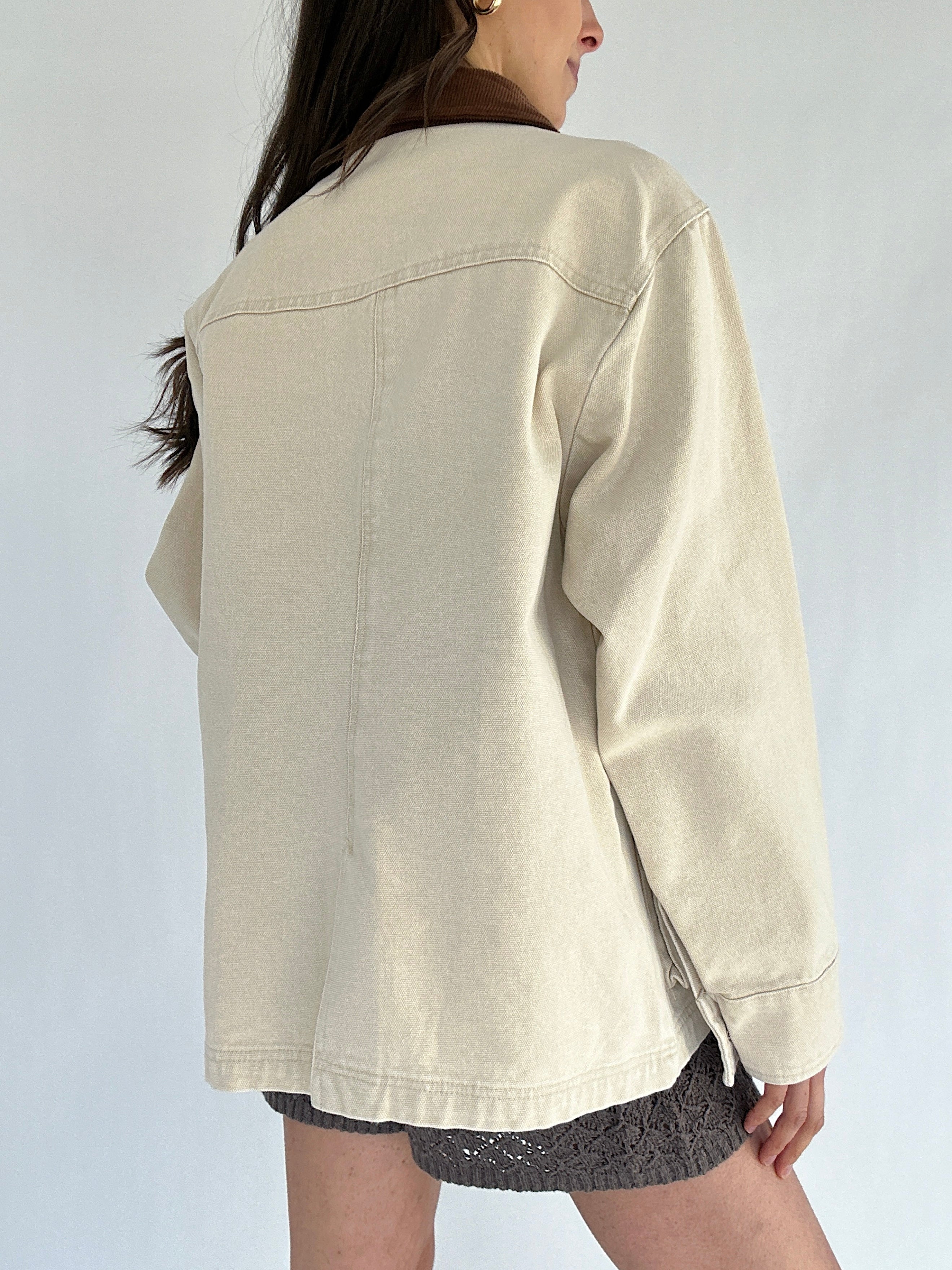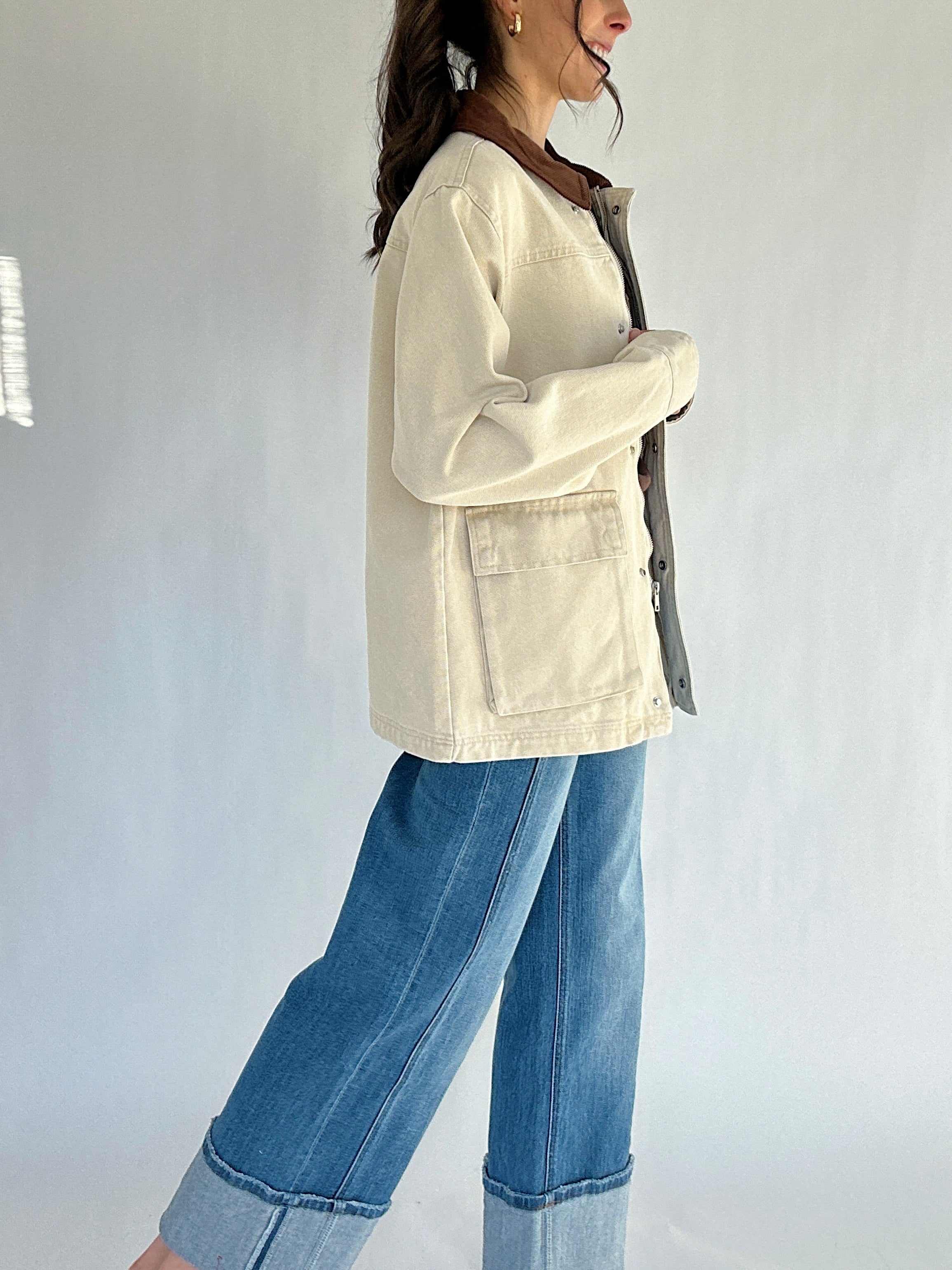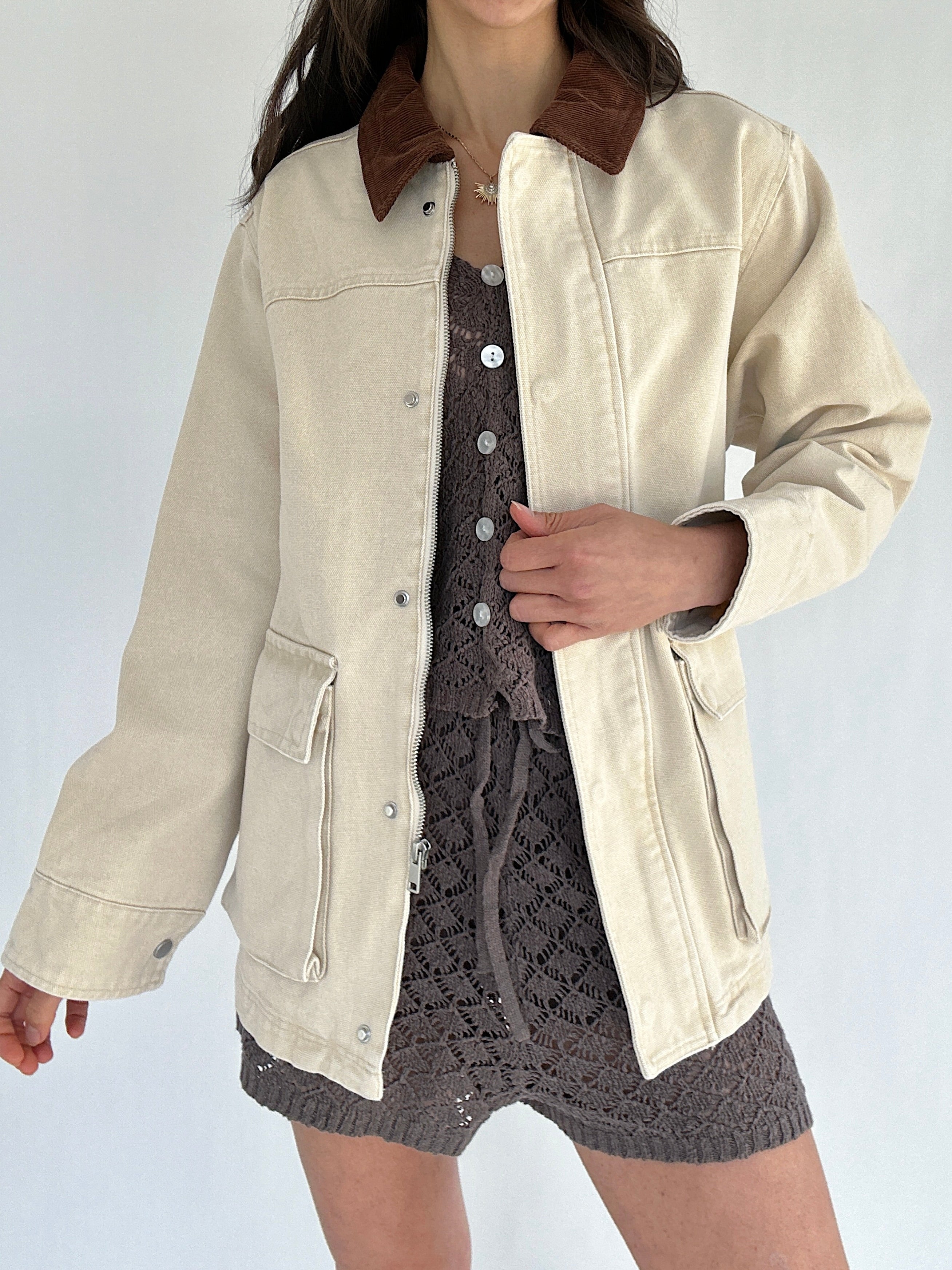 Whether you’re layering up for everyday errands, heading out for a casual dinner, or throwing it on for a cool morning walk, the Aaron Barn Jacket is that easy outer layer you’ll keep by the door. Designed in a vintage-washed cotton with a lived-in feel, it has a relaxed fit that works just as well over sweaters as it does over tees. The corduroy collar adds a classic touch, giving it that effortless, borrowed-from-the-boys vibe everyone loves right now.