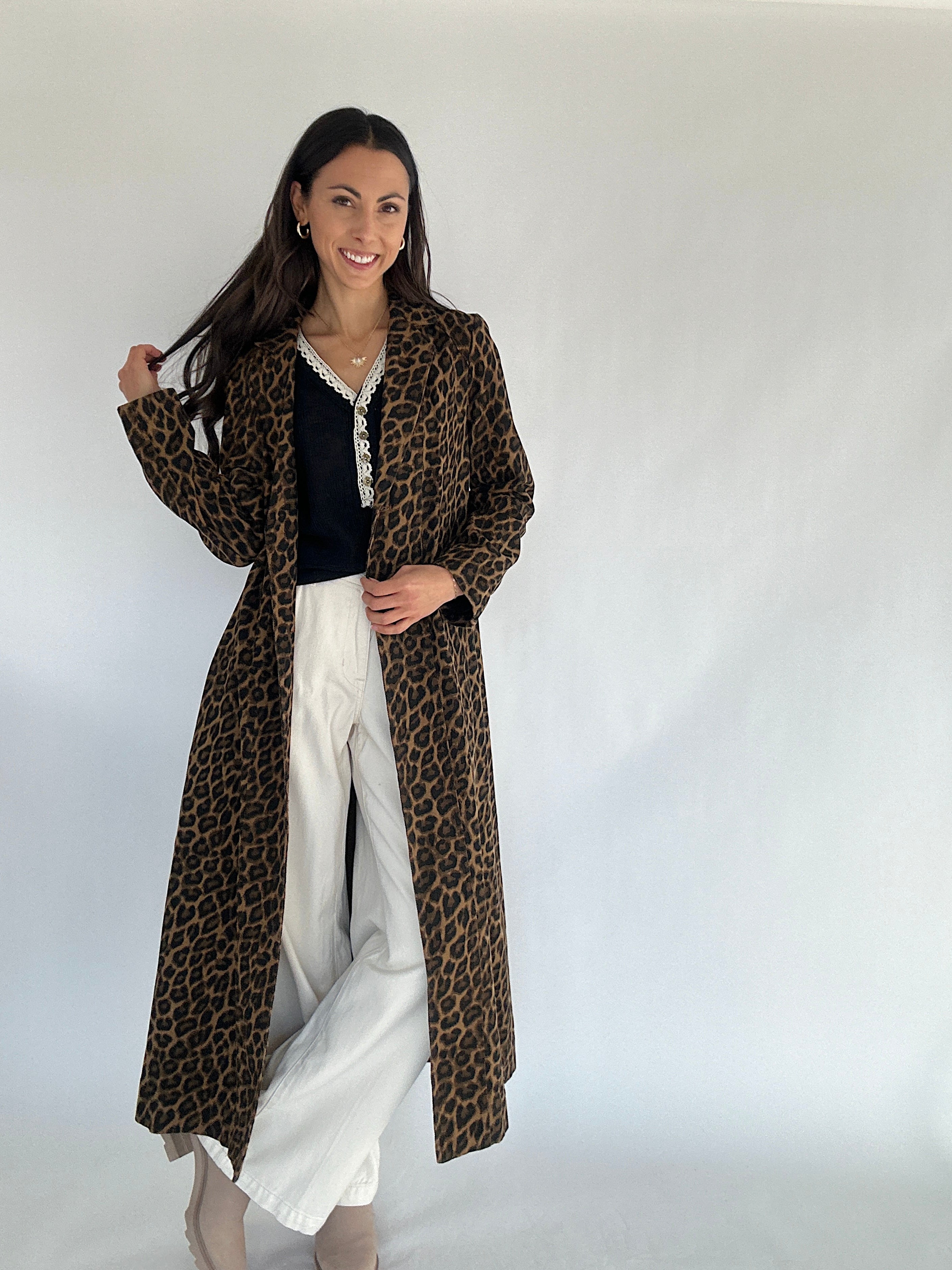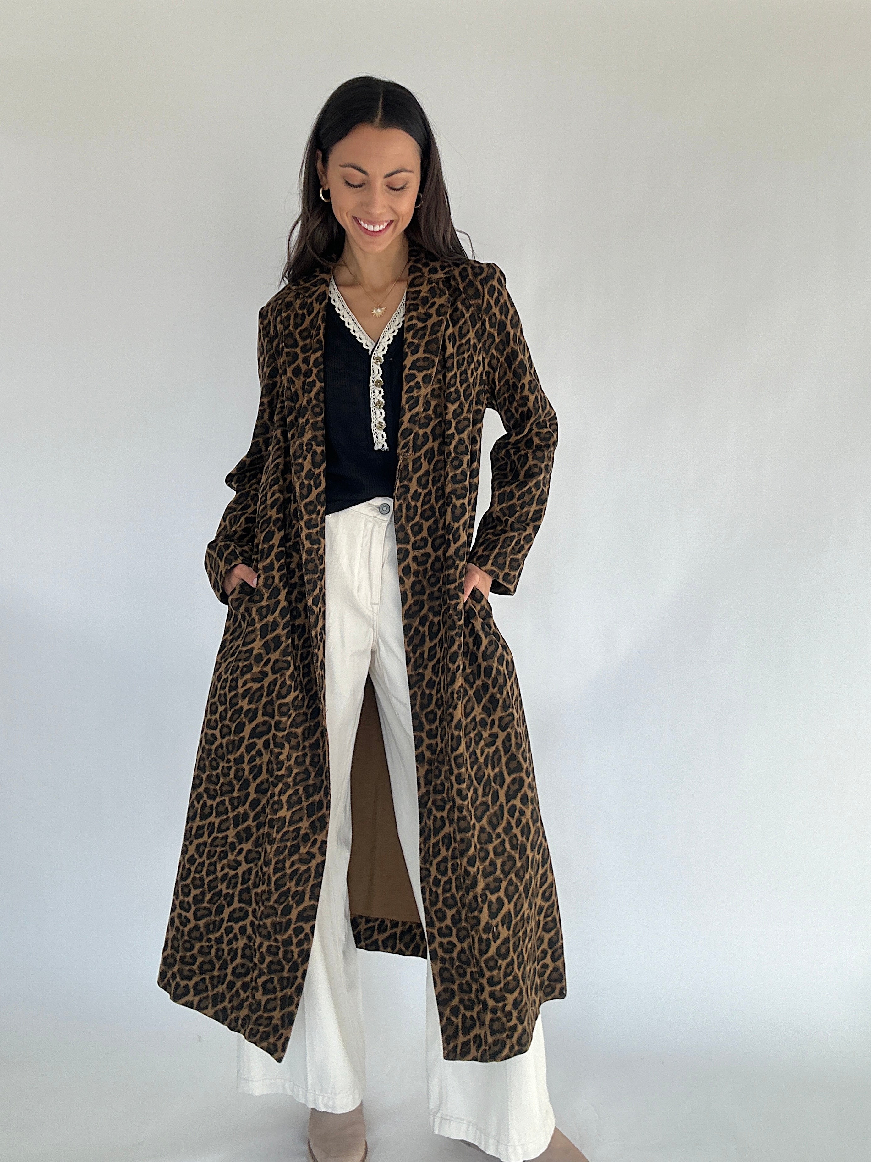 The Art of Loving French Leopard Jacket brings a cool, vintage-inspired feel to your everyday looks. Made in a timeless washed leopard print, this longline jacket features a structured fit with a collared neckline, button closure, and side pockets. It’s one of those statement layers that goes with everything—neutral enough to wear on repeat, but bold enough to make any outfit feel special!