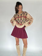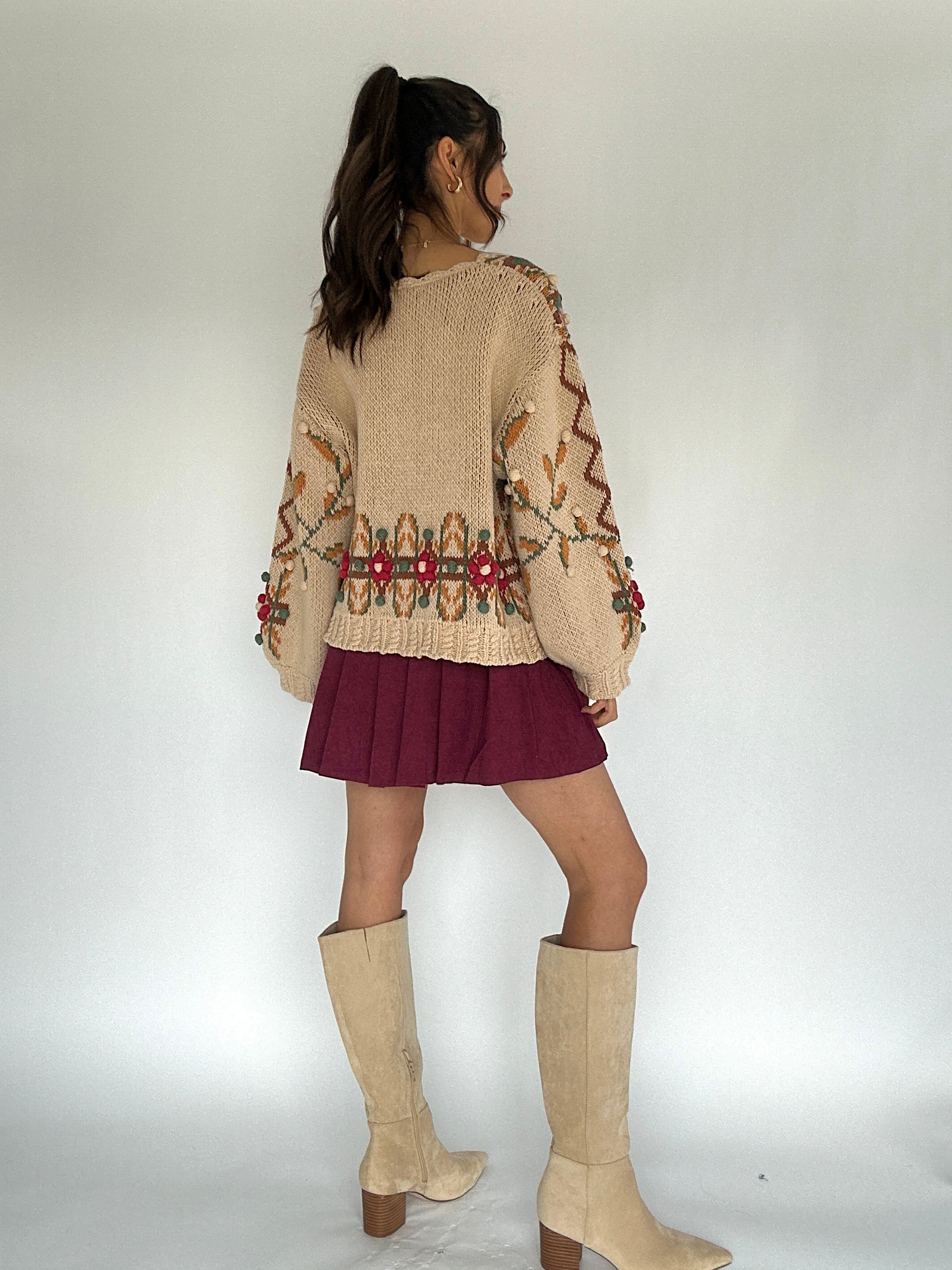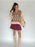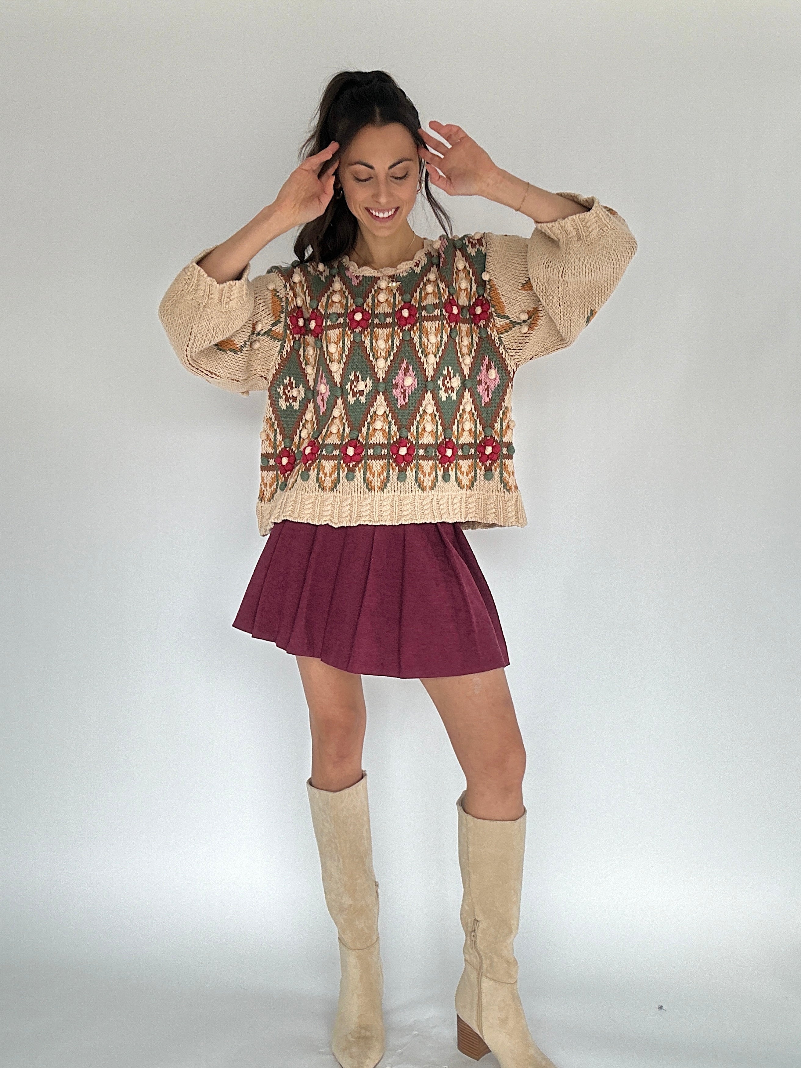 Perfect for cozy autumn afternoons or layering over your favorite skirt for a vintage-inspired weekend look, the Cross My Mind Knit Sweater adds sweet texture and charm to any outfit. The scalloped edge scoop neck and balloon sleeves give it a relaxed, effortless silhouette, while the 3D pointed pattern detailing brings unique detail and character to this gorgeous knit.