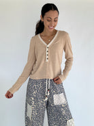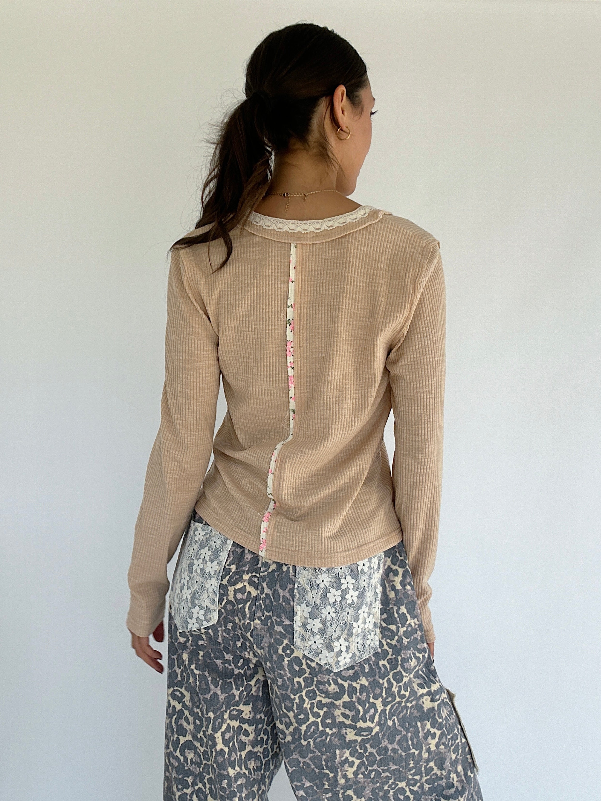 Perfect for layering on crisp mornings or pairing with your favorite jeans for a casual coffee run, the Final Chapter Long Sleeve Top brings timeless comfort with a subtle vintage touch. The neutral beige is complemented by a lace trimmed henley-style neckline featuring delicate flower metal buttons, giving this ribbed top a refined, everyday charm. Its regular fit and soft rib texture make it a versatile staple you’ll reach for again and again!