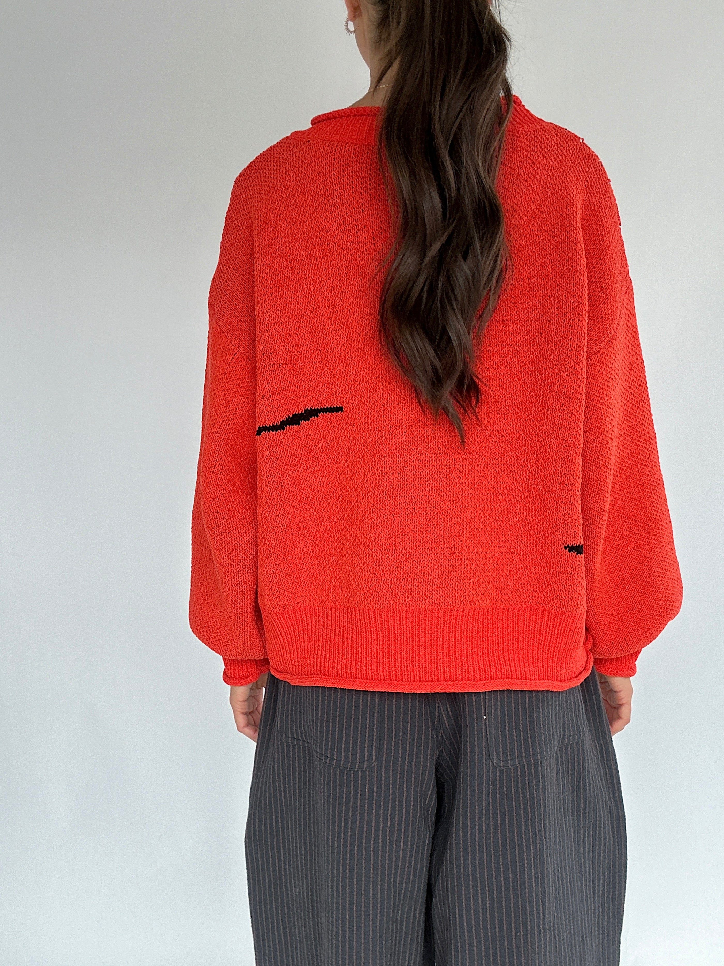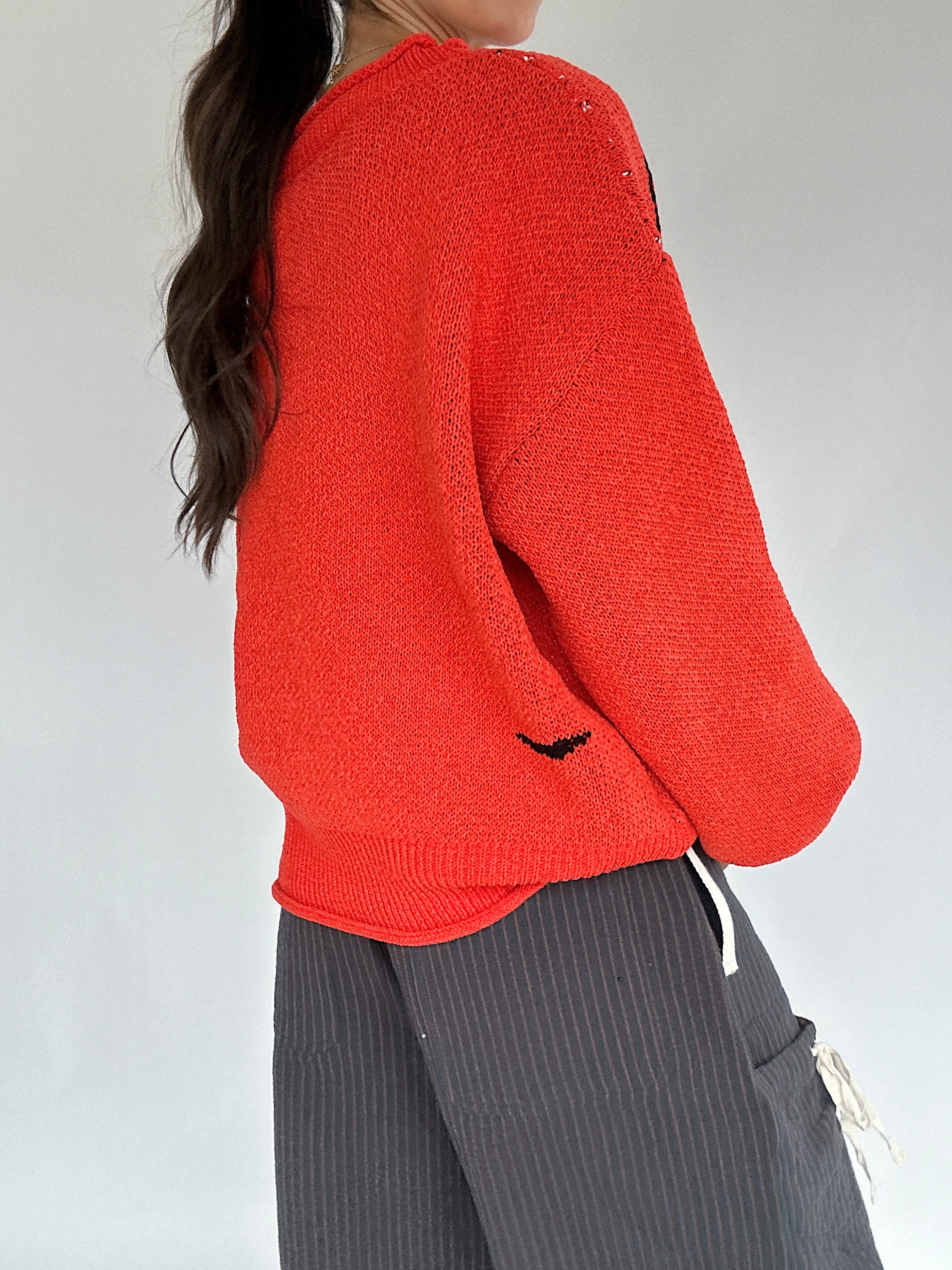 ✶ Bright orange knit with ghost + bat graphics