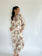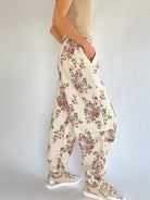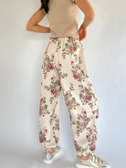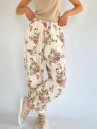 Soft, easy, and perfect for lounging, errands, or anything in between. The Maeve Floral Joggers have a relaxed fit with an elastic waistband, side pockets, and cinched ankles. The floral print adds a subtle detail that works with the matching top or your favorite basics.