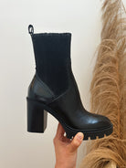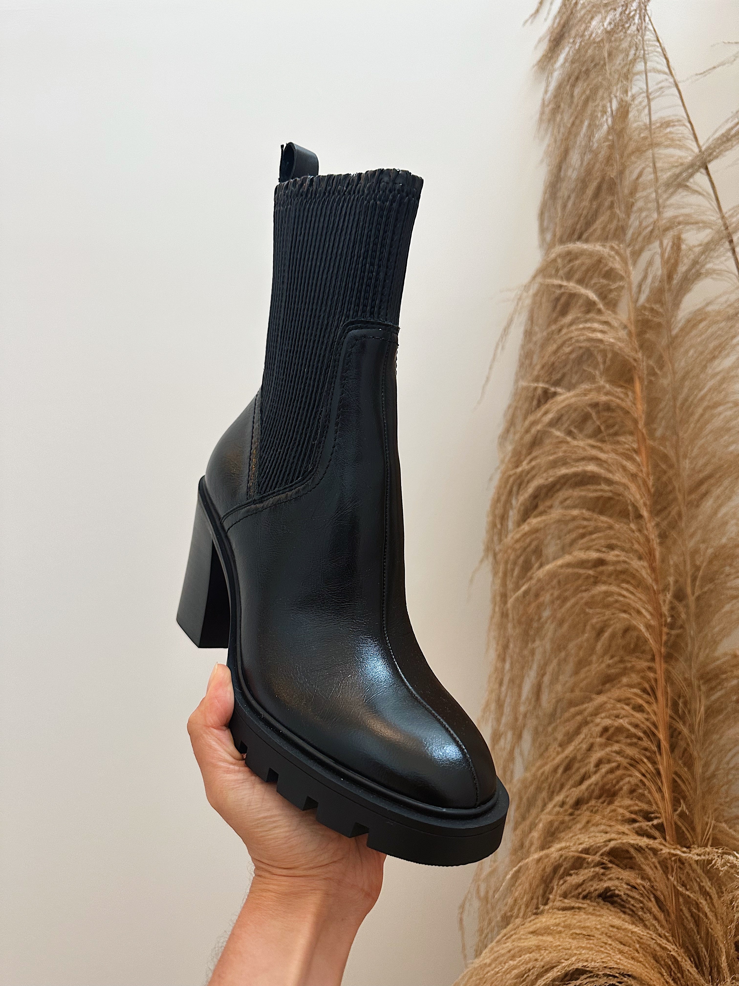 Ready for anything. MARNI is your go-to waterproof boot because who says you have to sacrifice style on a rainy day? A classic heeled boot meets an unexpected lug sole. Black Crinkle Patent.