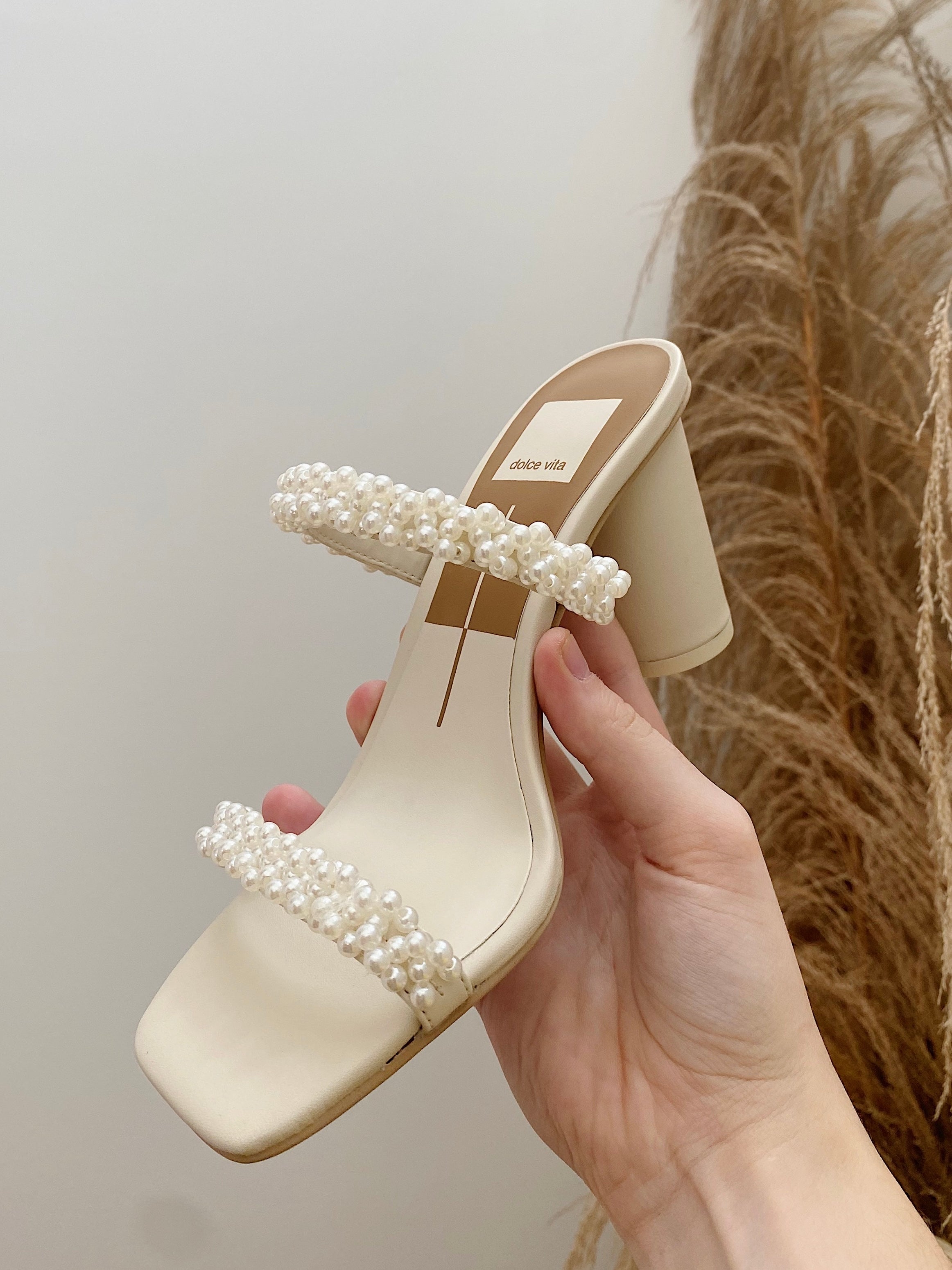 Our new favorite femme look. Studded with pearl bead accents, NOEL by Dolce Vita combines delicate details with a sculptural, statement-making heel...And the effect is 100% chic, head-turning style.