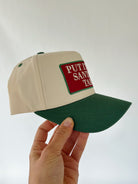 The Put It On Santa’s Tab Trucker Hat is the perfect playful touch for your holiday wardrobe. With its ivory canvas top, green bill, and festive red-and-green patch that reads “Put It On Santa’s Tab,” this hat brings a fun dose of Christmas spirit to any casual look. Finished with a classic snapback closure, it’s a go-to for festive errands, travel days, or holiday get-togethers when you want a little cheer on the go.