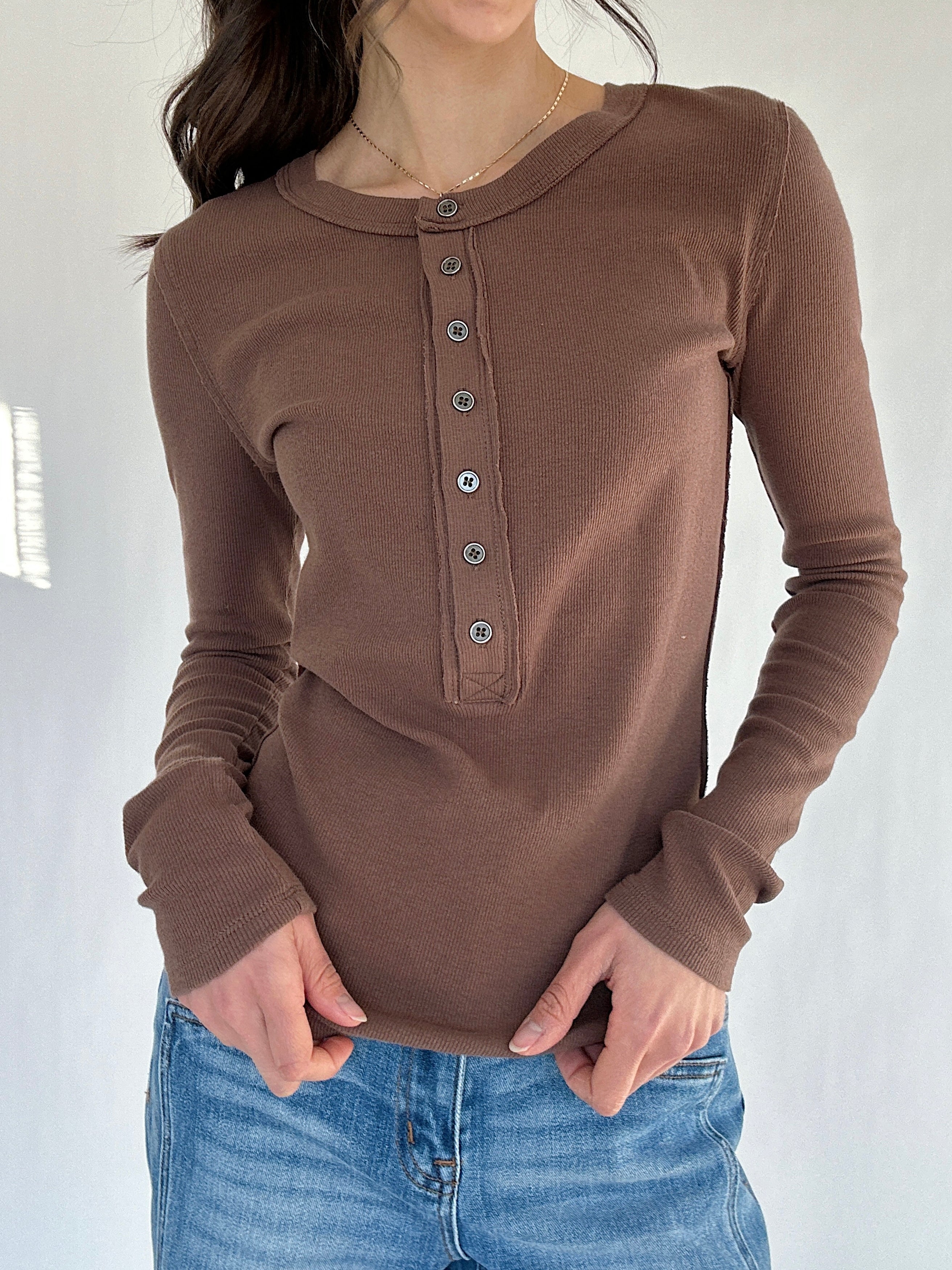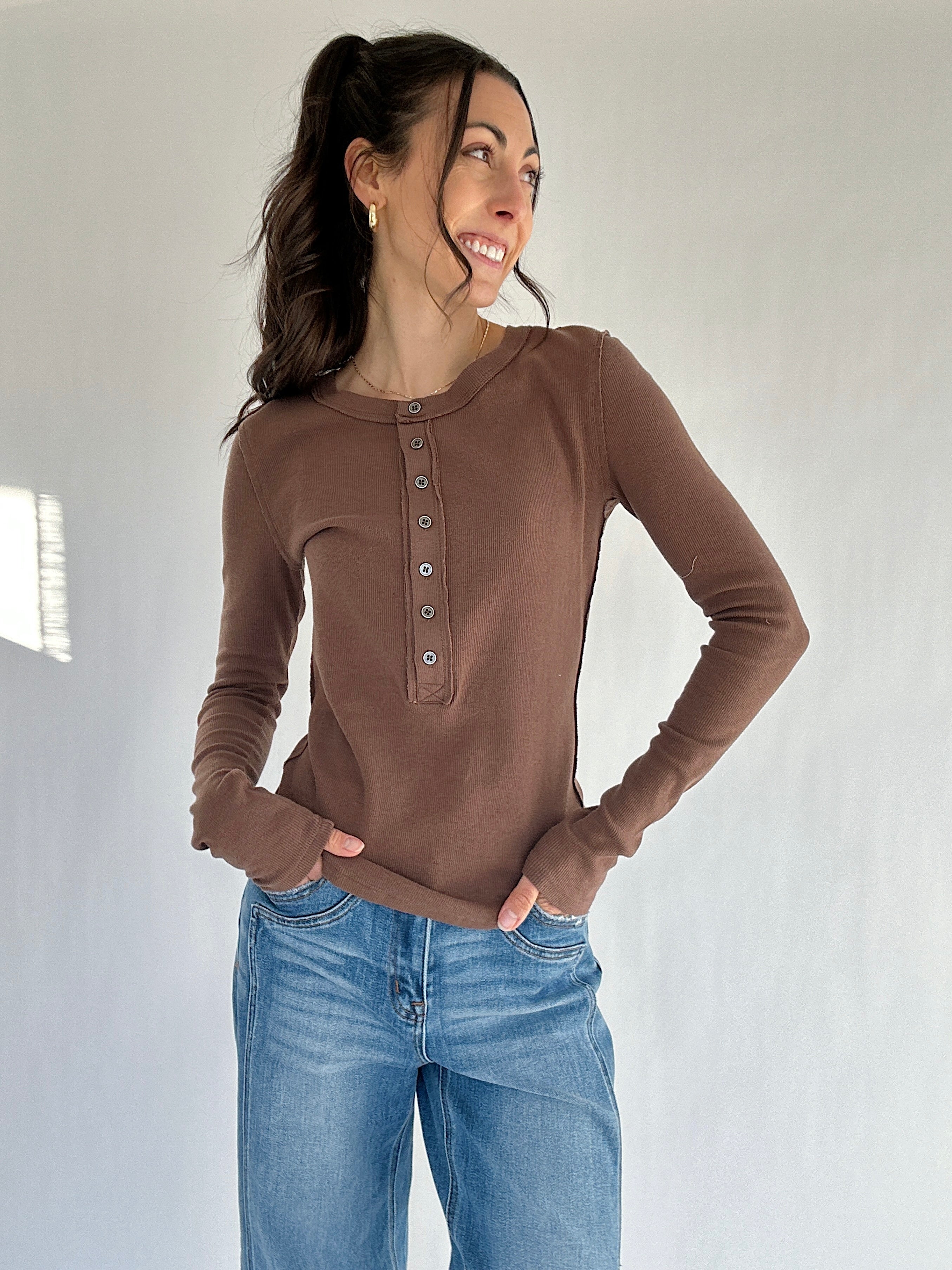 ✶ Classic button-up henley neckline